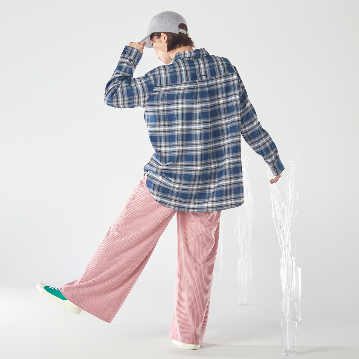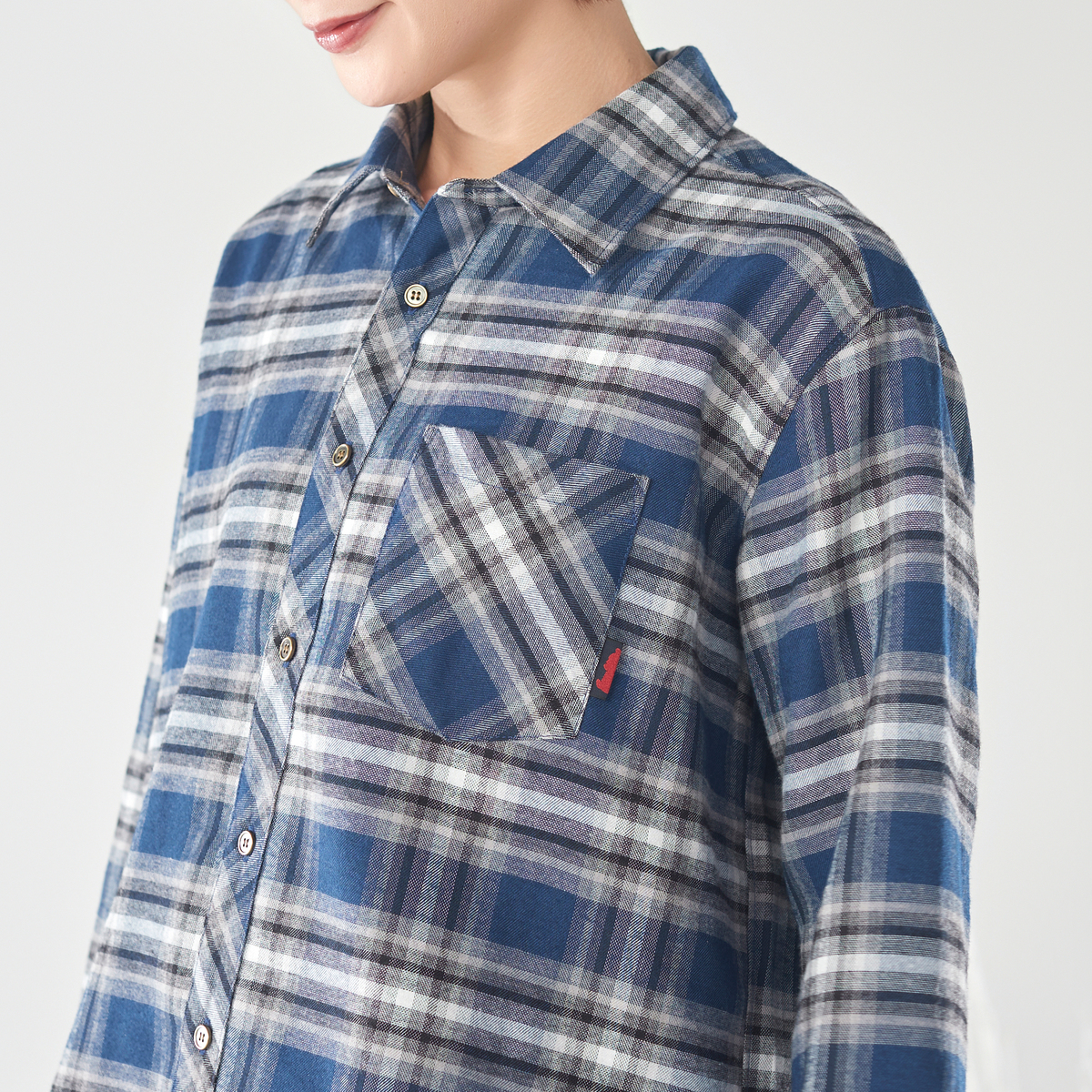 微起毛をかけたタータンチェックのネルシャツ。メンズライクな左前仕立てで、