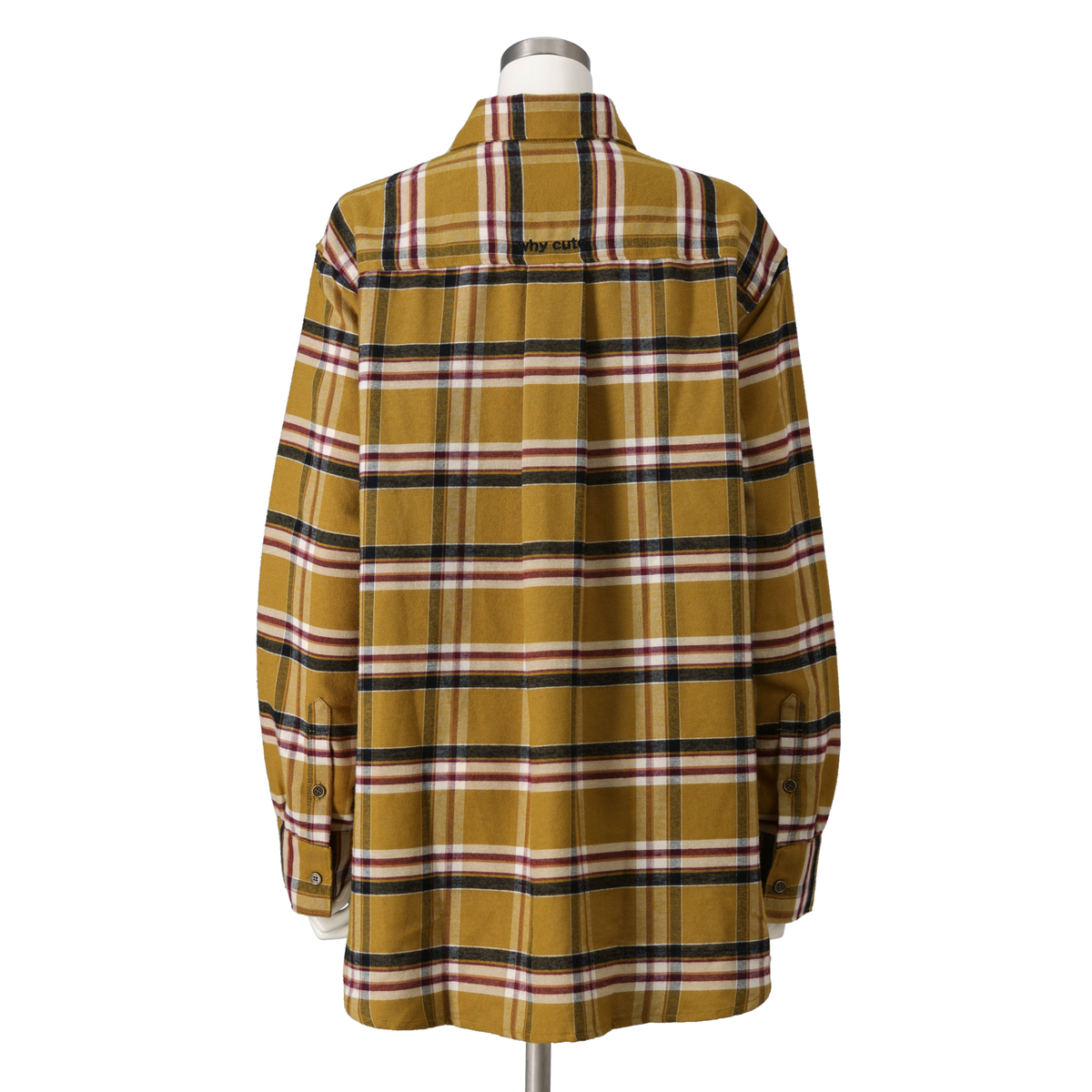 胸ポケットにはブランドアイコン"ホット君"のピスネーム付き。後ろヨーク部分には「why cute」ロゴ刺繍入りで、さりげないポイントになっています