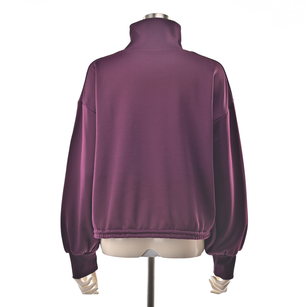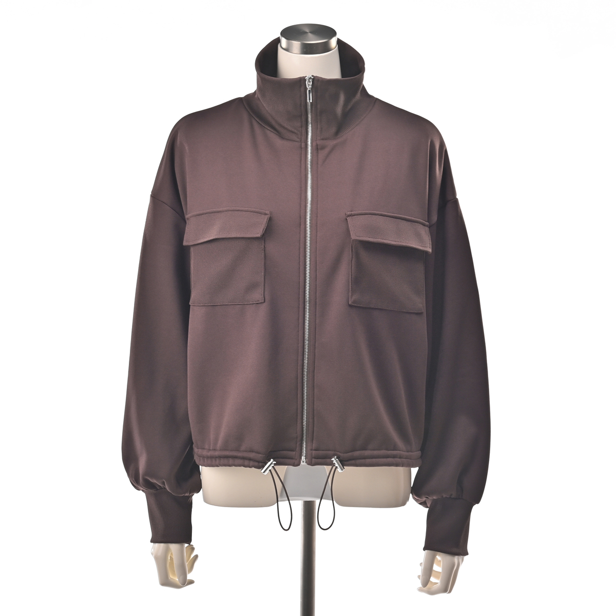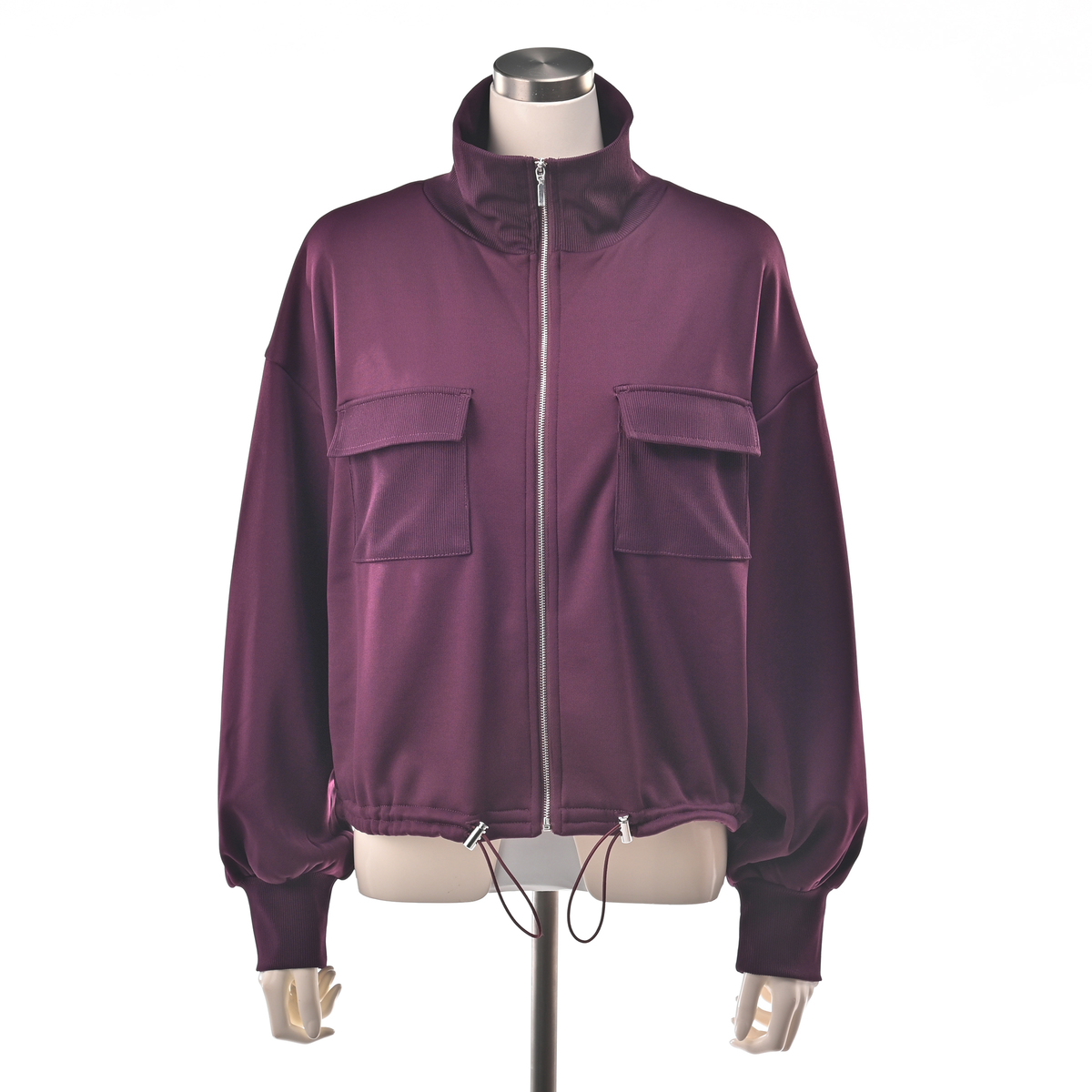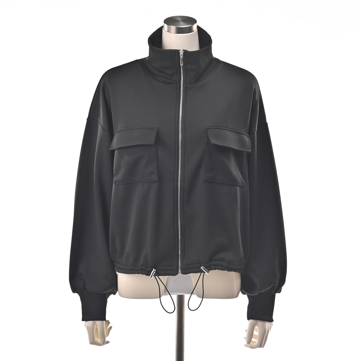 身生地と同色のリブ素材を使った大きめのフラップポケットがアクセントになっています。袖はゆったりとしたボリュームパフスリーブ。袖口のリブ切替えでフィット感があり、風の侵入を防ぎます