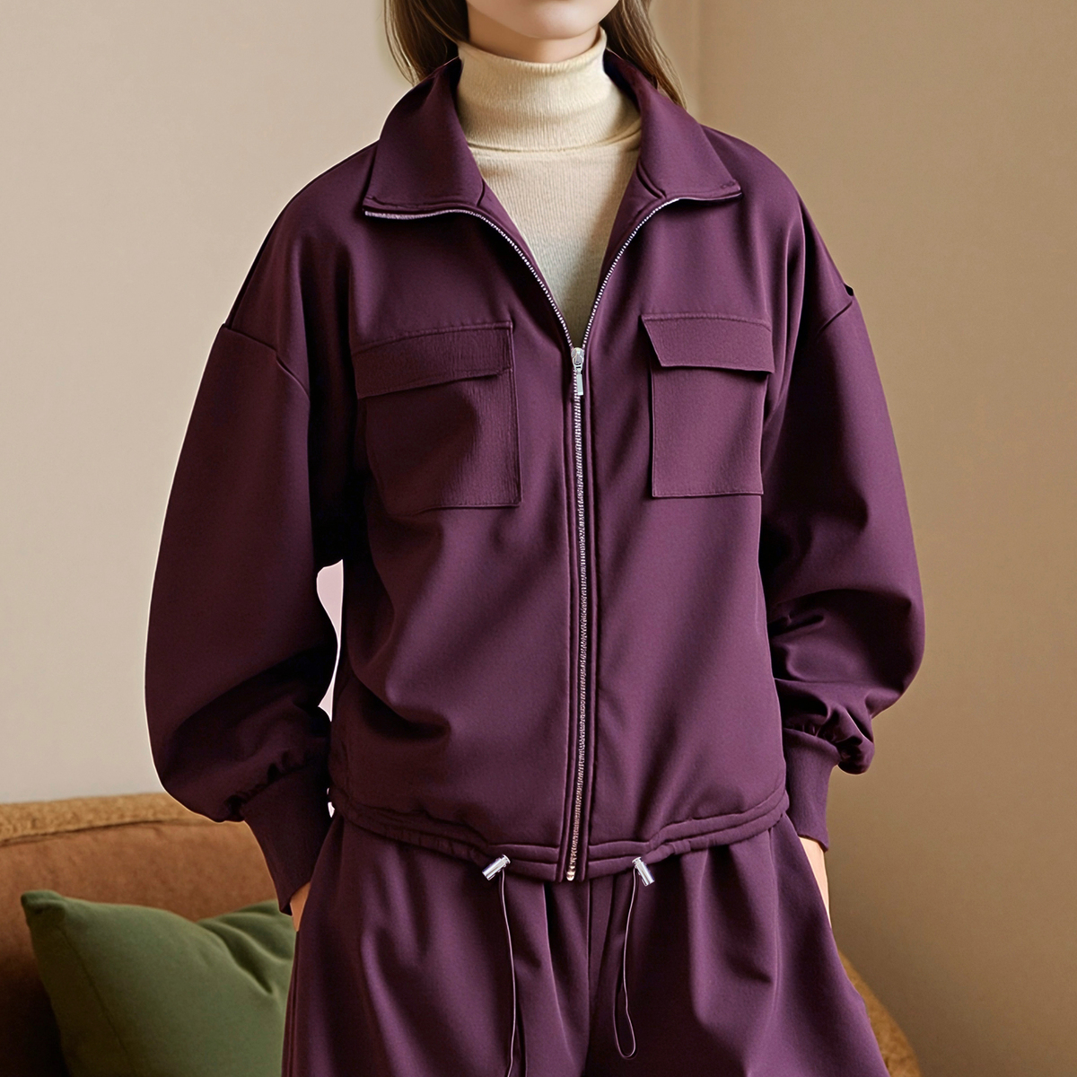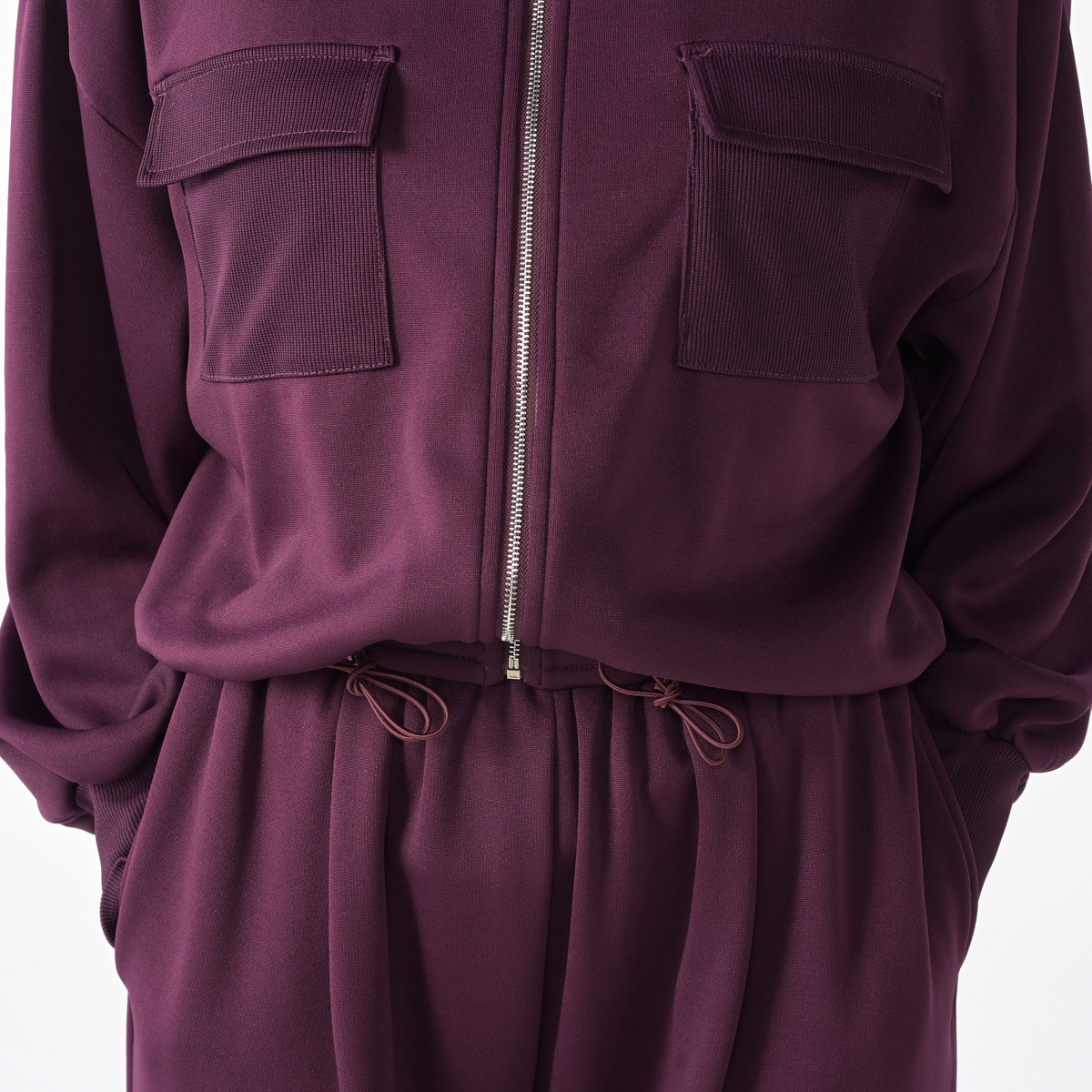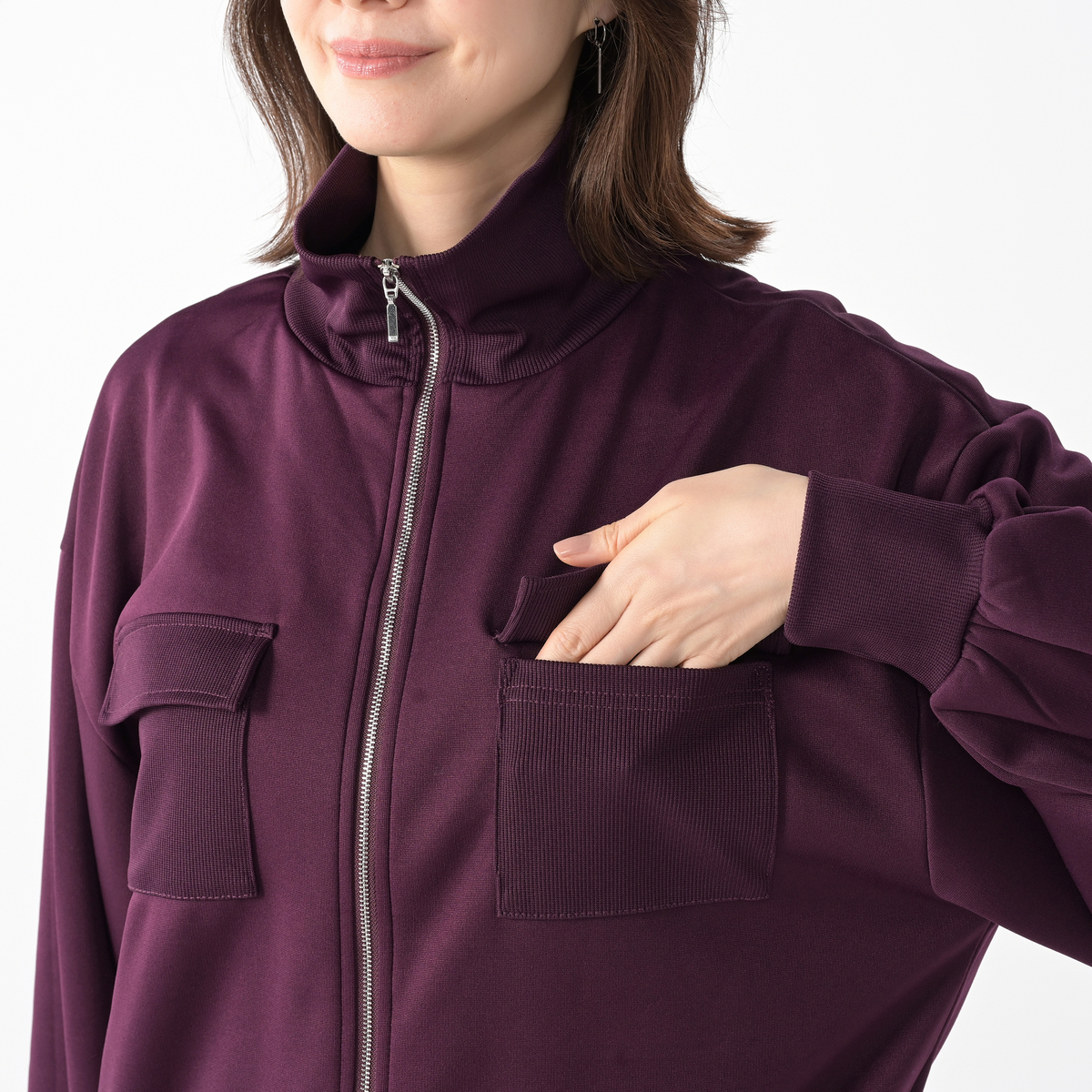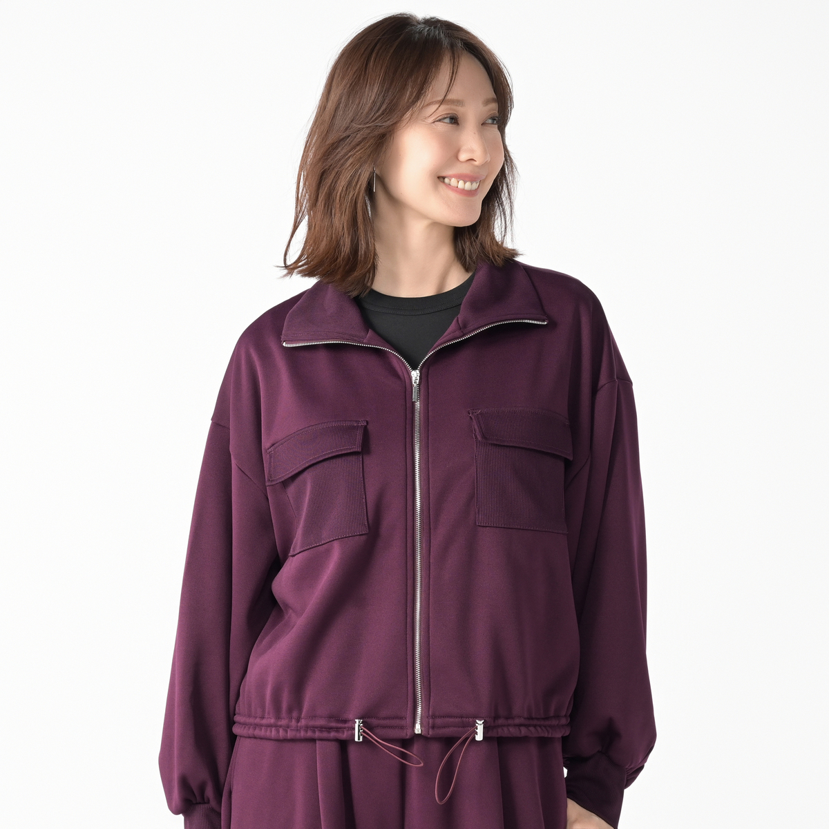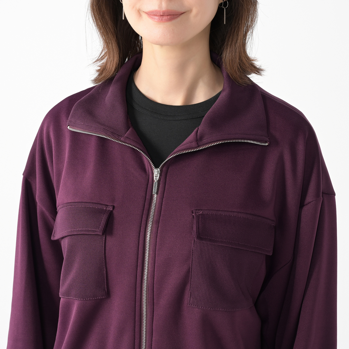 トレンド感のあるボックスシルエットのブルゾン。表面はフラットなカットソー、裏面はシャギー(毛羽立ち)加工で柔らかく暖かな着心地。軽やかで伸縮性もあり動きやすい素材です