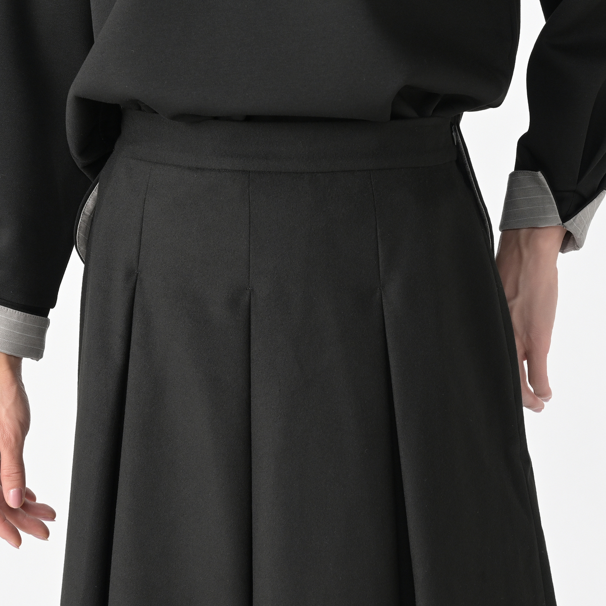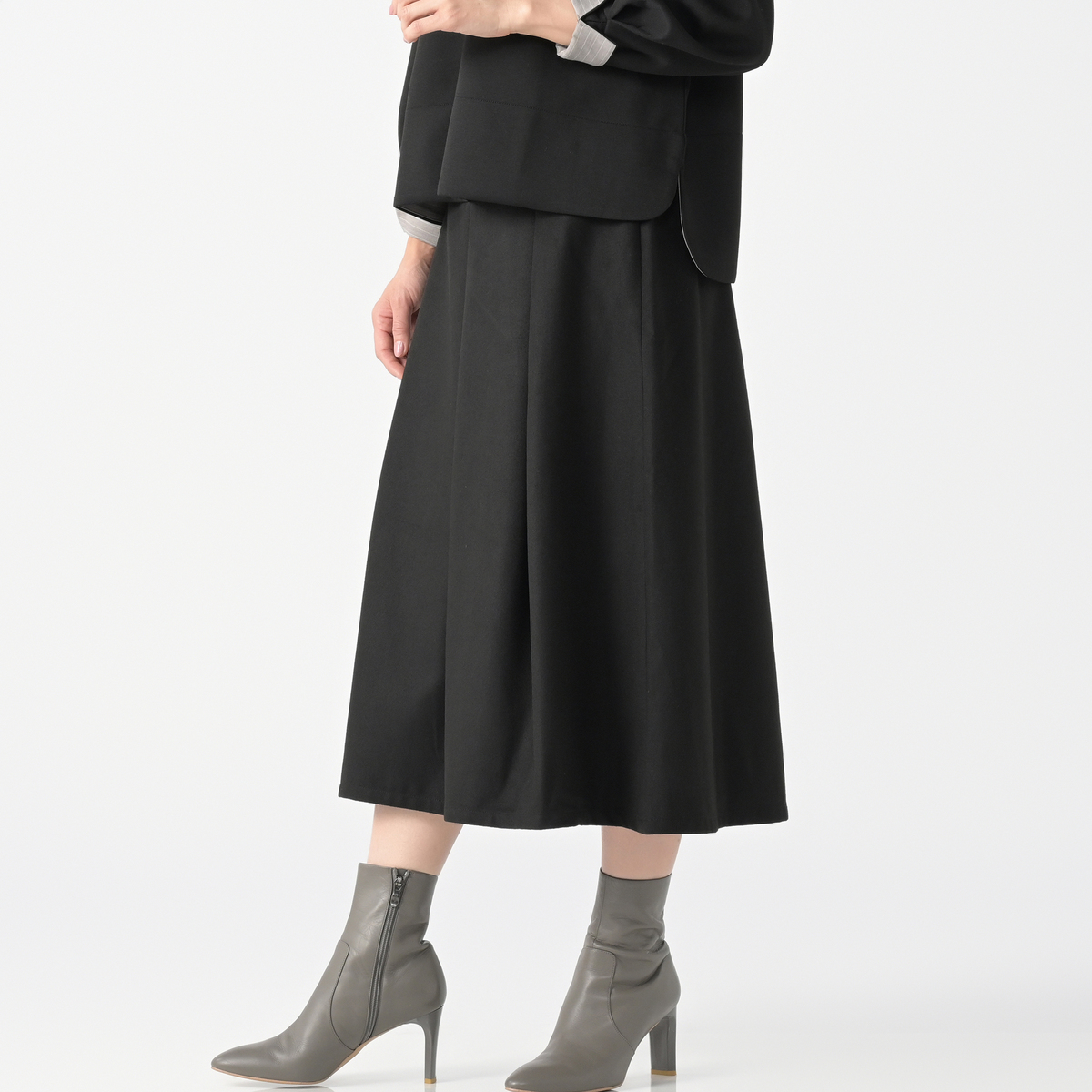 インバーテッドタックが施されたAラインスカート。タックの開きを抑えつつ、長時間着用してもシルエットが崩れにくいようなデザインです