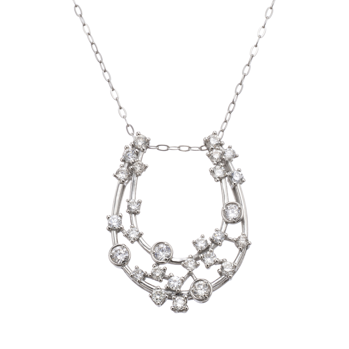 ラッキーモチーフとして人気の馬蹄(ホースシュー)デザインのペンダント。煌めくダイヤモンドをあしらい華やかに仕上げました