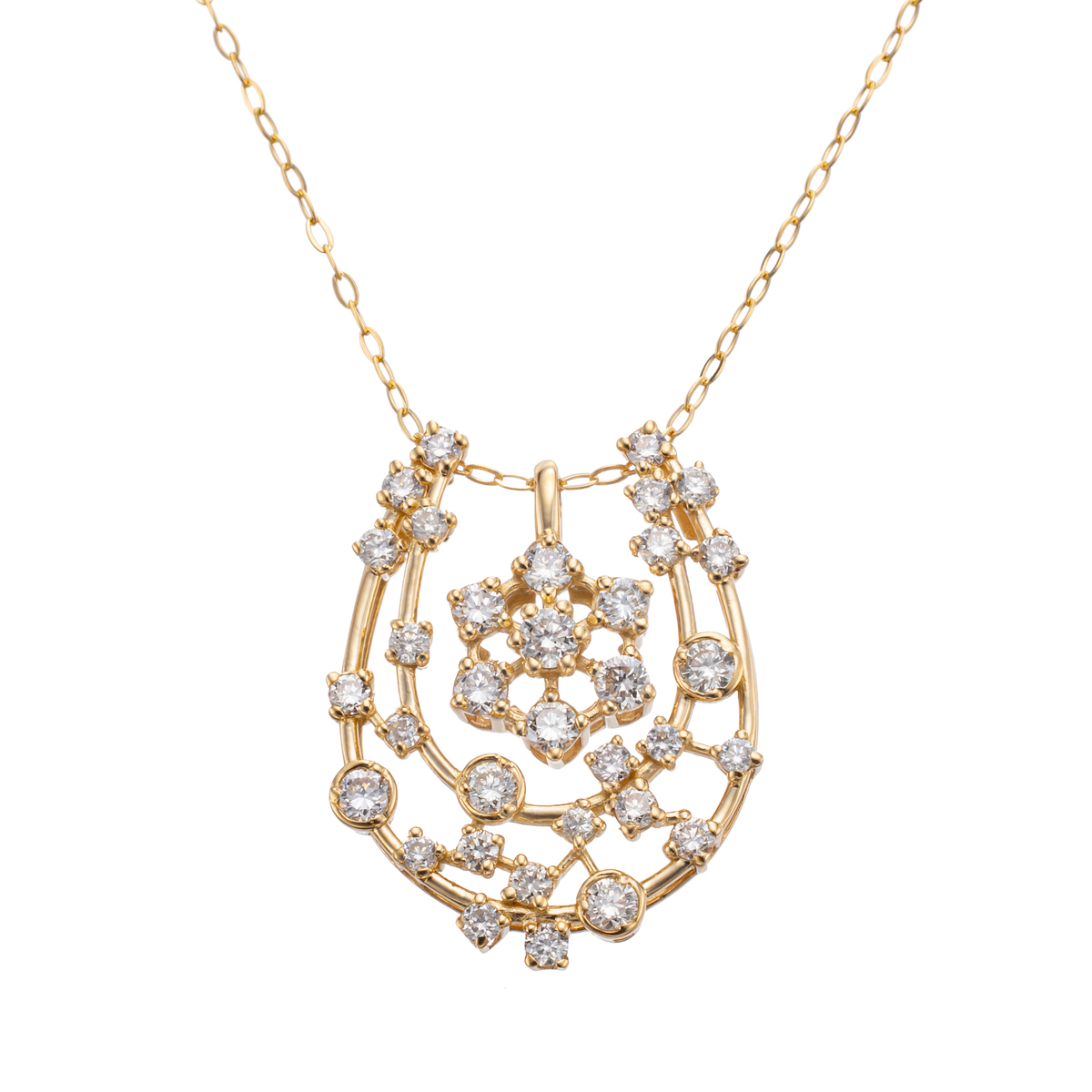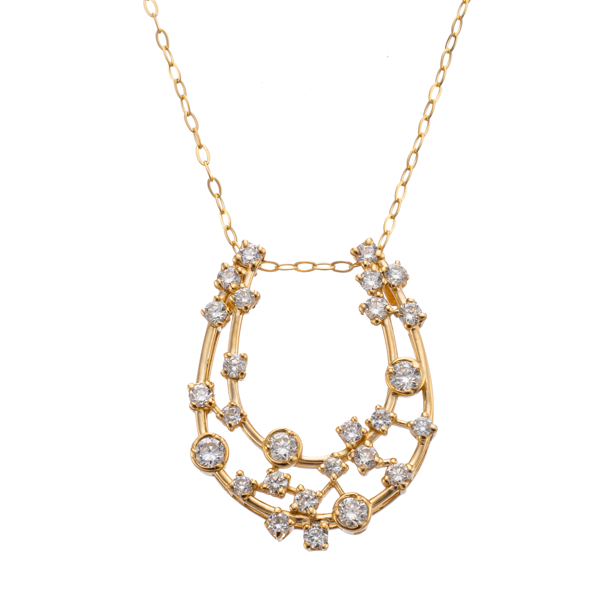 ラッキーモチーフとして人気の馬蹄(ホースシュー)デザインのペンダント。煌めくダイヤモンドをあしらい華やかに仕上げました