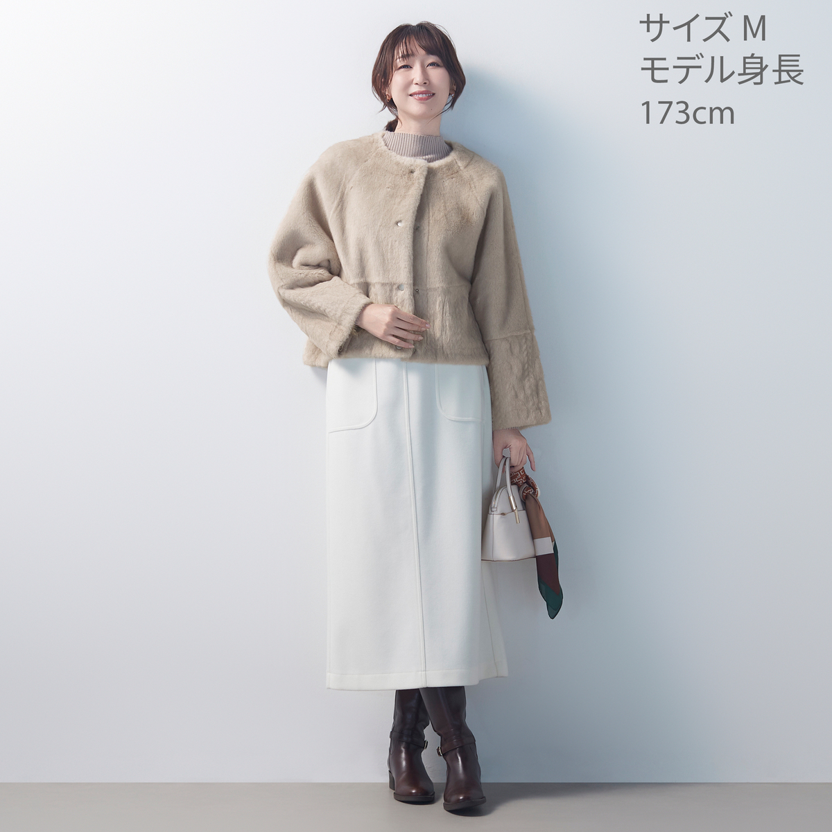 今回初めてミーニャさんの商品を購入しました。袖ぐりが大きく出来ているので脱ぎやすく、着用しやすいです。裏も、表もどちらも素敵ですが、フェイクファーのタイプはホテルのディナーにも着ていかれそうな程、素敵で可愛いです。159cm49kでMサイズを購入しました。私はゆったりと着たいので丁度良かったですが、タイトに着用したい方はワンサイズ下げても素敵かも?
