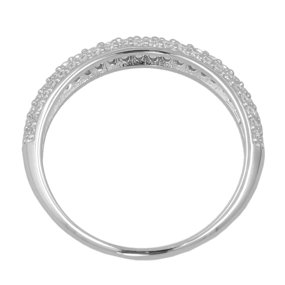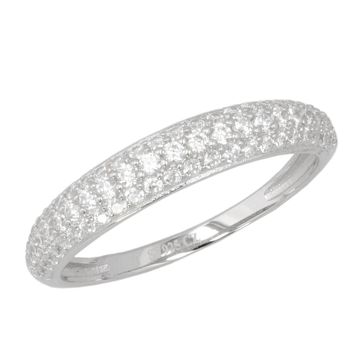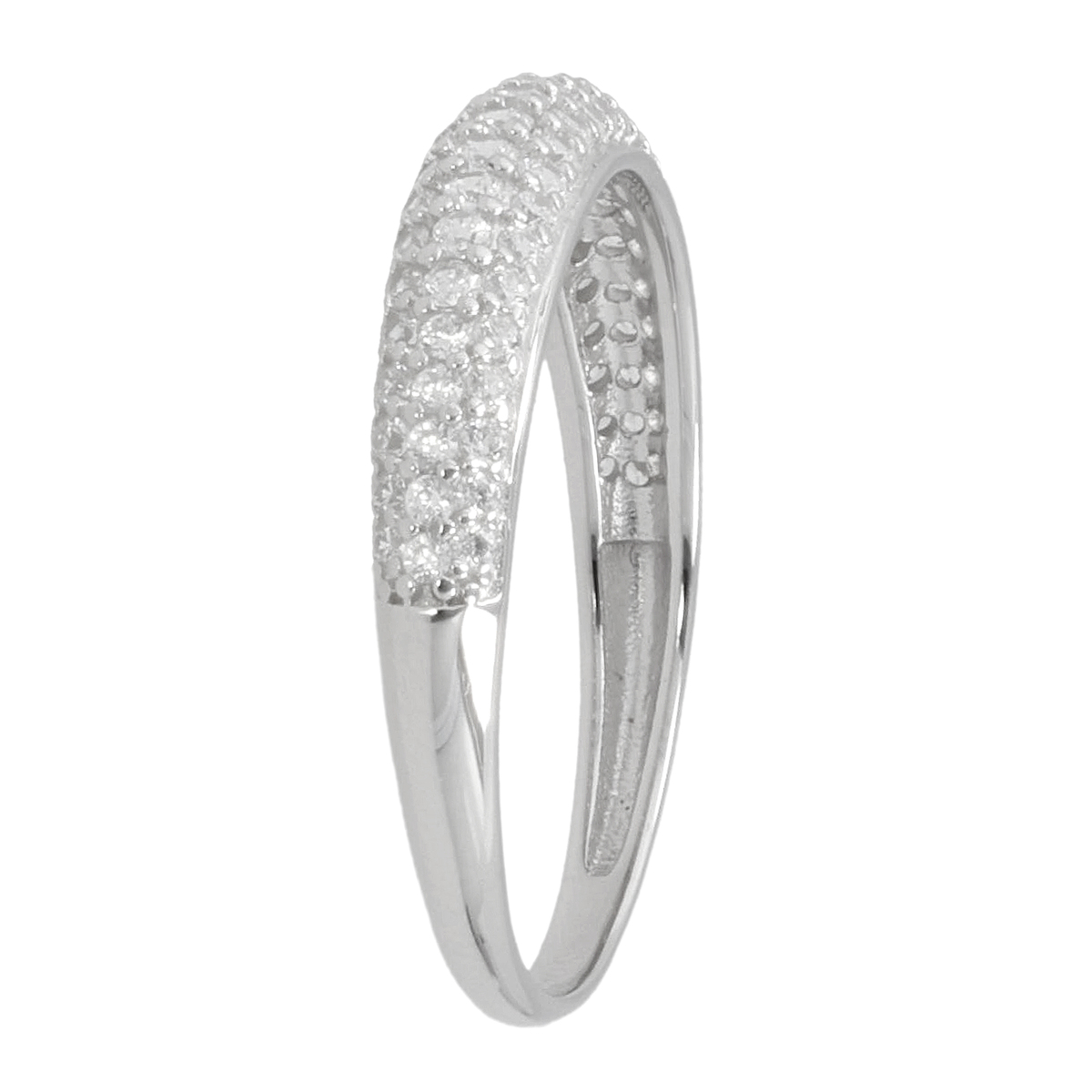 月甲丸にダイアモニーククリアCZを敷き詰めたリングです。さまざまなサイズのダイアモニーククリアCZが繊細な輝きを生み、指元を美しく引き立てます