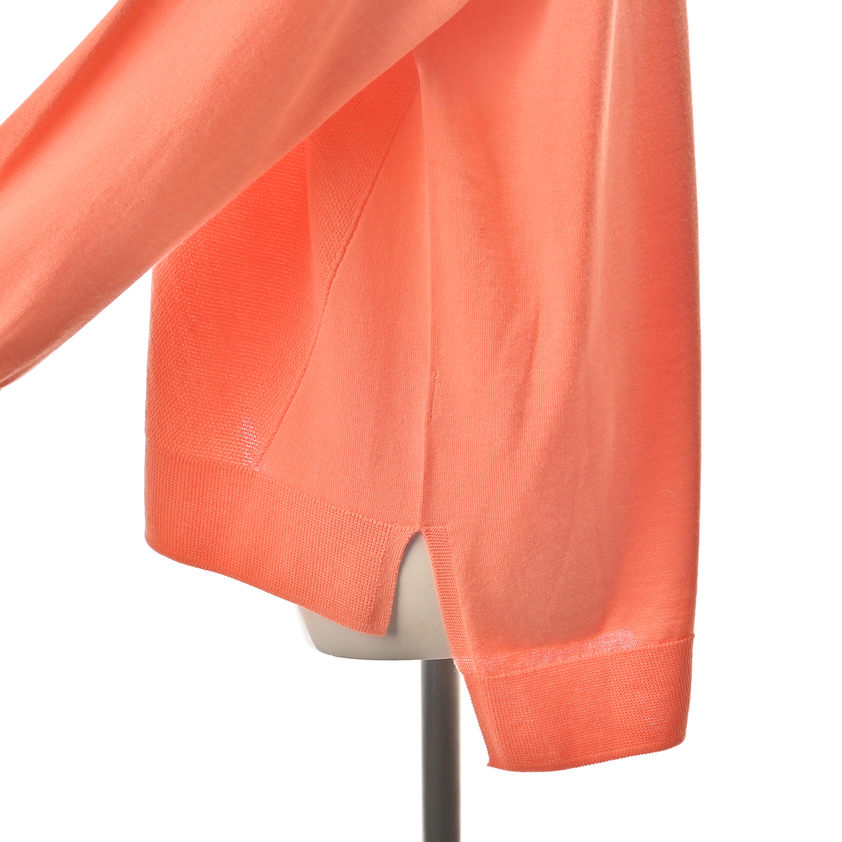 編み立てには、ホールガーメント機を使用しました。一着丸ごと編み上げるため、突っ張りを感じにくく、身体に自然に寄り添う着心地が特徴です