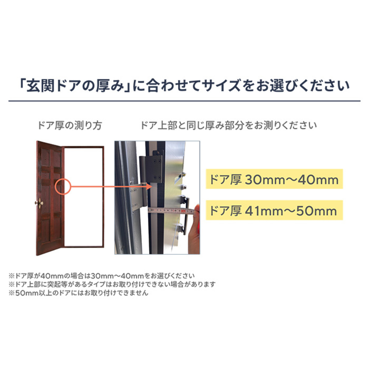 *3)内開きドアには設置出来ません。ドアの厚み等により、一部取付出来ない場合があります。対応ドア厚:約30〜50mm