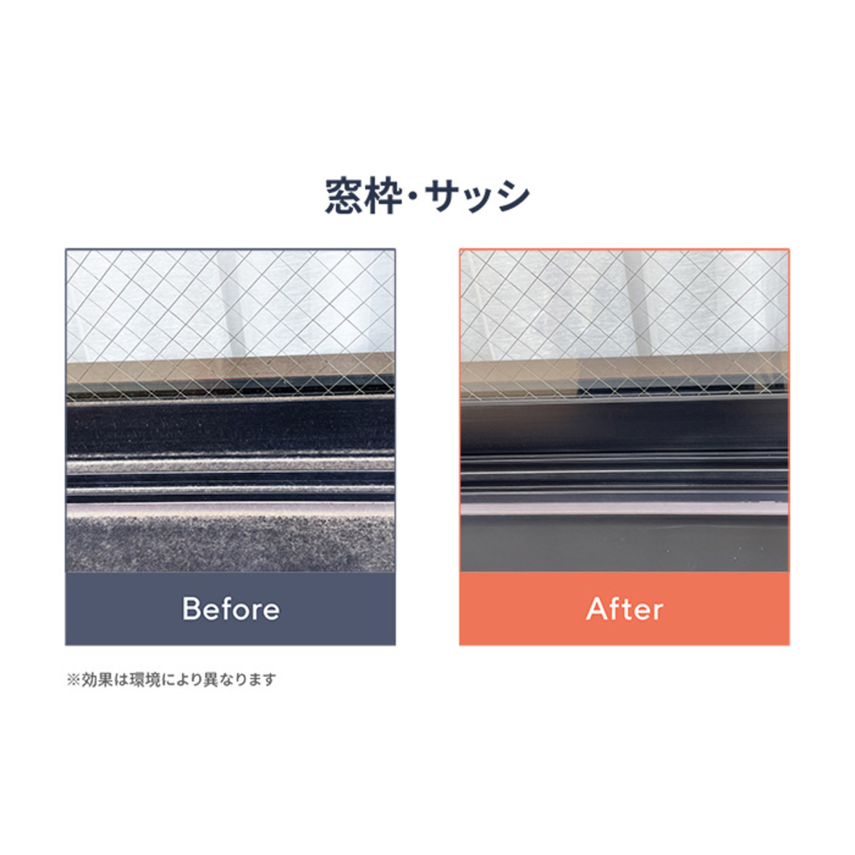 汚れを効果的に落とすだけでなく、表面に自然なツヤと輝きをもたらします。車やベランダ、室外機、物置、シャッター、窓ガラス、玄関などに使用可能(*)