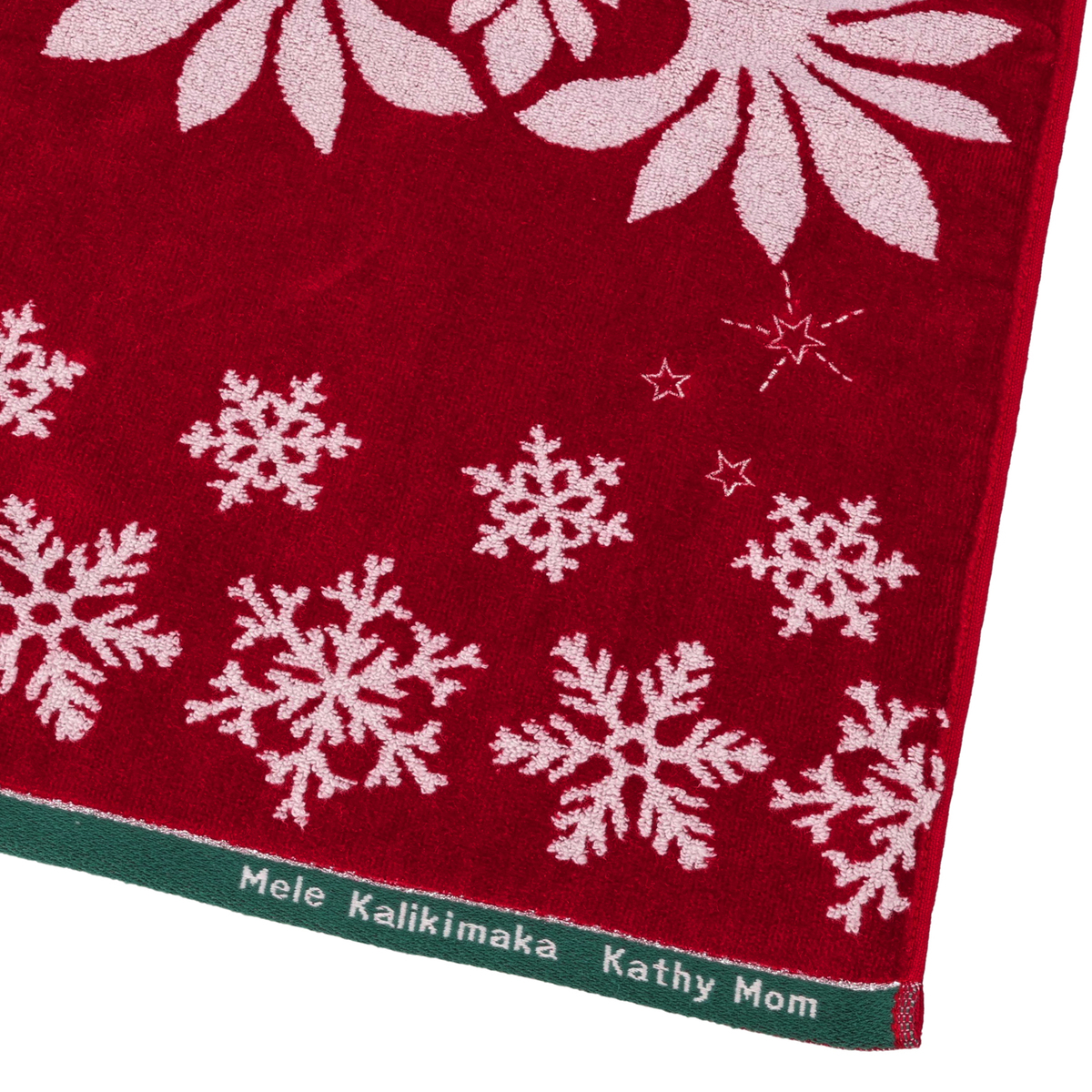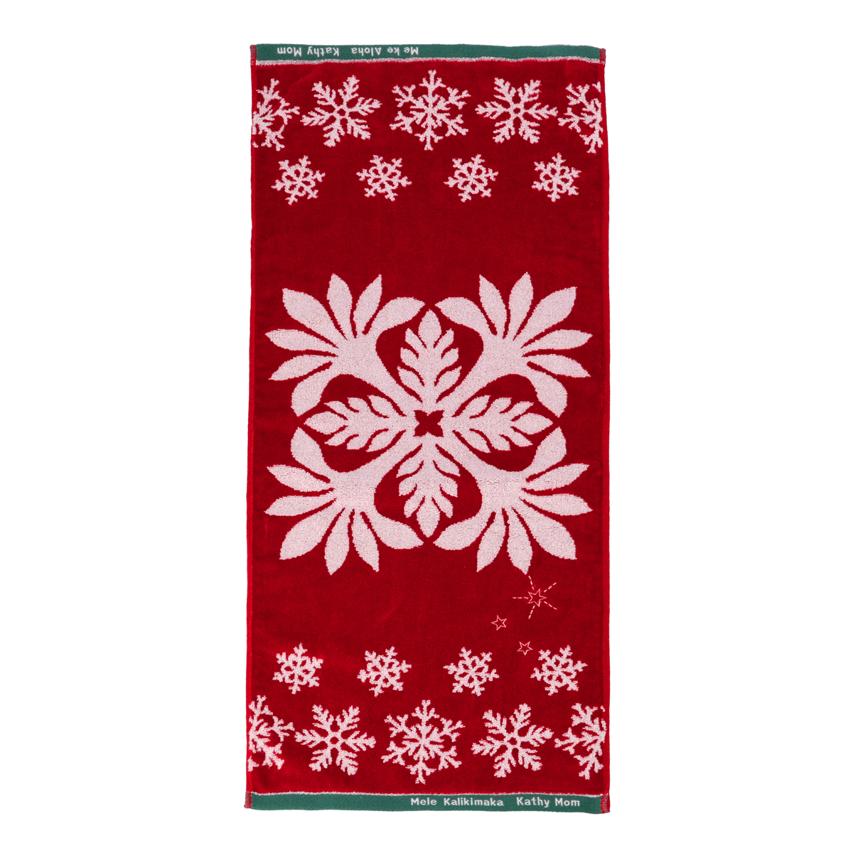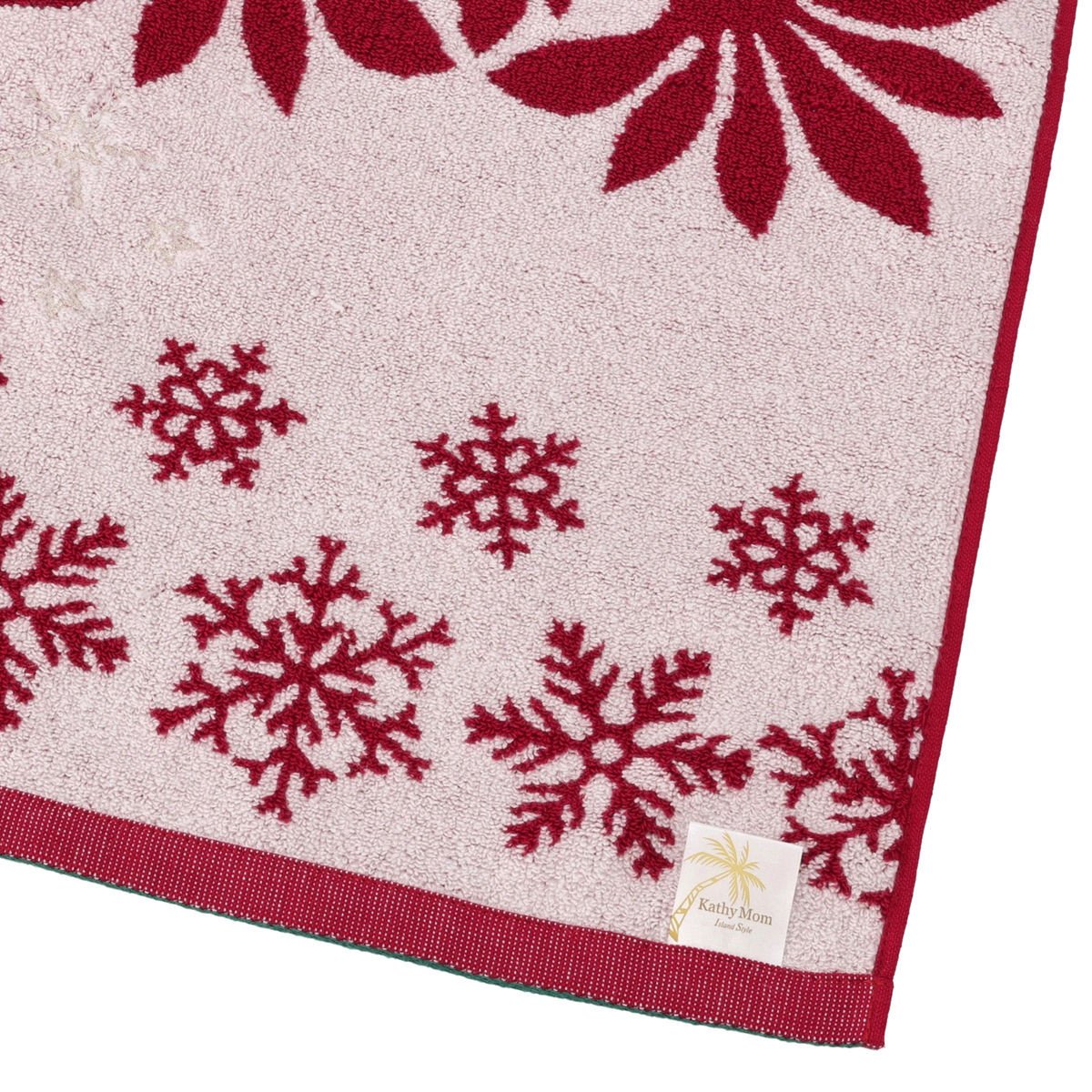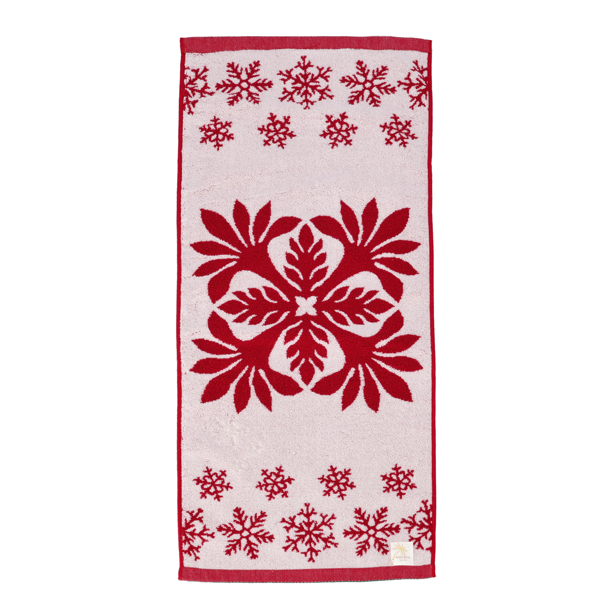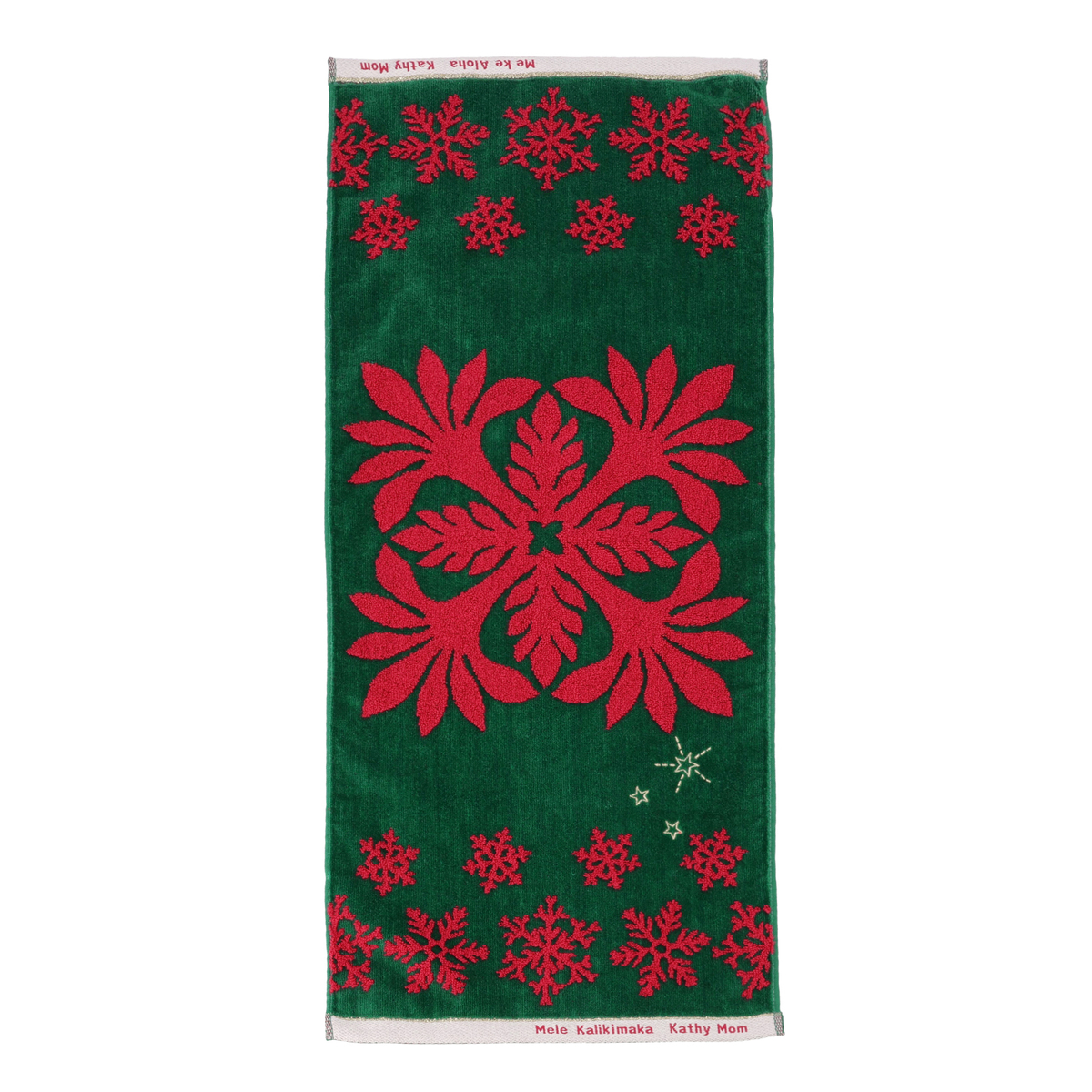 ハワイアンキルト作家 キャシー中島さんプロデュース「キャシーマム アイランドスタイル」からフェイスタオルをお届け。「ティ」の葉のデザインをキルトにしました。南国の風を感じるキャシーマムデザインのクリスマス柄が、気分もお部屋も明るく盛り上げてくれそうです