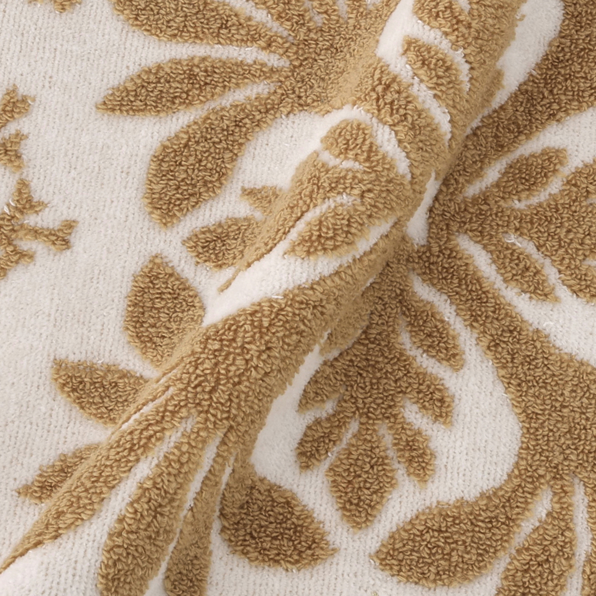 無撚糸蒸シャーリング加工で柄の部分はループ状になり鮮やかな柄に。グランド部分はシャーリングカットされた、凹凸感のある仕上がりになっています