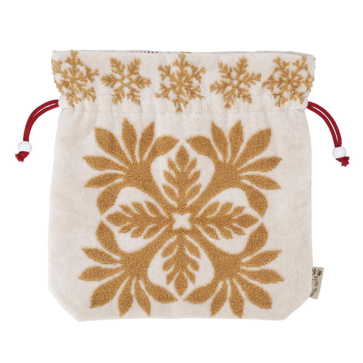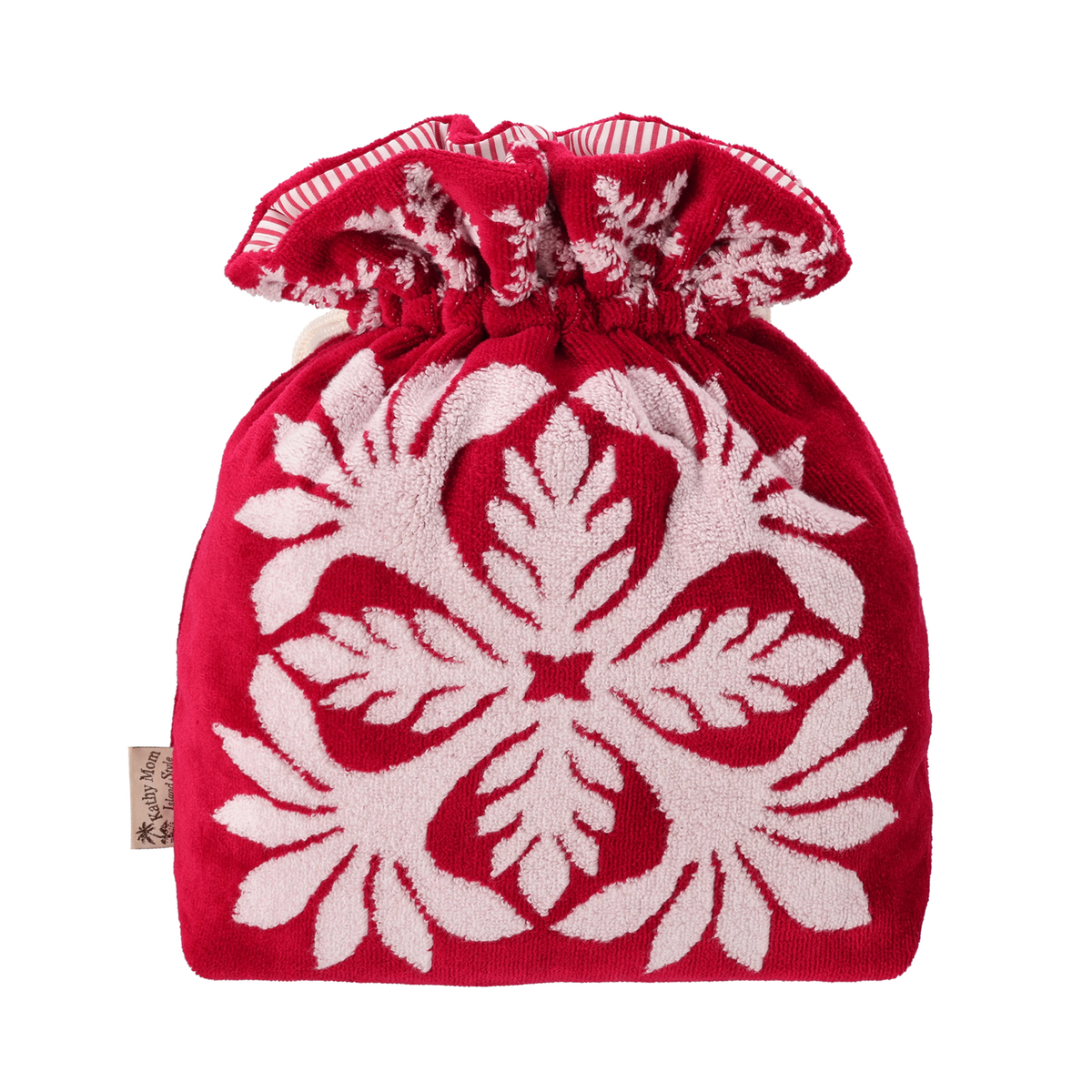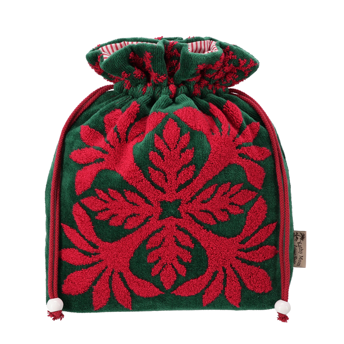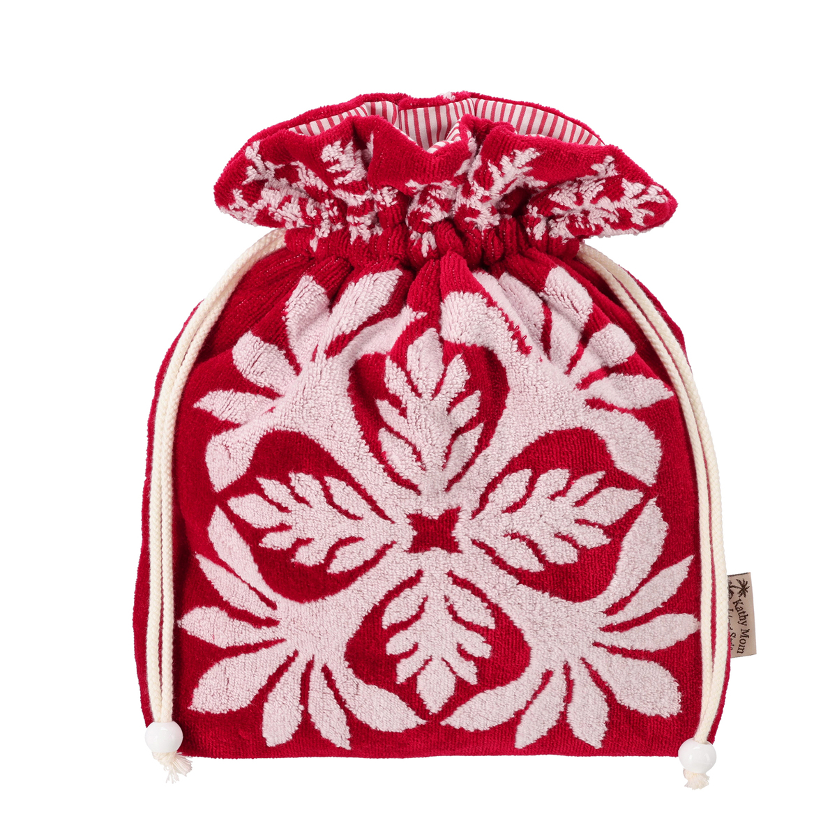 ティの葉のデザインをキルトにしたポーチです。無撚糸蒸シャーリング加工で柄の部分はループ状になり鮮やかな柄に。グランド部分はシャーリングカットされた、凹凸感のある仕上がりになっています