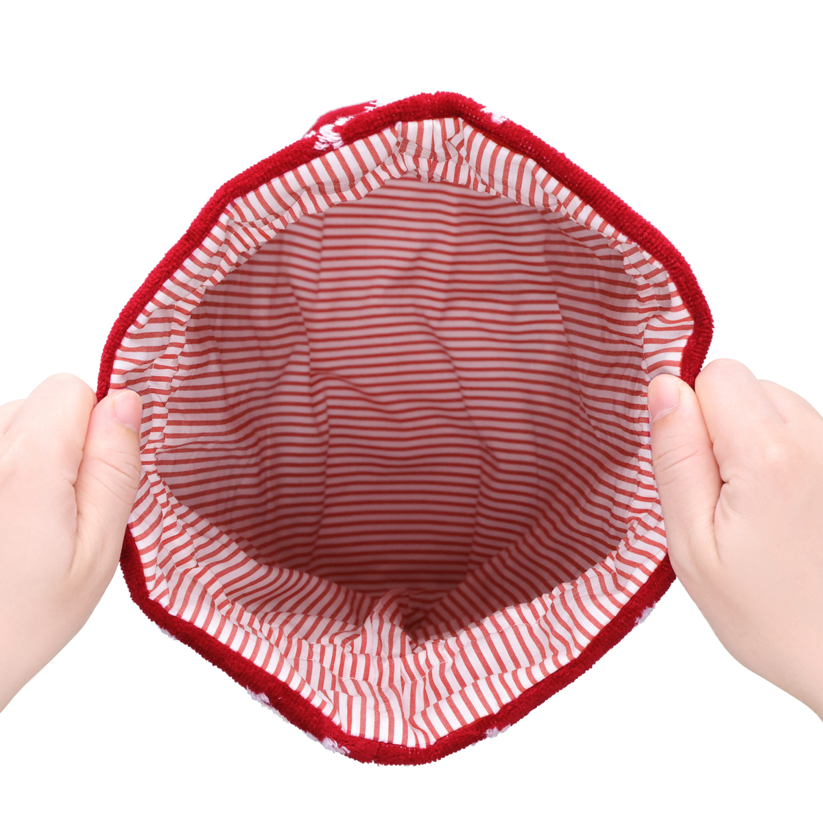 [サイズ(約)] 縦32×横30×マチ8cm [重量(約)] 120g [素材] 表地:綿100% 裏地:綿100% [仕様] 開閉:巾着式 [ポケット] 内側:無 外側:無 [注意事項] ※初めのうちは、色が多少出ることがありますので、白物と一緒に洗わないで下さい ※洗濯後は、すぐ干して下さい ※塩素系漂白剤は、使用しないでください ※水道水中の塩素により、色が変わる事がありますので、すすぎは短時間で行ってください ※パイルは他のものに引っかかりやすいので、ネット洗いをお勧めします ※破損の原因となりますので、尖ったものや鋭利なものは入れないで下さい ※最初より2〜3回の洗濯時には色落ちすることもありますので白いものと一緒に洗わないで下さい ※この商品は他の物に引っ掛かりやすいので、単独で洗うか洗濯ネットをお使いください ※クリーニングの際はクリーニングネットを使用し、静止型の乾燥機をお使いください ※ネット使用 ※つけ置き禁止 ※1点止めつり干し禁止 ※あて布使用 ※弱く絞る 【中国製】