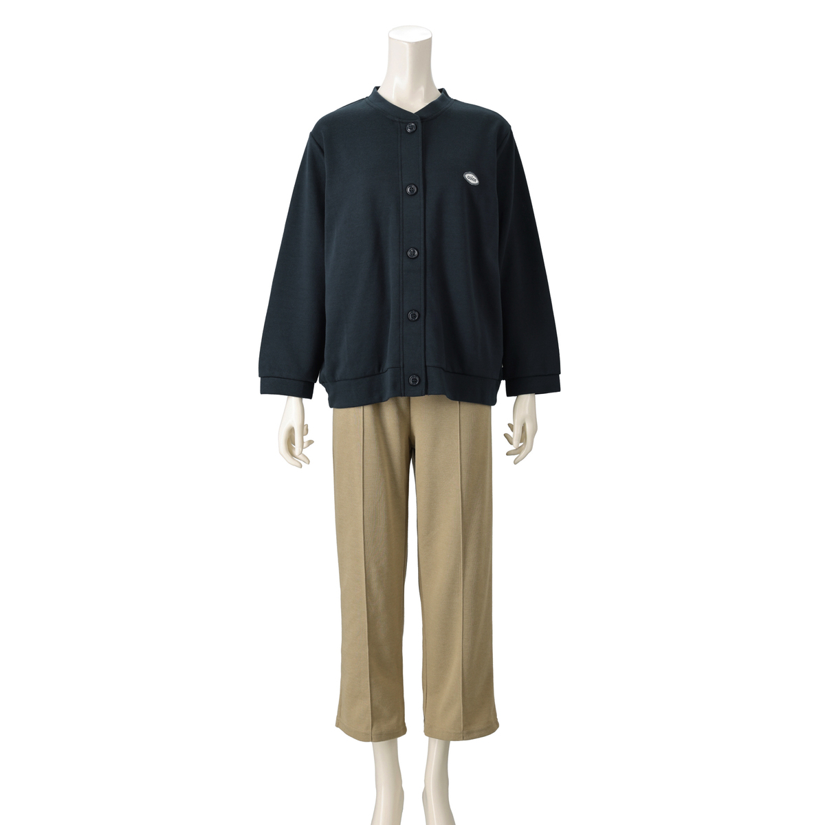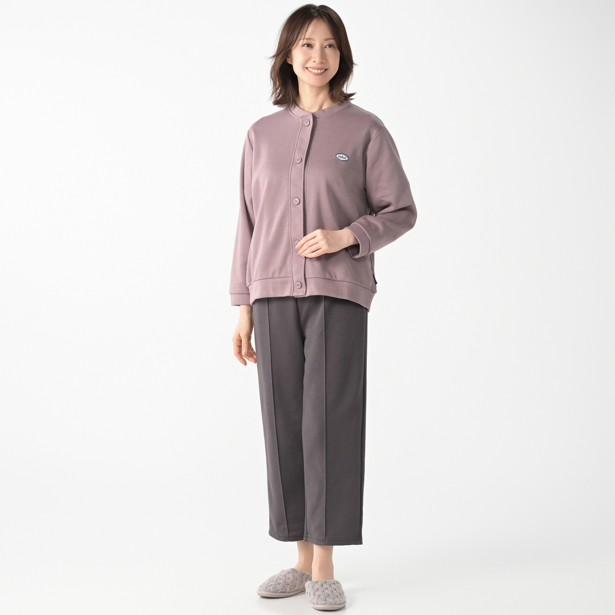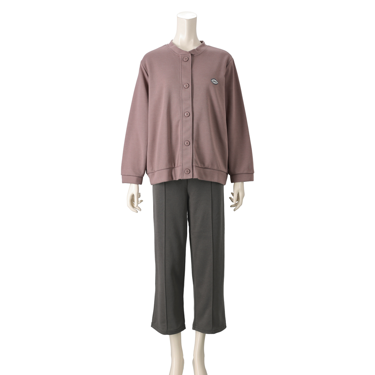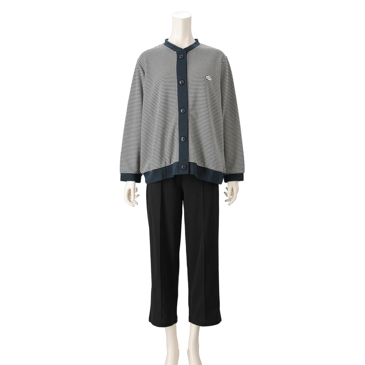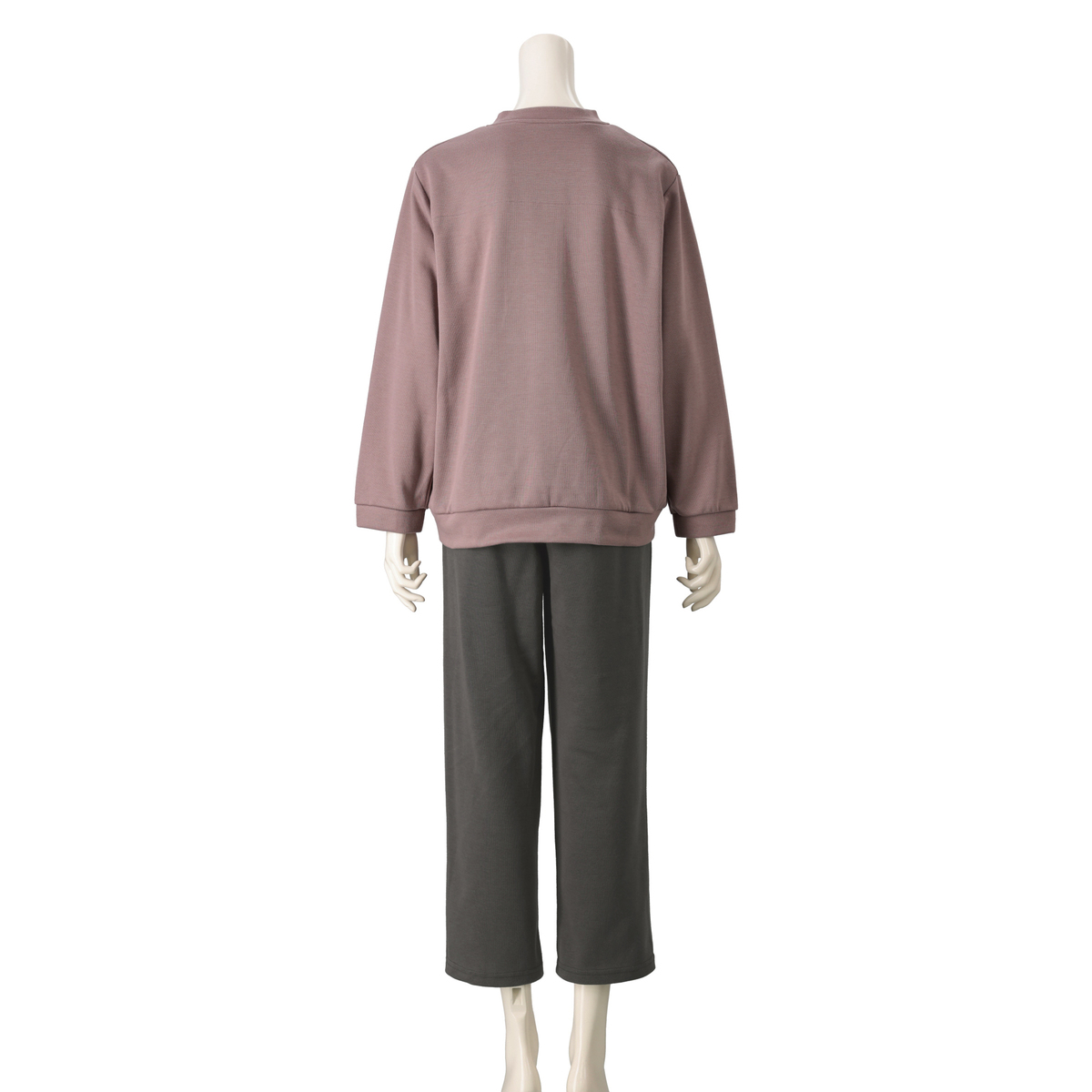 着心地の良いカットソー素材のルームウエアー上下セット。思いやり設計ながらも、おしゃれ感のあるデザインが特徴です