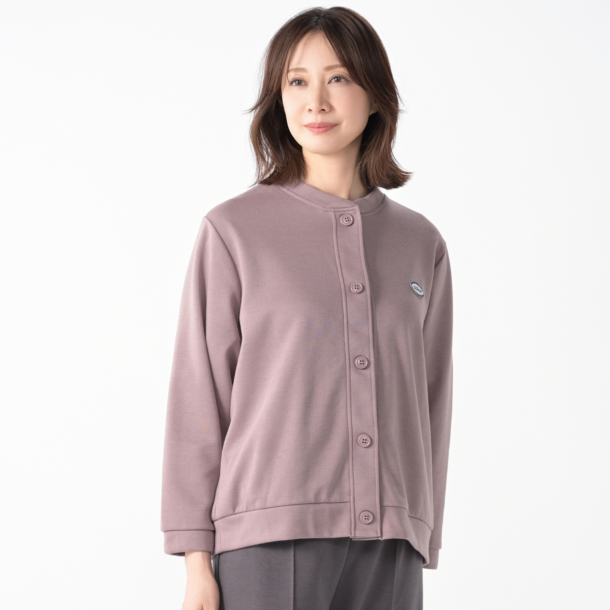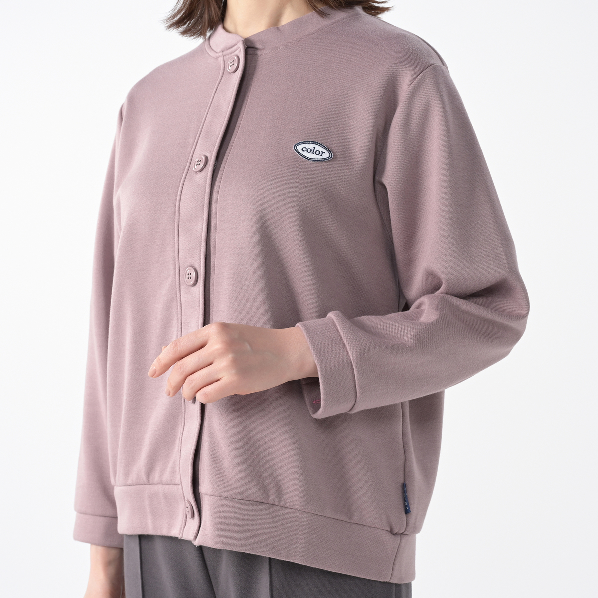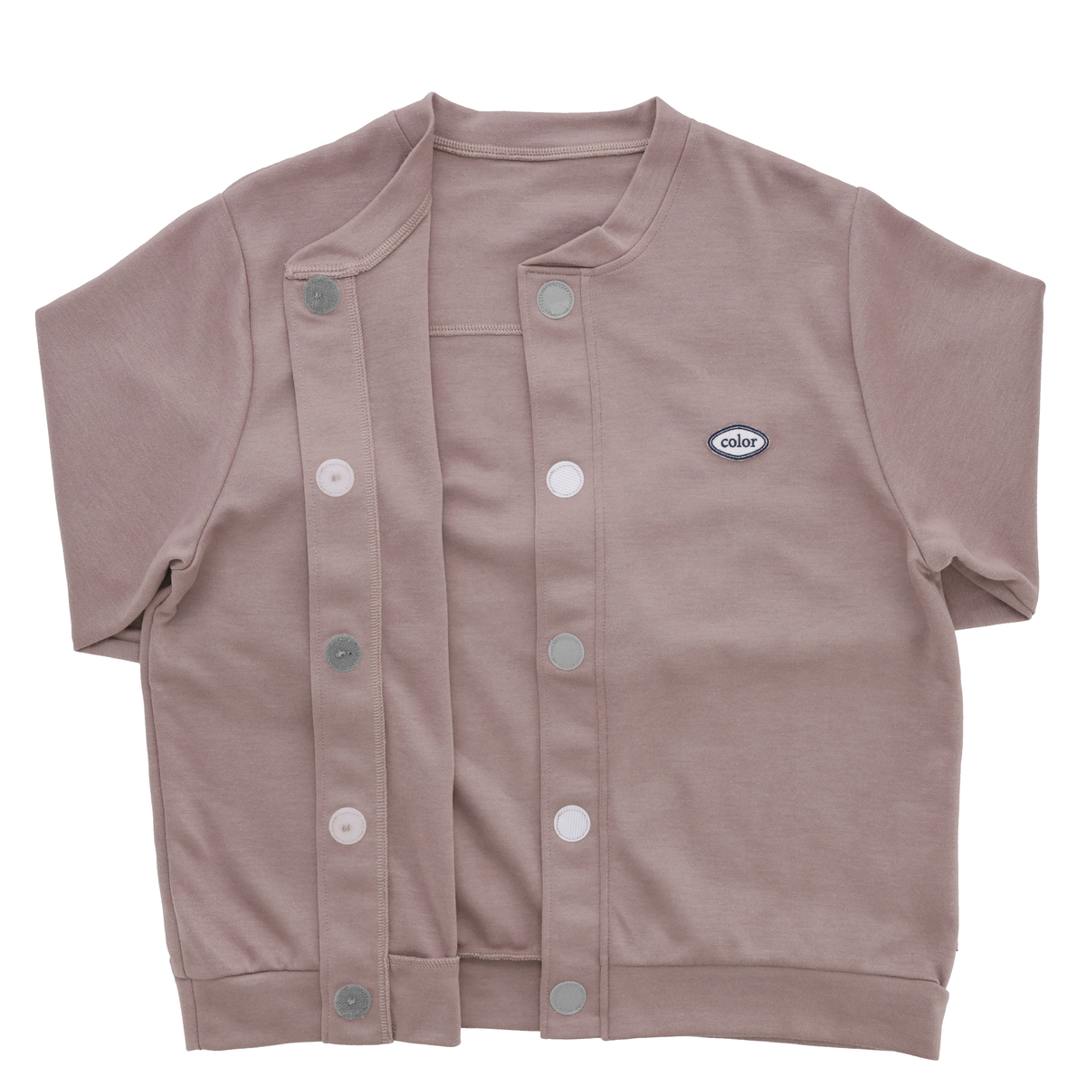 トップスはゆったりとしたシルエットで締め付け感を感じにくく、アームホールも広めで腕が通しやすい設計。前開きは面ファスナー仕様で着脱しやすく、付け間違いを防ぐため面ファスナーには交互に色が付いています