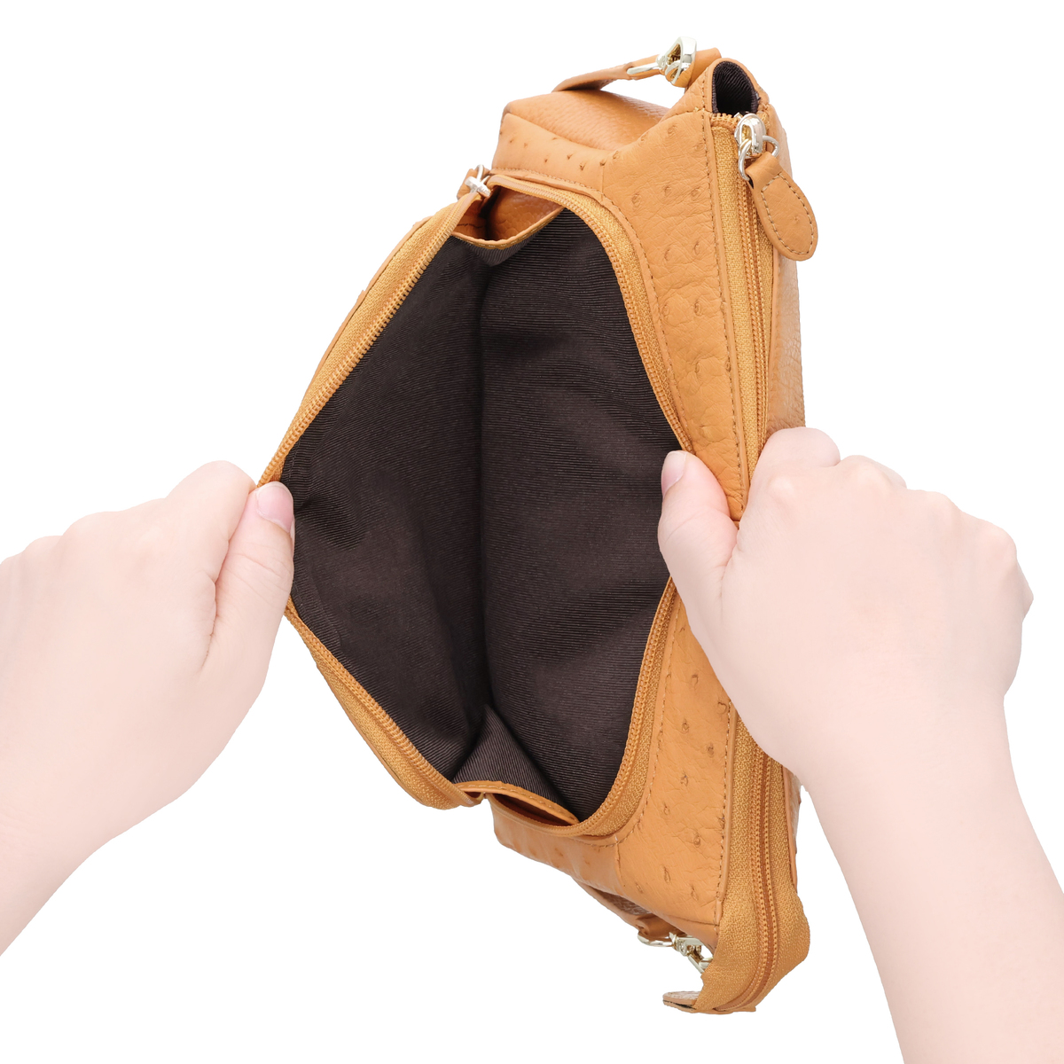 本物のオーストリッチに、軽くて使いやすそうなバックでしたので、70代の母にプレゼントしました。ショルダーにすれば両手か空き、ポケットも沢山あり、大変喜んでいました。またステキなバックをお願いいたします。