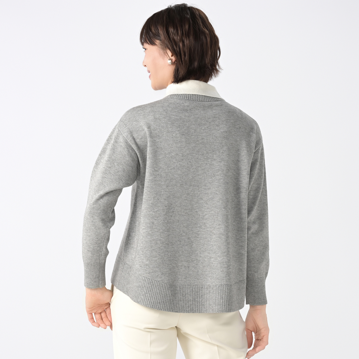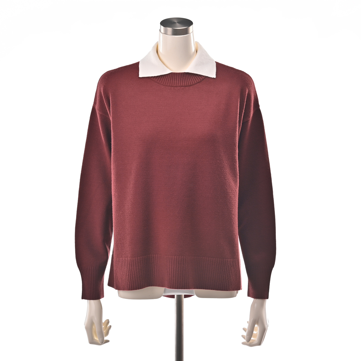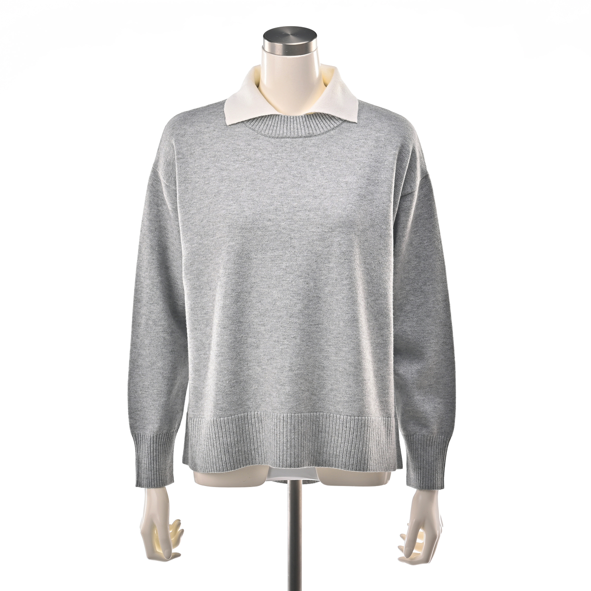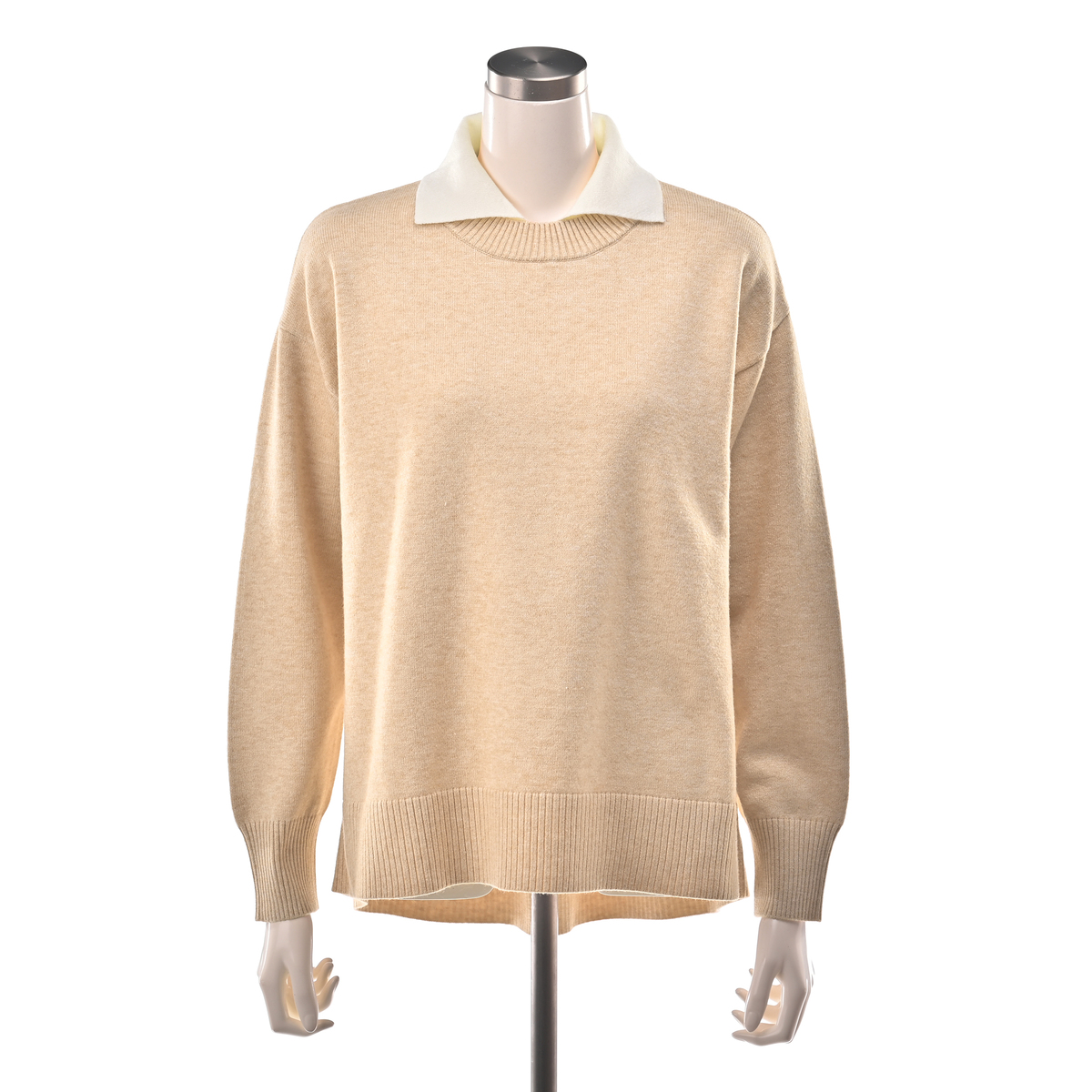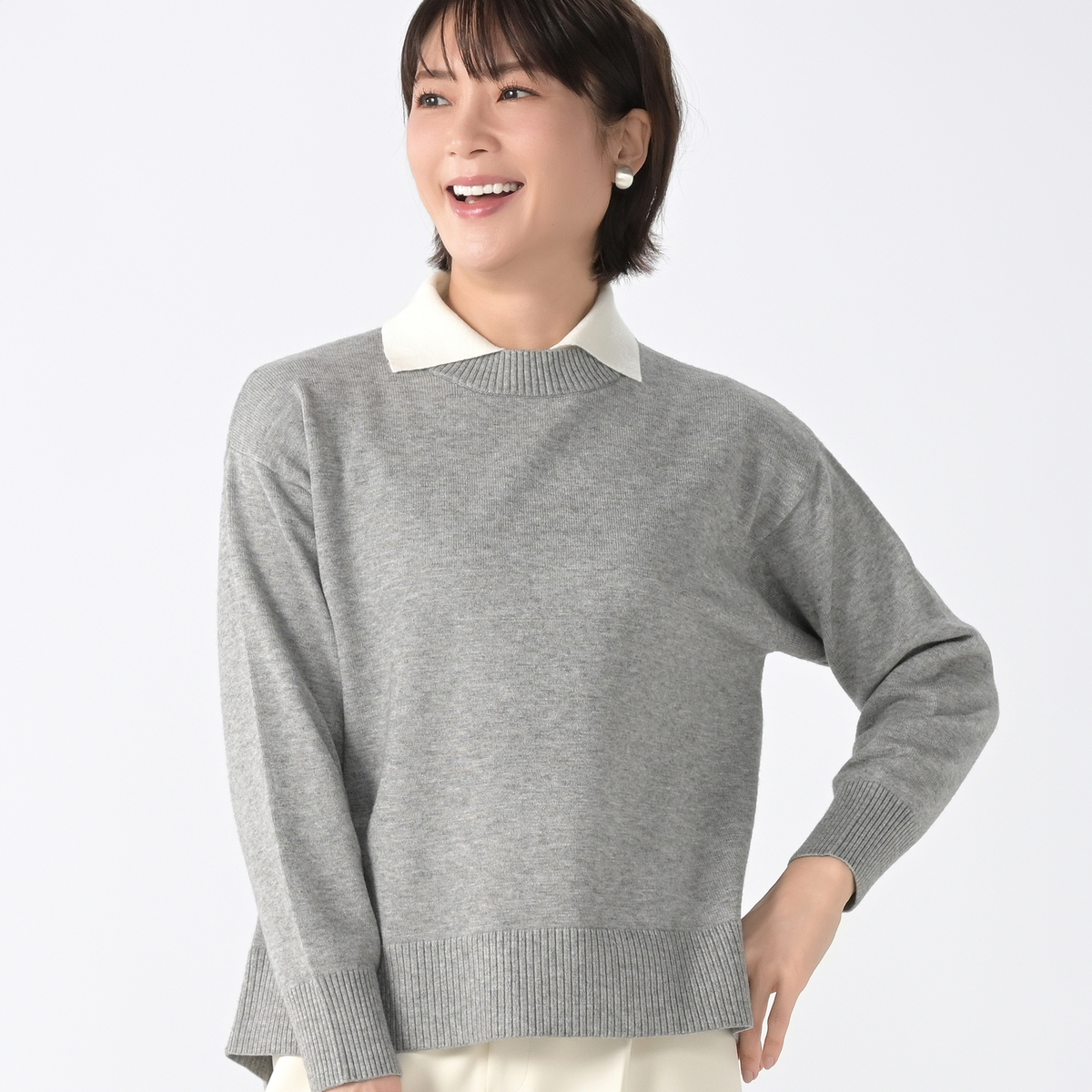 重ね着風のデザインで、まるでコーディネート上級者のようなスタイルを叶える、レイヤード風ニットプルオーバー。シャツやブラウスを重ねる手間なく、これ一枚でトレンドのレイヤードスタイルが完成します