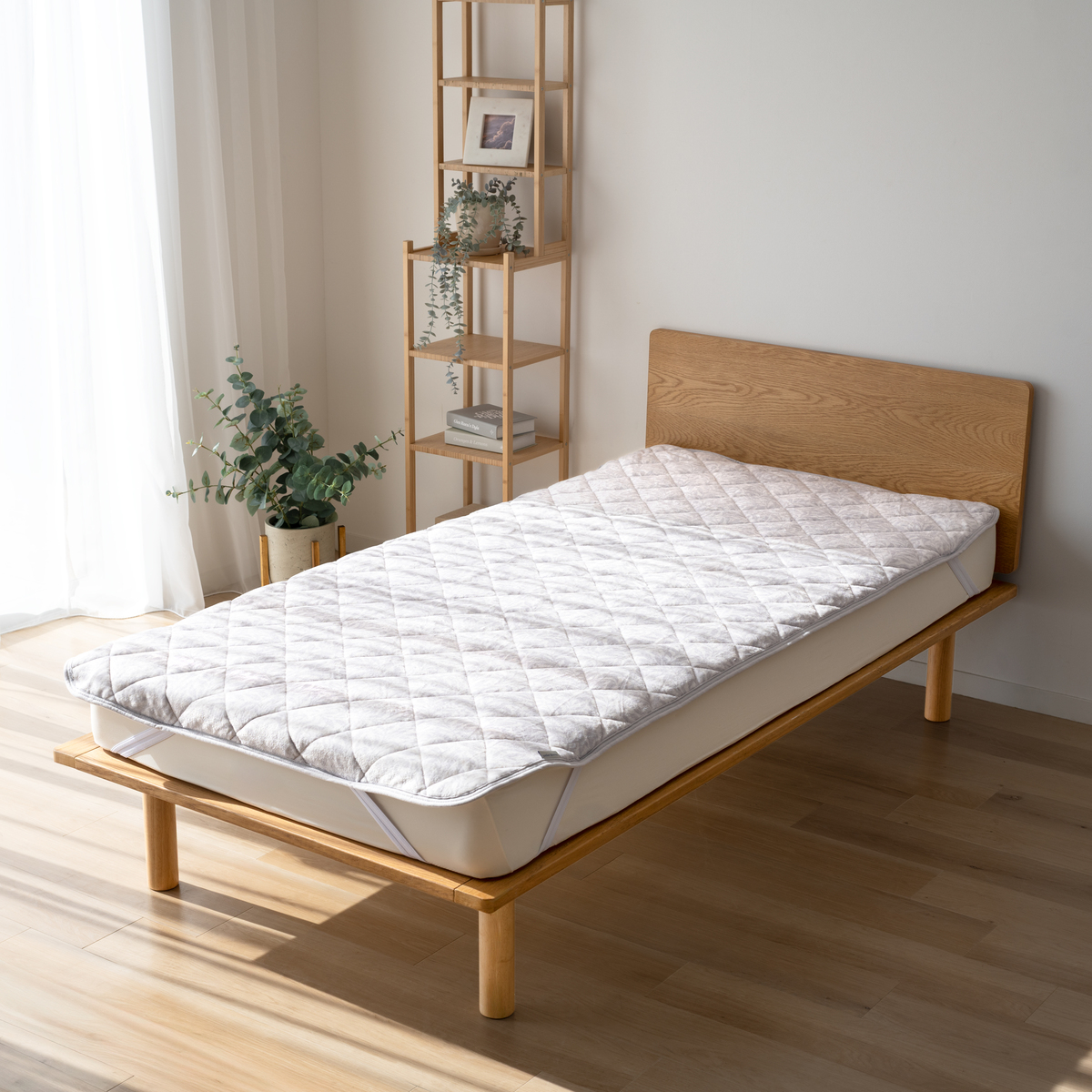 [サイズ(約)] シングル :幅100×奥行200cm セミダブル:幅120×奥行200cm ダブル :幅140×奥行200cm [重量(約)] シングル :975g セミダブル:1140g ダブル :1300g [素材] <表生地> 毛羽部:ポリエステル100% 基布部:ポリエステル55%、レーヨン45% <中わた> ポリエステル100% <裏生地> ポリエステル100% [お手入れ] 洗濯機洗い可 [注意事項] ※ご使用の洗濯機の取扱説明書の内容・注意事項にそってください ※洗濯機に入らない場合は無理に詰め込むと洗濯機故障の原因となりますので避けてください ※高水位で洗濯ネットを使用の上、単独で洗ってください ※素材特性上、ご使用やお洗濯により毛羽や毛玉が発生する事があります。その場合は取り除いてください ※この商品はキルトが施されている為、水洗いにより多少の縮みが発生します ※お洗濯後は直ちに形を整えて干してください ※強い摩擦がかかったり、湿った状態で放置すると他のものに色移りする場合がありますのでご注意ください ※ズレ防止のゴムは空気中の室素酸化物との化学反応により黄色に変色する場合があります。その場合は洗濯により黄色の変色はくなります 【中国製】