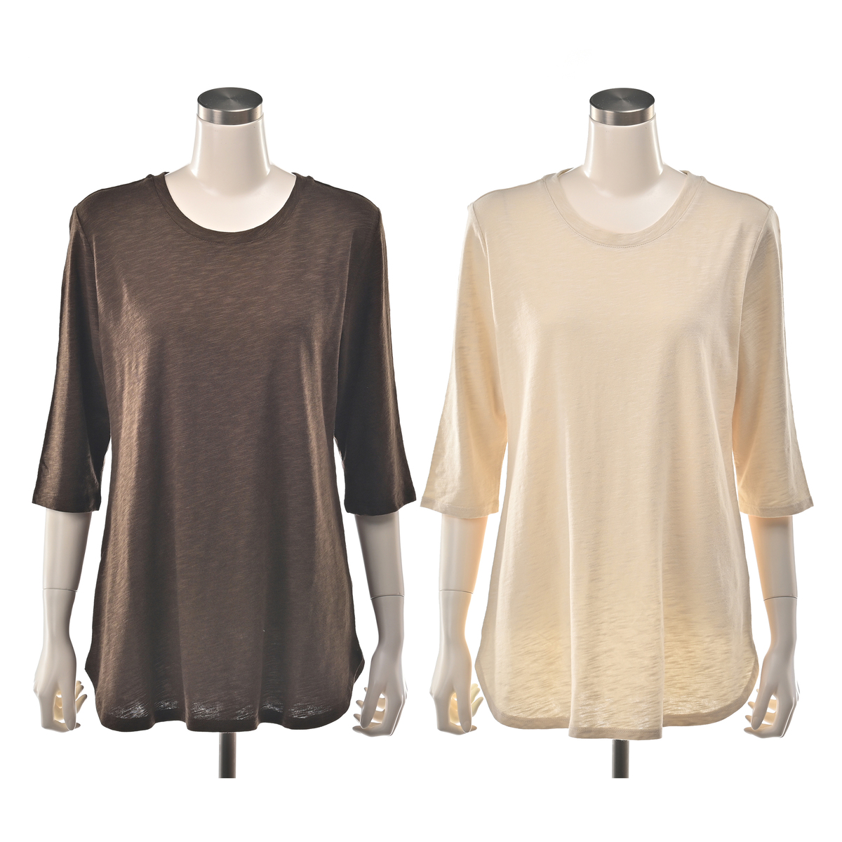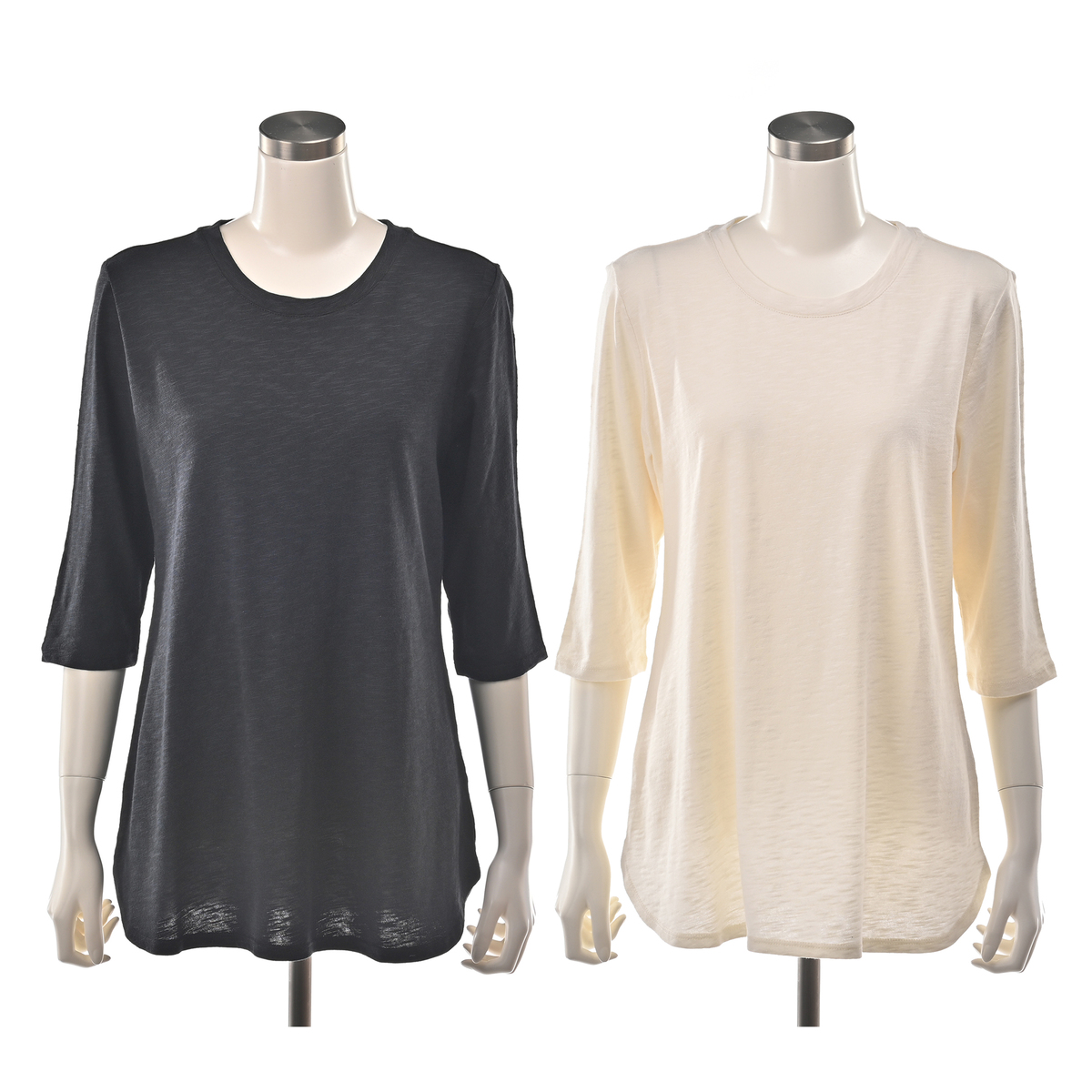 5分袖丈のプルオーバー2枚セット。裾のラウンドシェイプがやわらかな印象を与え、シンプルながらも洗練されたデザインです