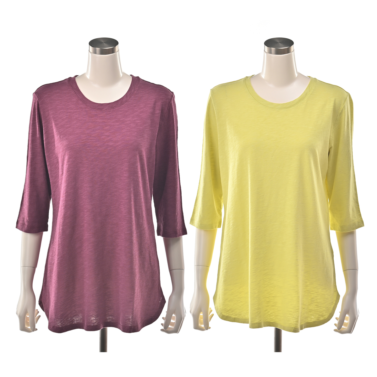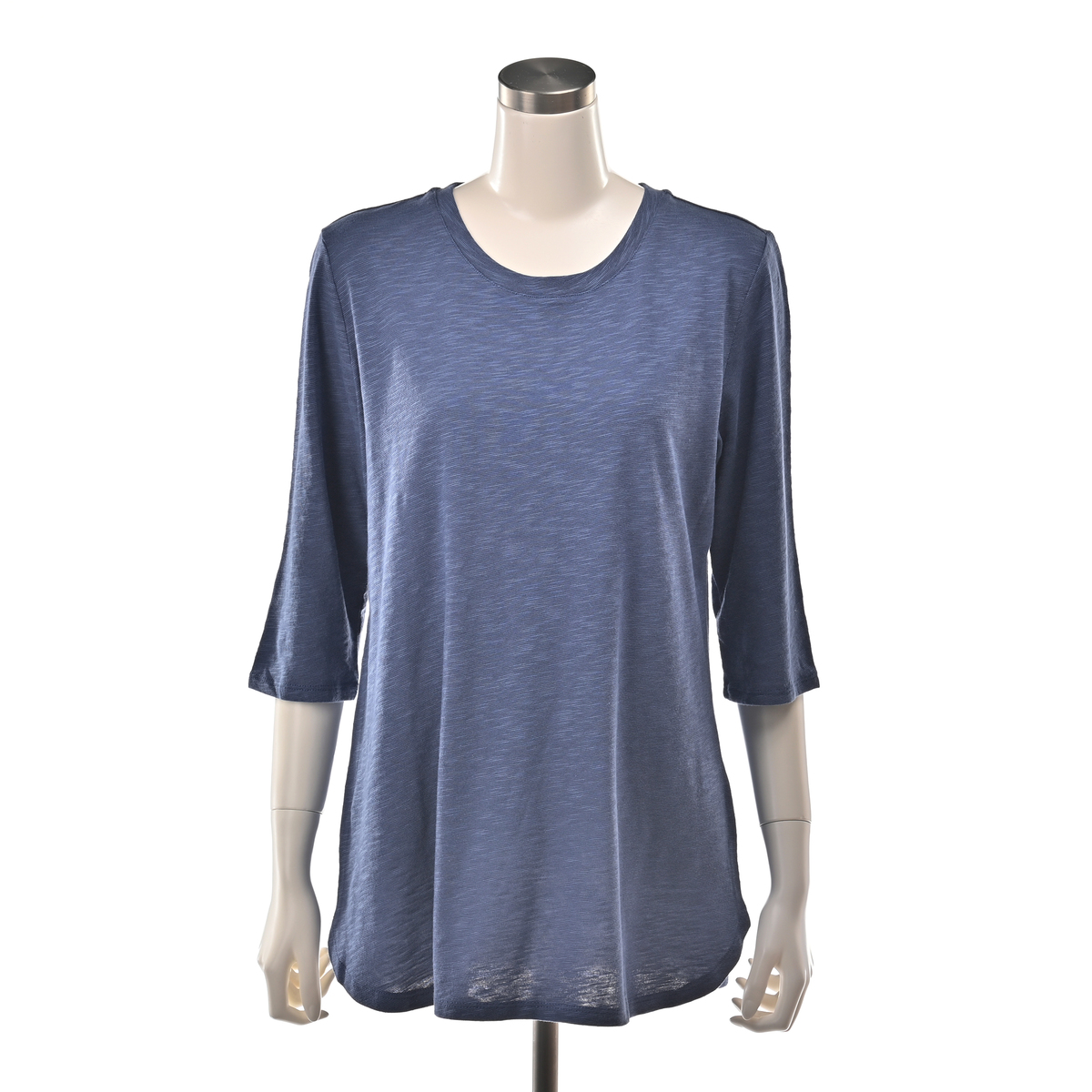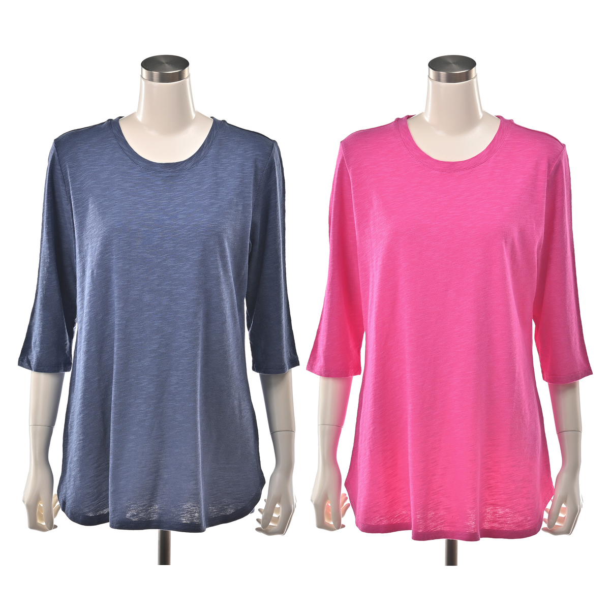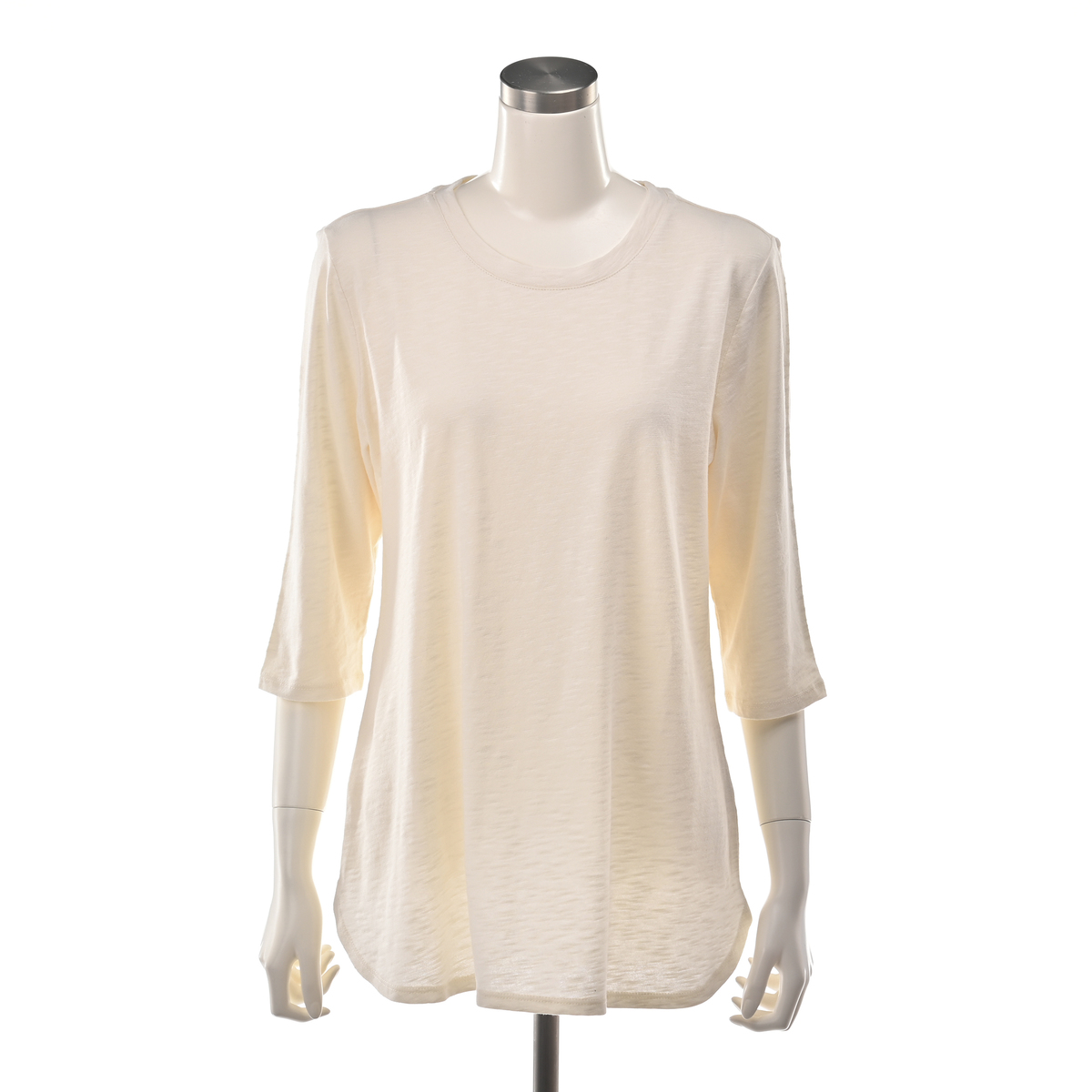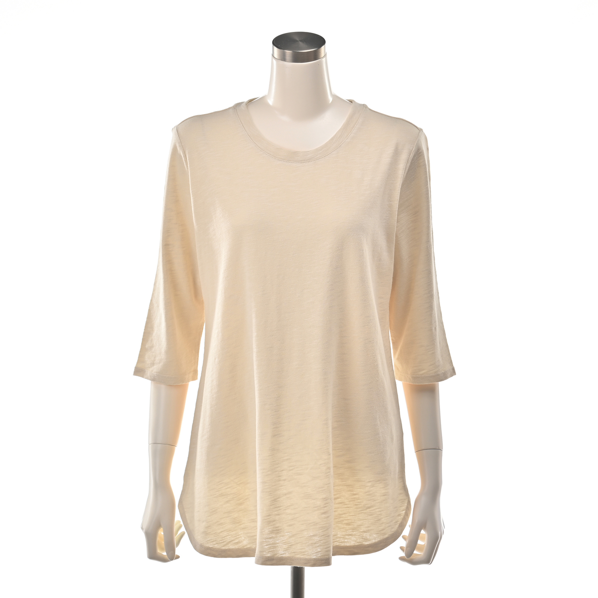No. 748764 Denim & Co 麻混5分袖丈プルオーバー2枚セット