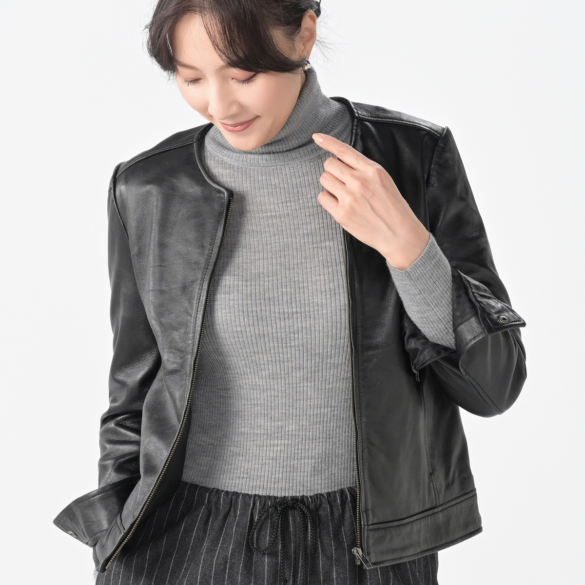 特別に選ばれた羊革を、時間をかけて丁寧に仕上げたジャケット。しっとりとした柔らかな手触りで、着るほどに風合いが増し、本革ならではの経年変化を楽しめます