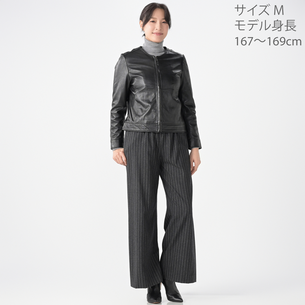 [商品寸法(ヌード)cm] サイズ バスト 着丈 肩幅 M: 97(79〜87) 52 39 L: 103(86〜94) 53.5 41 LL: 109(93〜101) 55 42 サイズ 袖丈 M: 58 L: 59 LL: 59.5 [素材] 表地:羊革 裏地:ポリエステル100% [お手入れ] 専門店にて [注意事項] ※商品寸法の誤差は多少発生します。ご了承下さい ※この商品は本皮革製品です ※クリーニングの際は革専門店へご相談ください ※雨雪に当たり、濡れたままにしておくと、その部分がシミや変色、色落ちすることがあるので注意してください ※重ね置きをしないで、温度及び湿度が低く、かつ風通しの良いところに保存してください。特に梅雨時期には陰干しを行ってください ※革の汚れを落とす場合は、革製衣料専用クリーナーを用い、目立たない個所で試してから行ってください ※色あせや変色することがあります。光の当たらない場所に保管してください。長時間直射日光の当たる所に置かないでください ※アイロンは使用しないでください ※過度な摩擦(特に湿った状態での摩擦)等により、他のものに色移りすることがありますのでご注意ください ※使用素材の特性上、多少色及び風合いの誤差が生じることがあります 【パキスタン製】