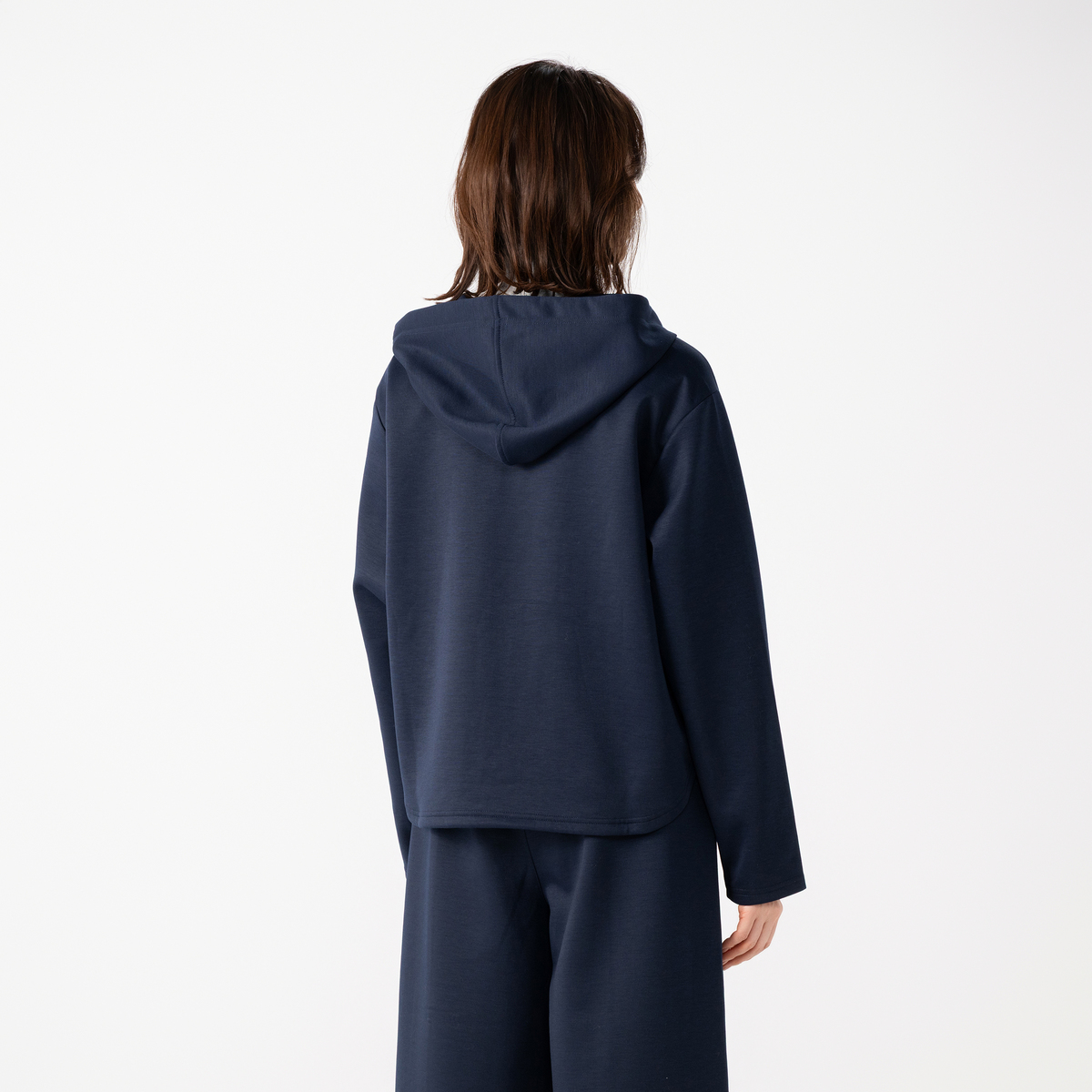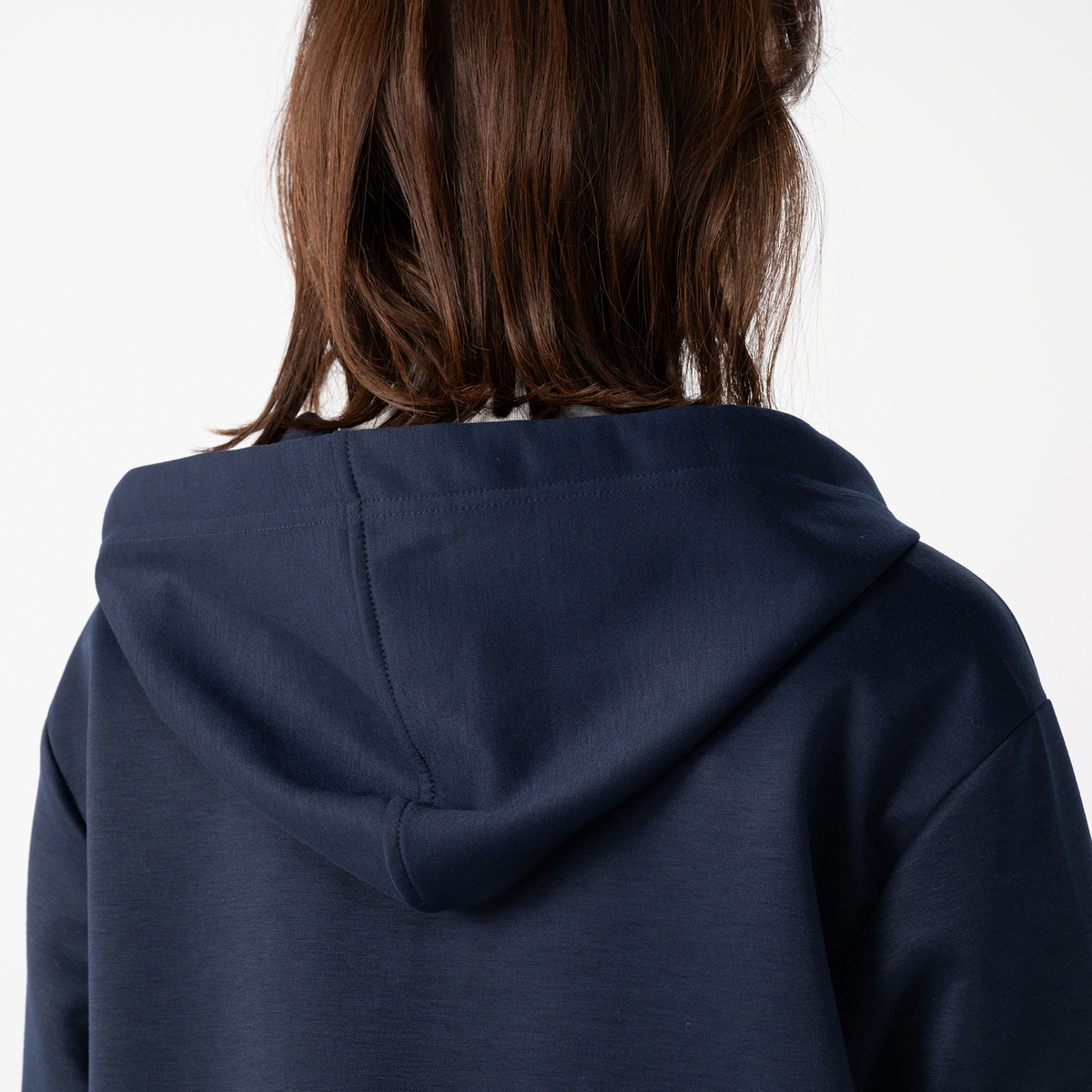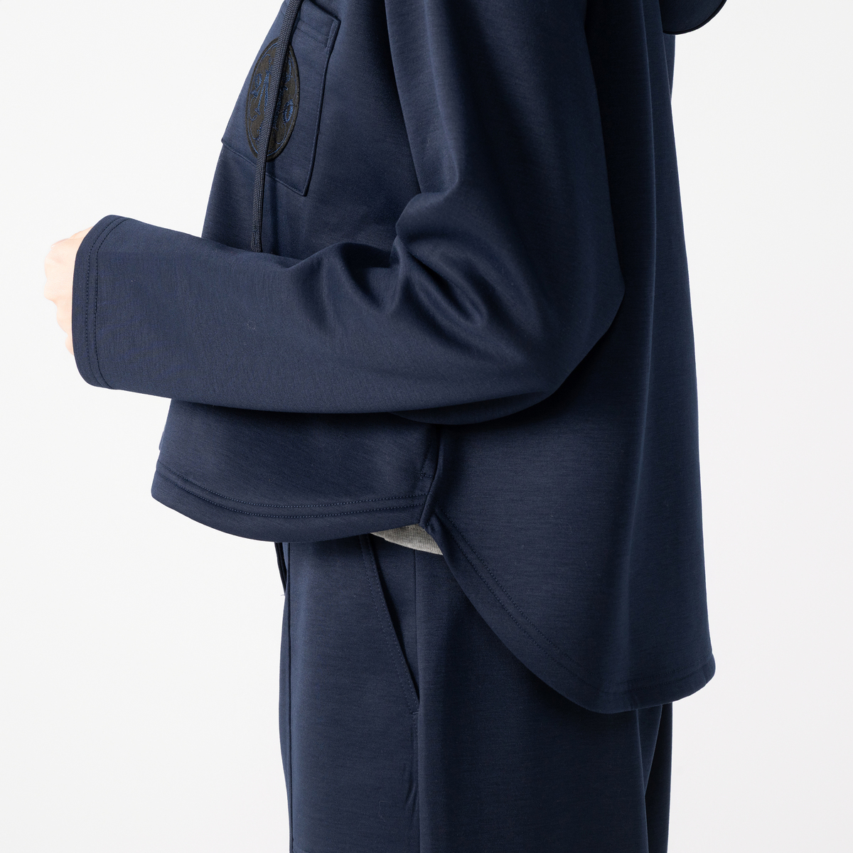 ワイド感のあるフォルムが印象的な、ハイゲージダンボールニットのフーディージャケットです。裾のラインにもこだわり、着るだけでスタイリッシュな雰囲気を演出します