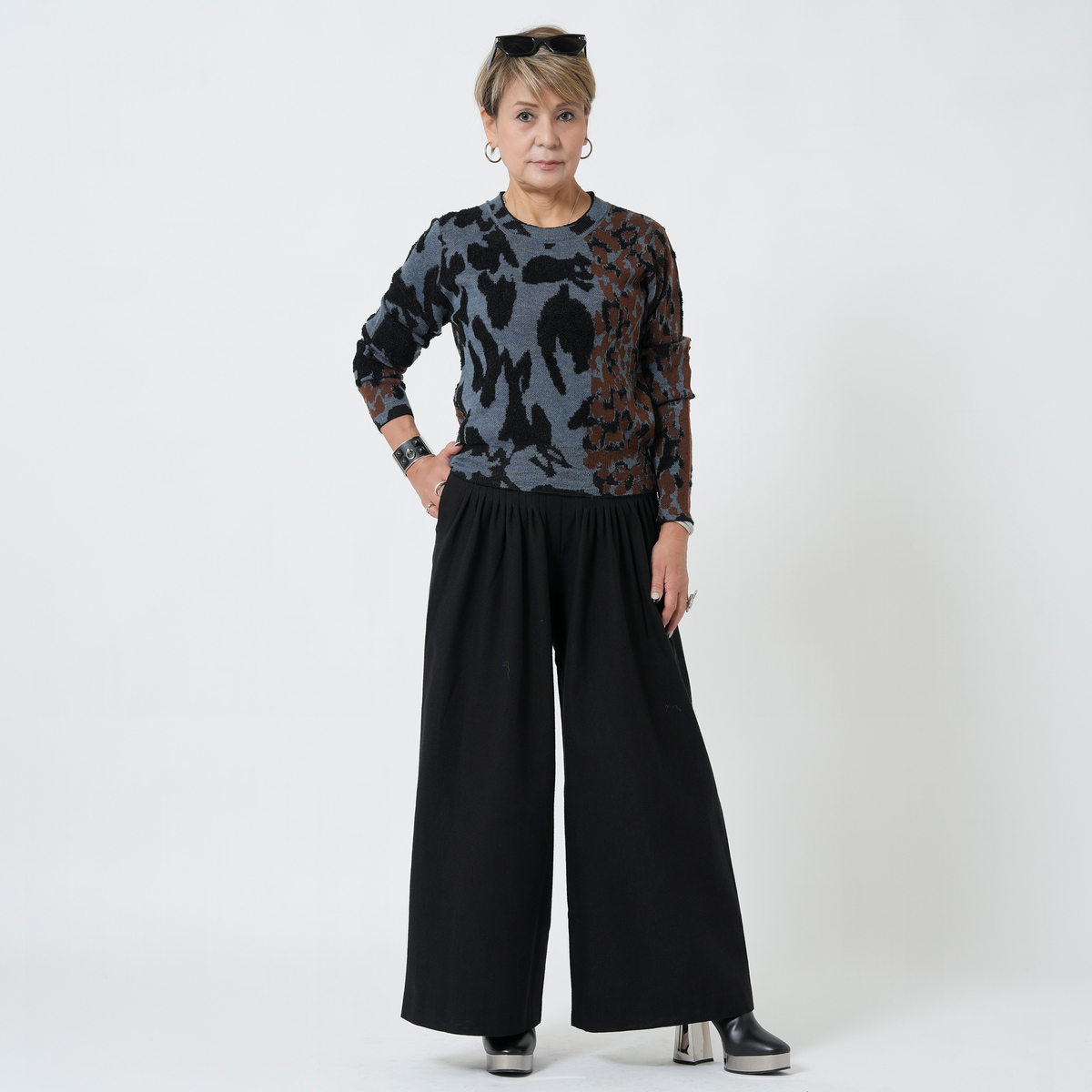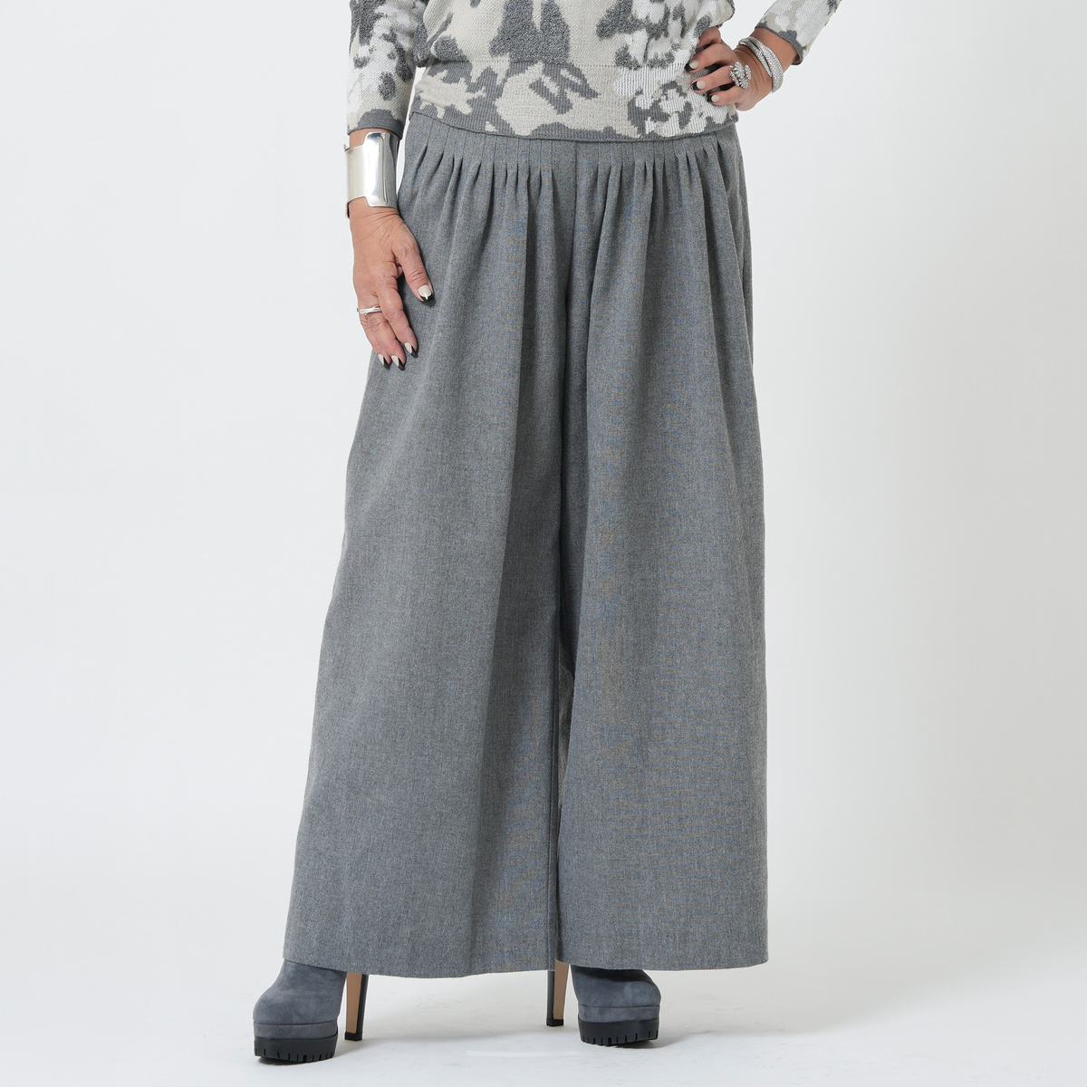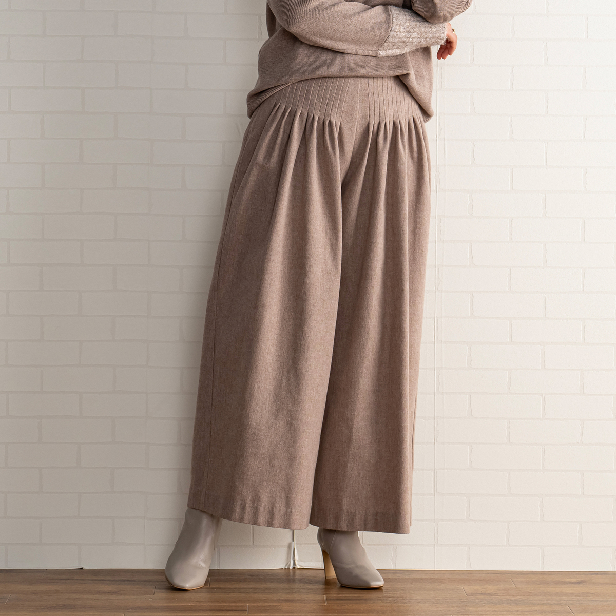 No. 748822 MASAGO 先染め素材の26本タックワイドパンツ