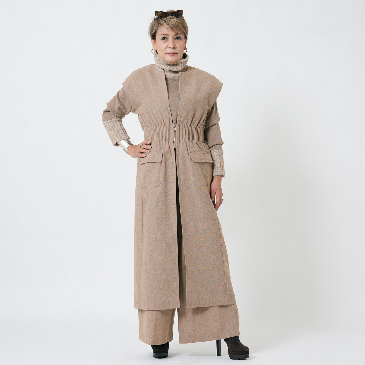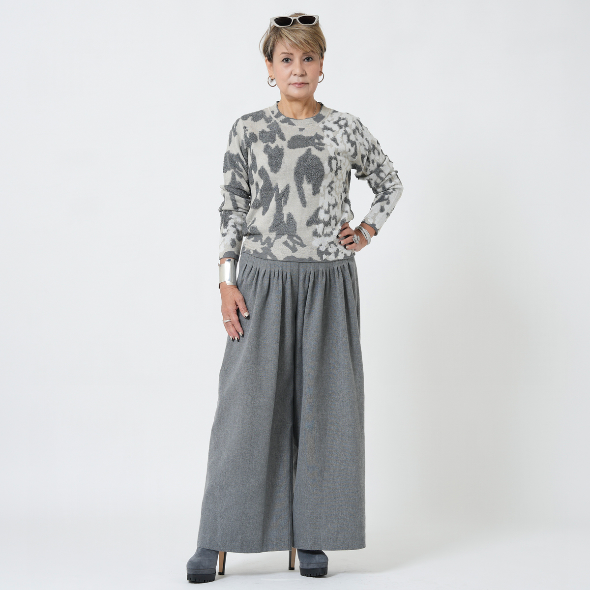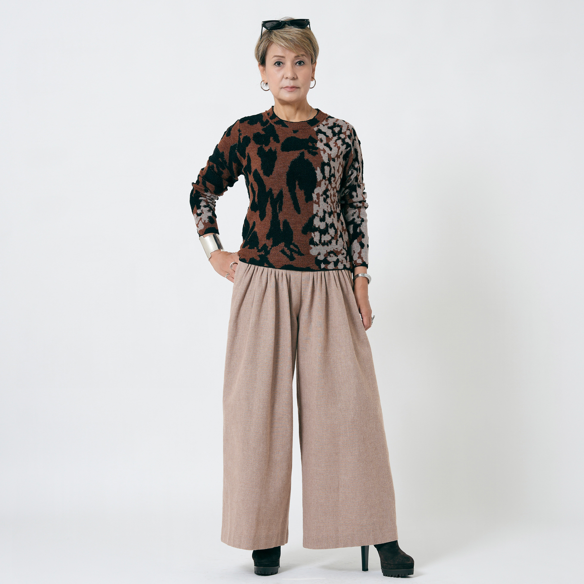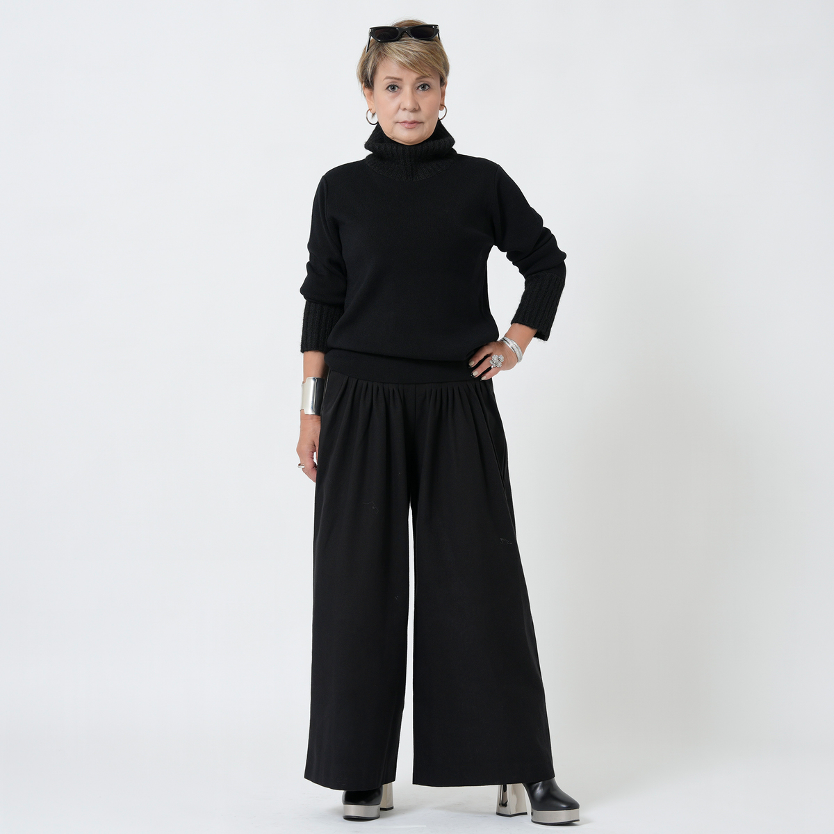 MASAGOさんのお洋服はたくさん持っていて、今回も何点も購入しましたが、今回購入の中で、153センチ身長の私にタックがたくさん入ったこちらのパンツ、大丈夫かなーと思ってました。が、大正解、厚底スニーカーで合わせれば、丈もちょうどよかったし、タックのおかげで、お腹周りもスッキリ。ふわっとしても太って見えない。かっこいい感じとこなれ感がでて大満足です。さっき到着して試着して、すぐにこちらを着用して外出してます。タックをたくさん入れるパンツはもう作れないかもとマサゴさんがおっしゃってましたが、これは定番で作って欲しいパンツです。色違い買えばよかったです。いつも手にして思いますが、高級感が本当に素晴らしいです。素材もデザインも。また作るのは大変でしょうけどかっこいいお洋服待ってます!