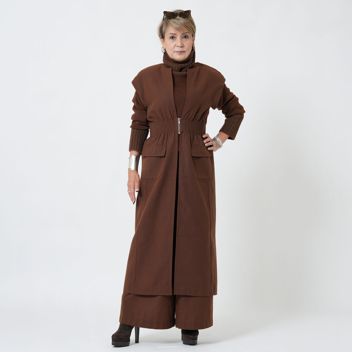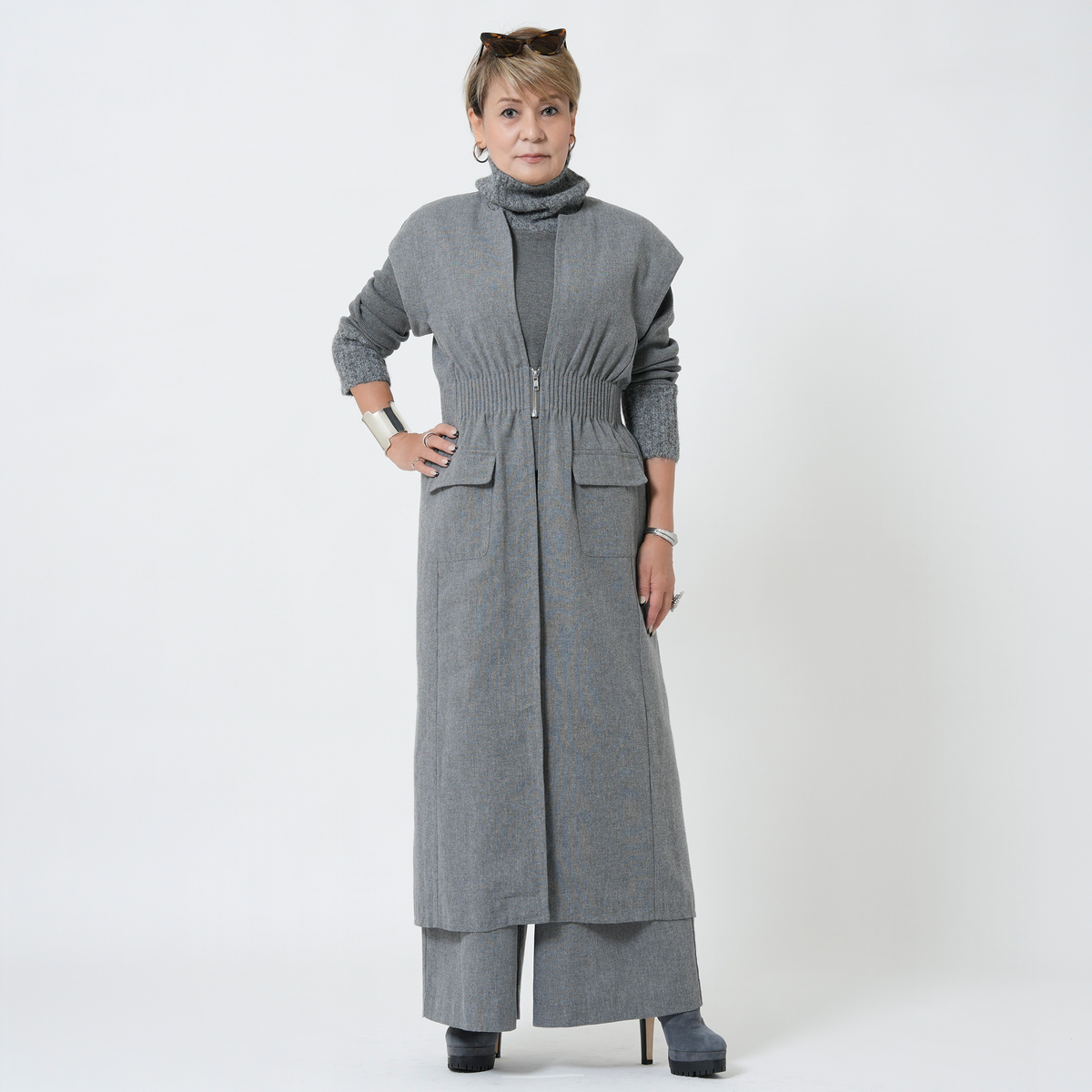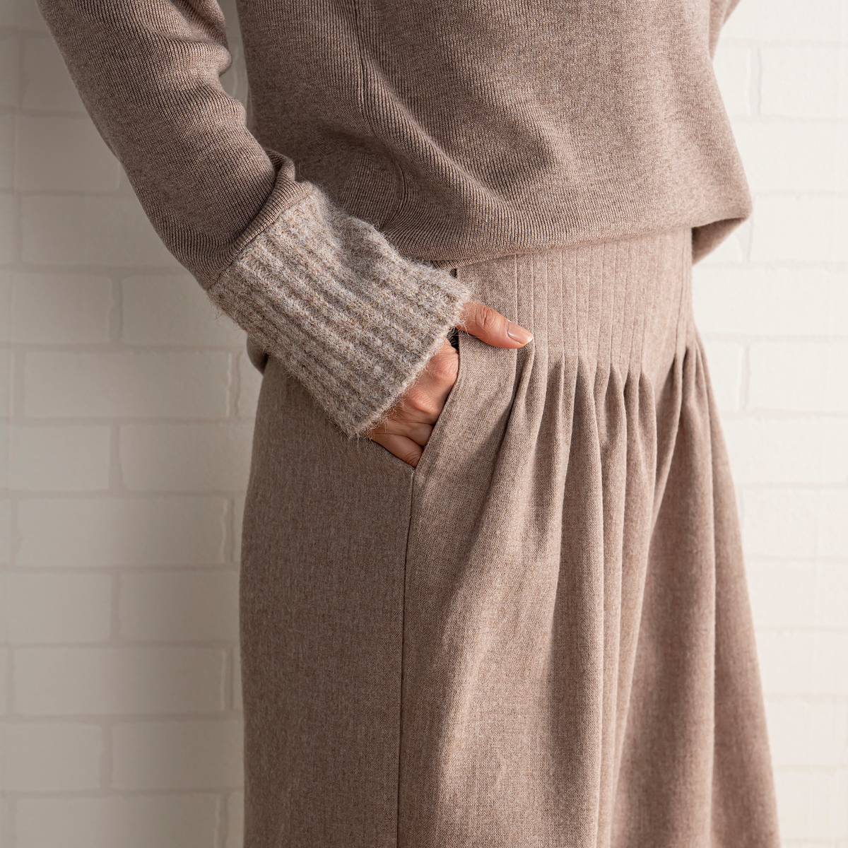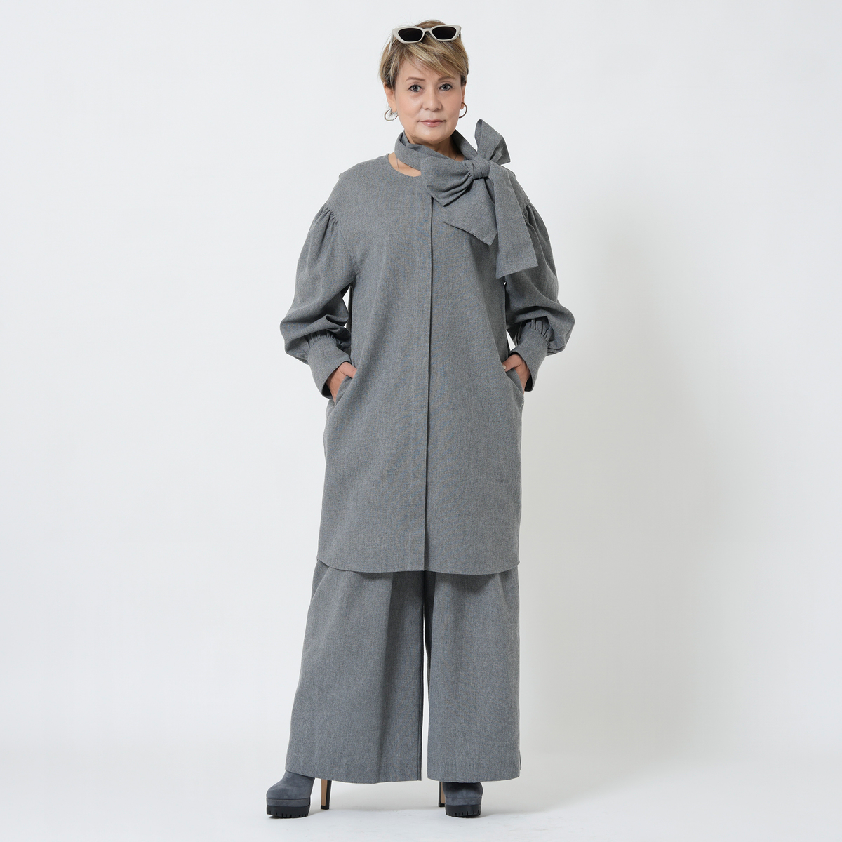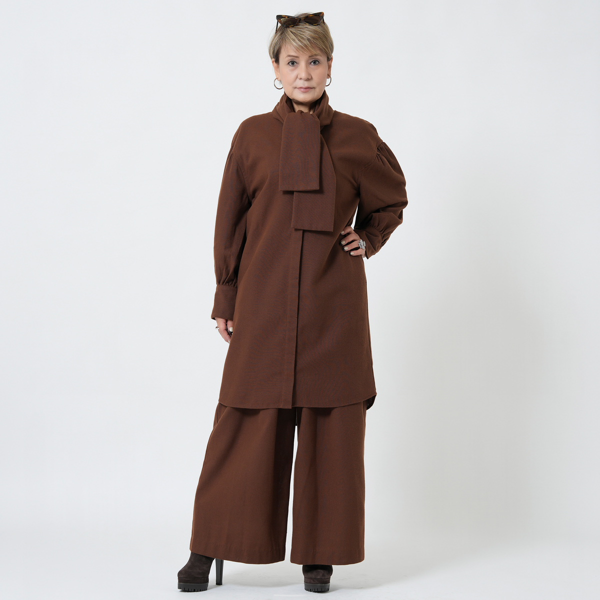 MASAGOさんのお洋服はたくさん持っていて、今回も何点も購入しましたが、今回購入の中で、153センチ身長の私にタックがたくさん入ったこちらのパンツ、大丈夫かなーと思ってました。が、大正解、厚底スニーカーで合わせれば、丈もちょうどよかったし、タックのおかげで、お腹周りもスッキリ。ふわっとしても太って見えない。かっこいい感じとこなれ感がでて大満足です。さっき到着して試着して、すぐにこちらを着用して外出してます。タックをたくさん入れるパンツはもう作れないかもとマサゴさんがおっしゃってましたが、これは定番で作って欲しいパンツです。色違い買えばよかったです。いつも手にして思いますが、高級感が本当に素晴らしいです。素材もデザインも。また作るのは大変でしょうけどかっこいいお洋服待ってます!