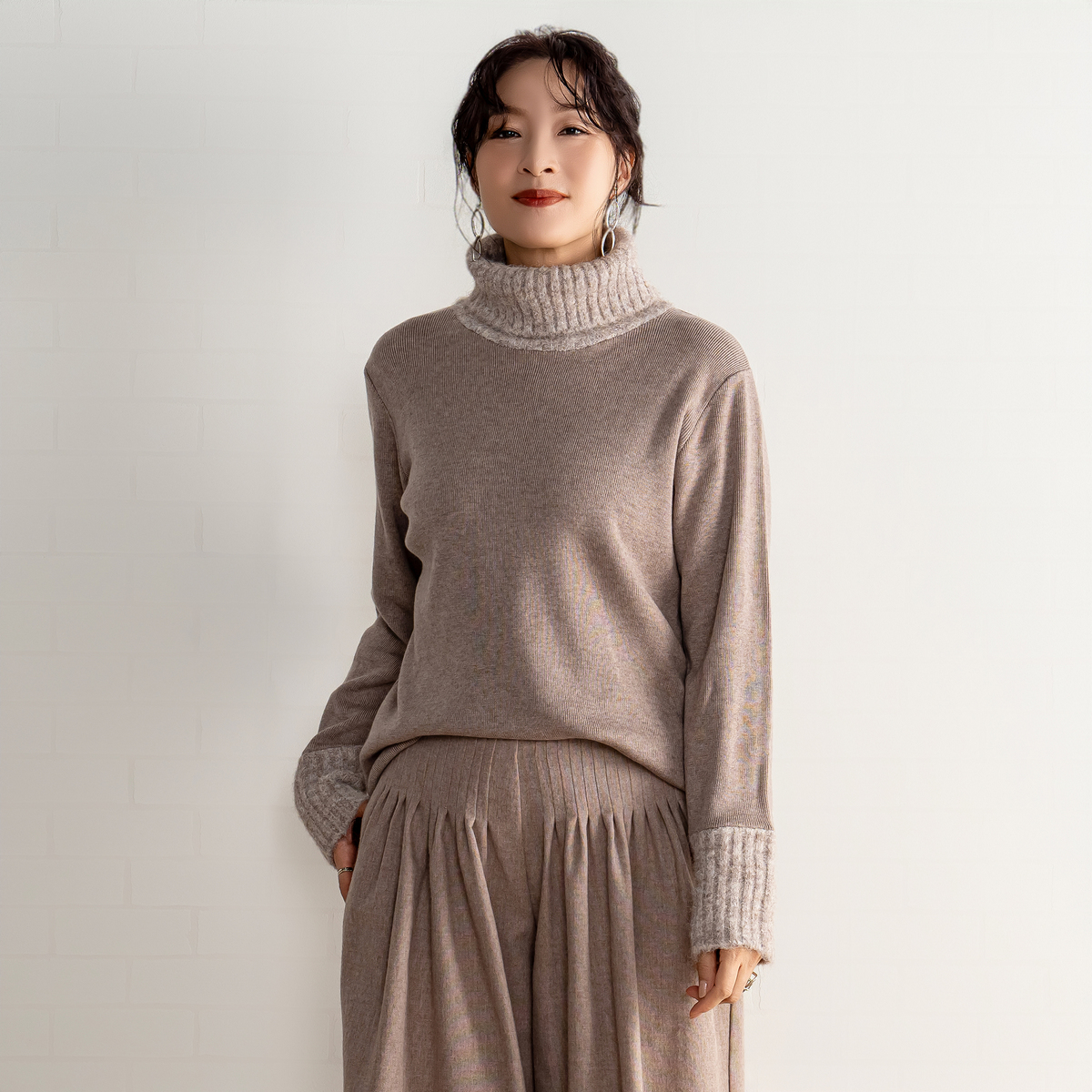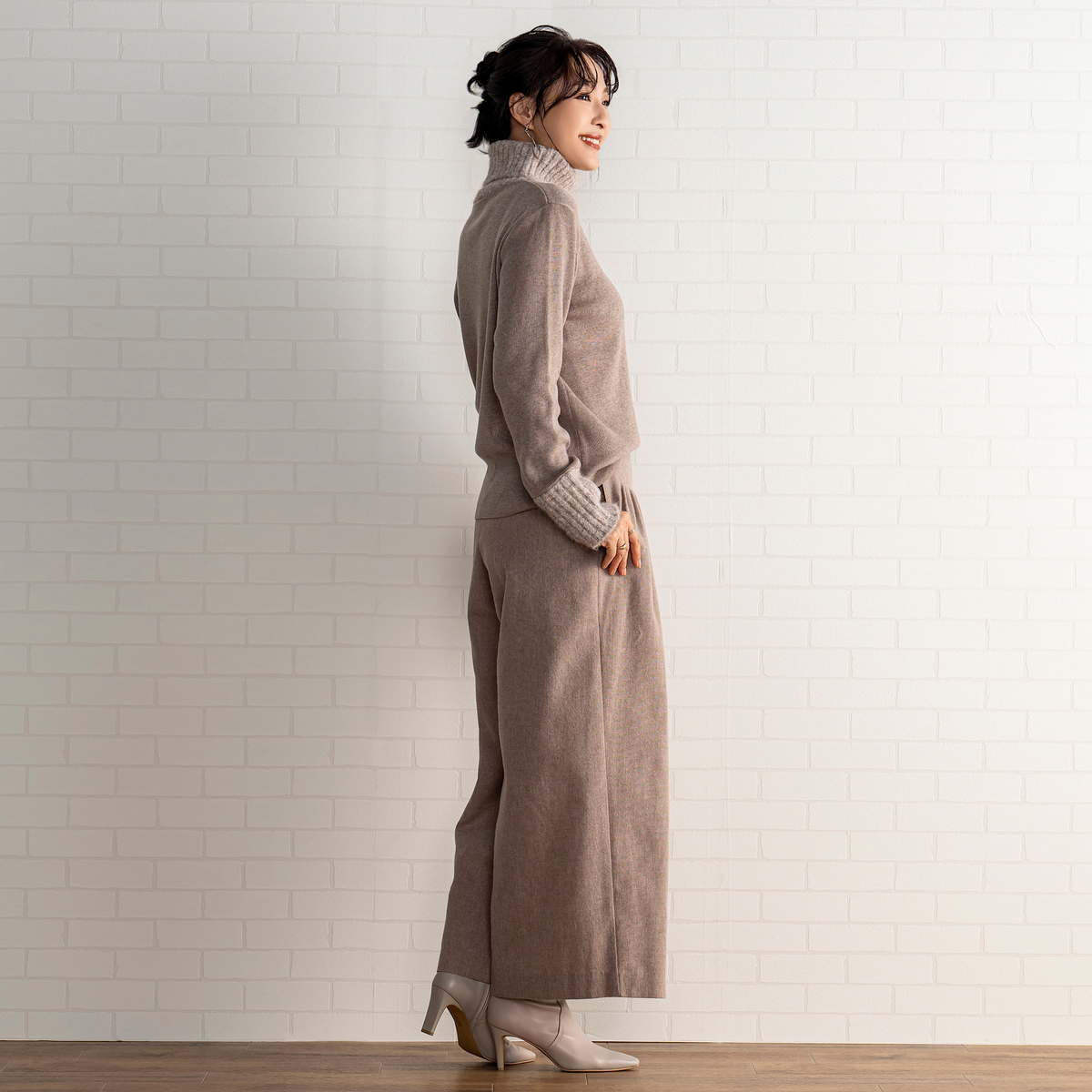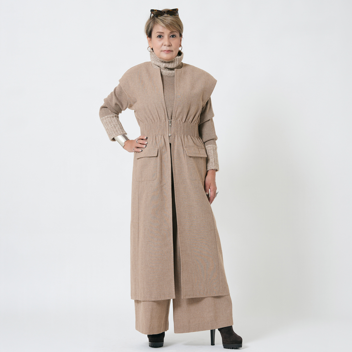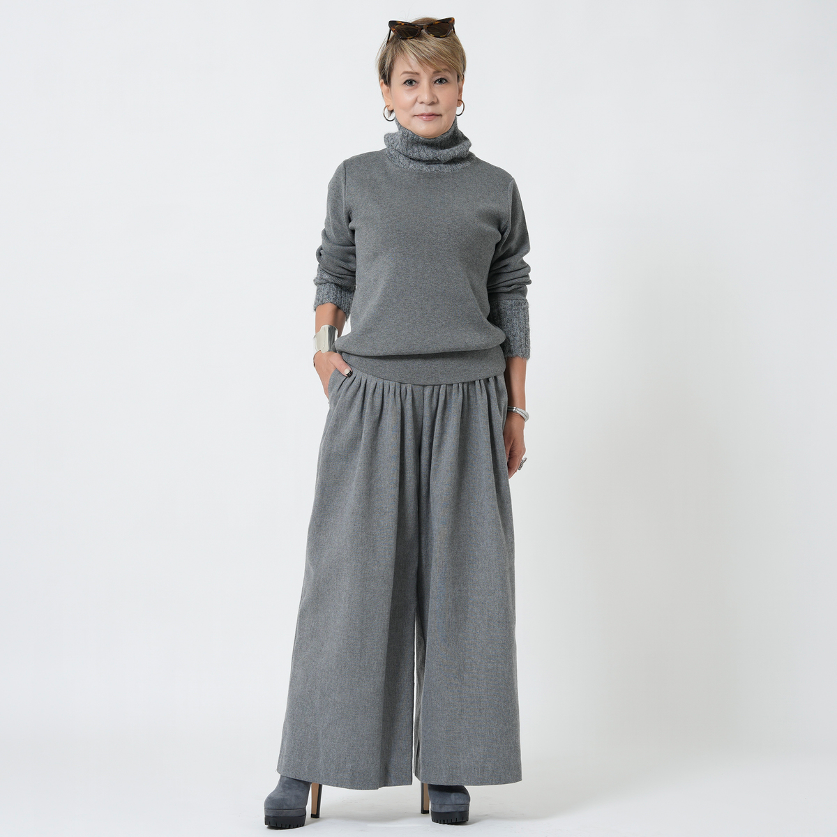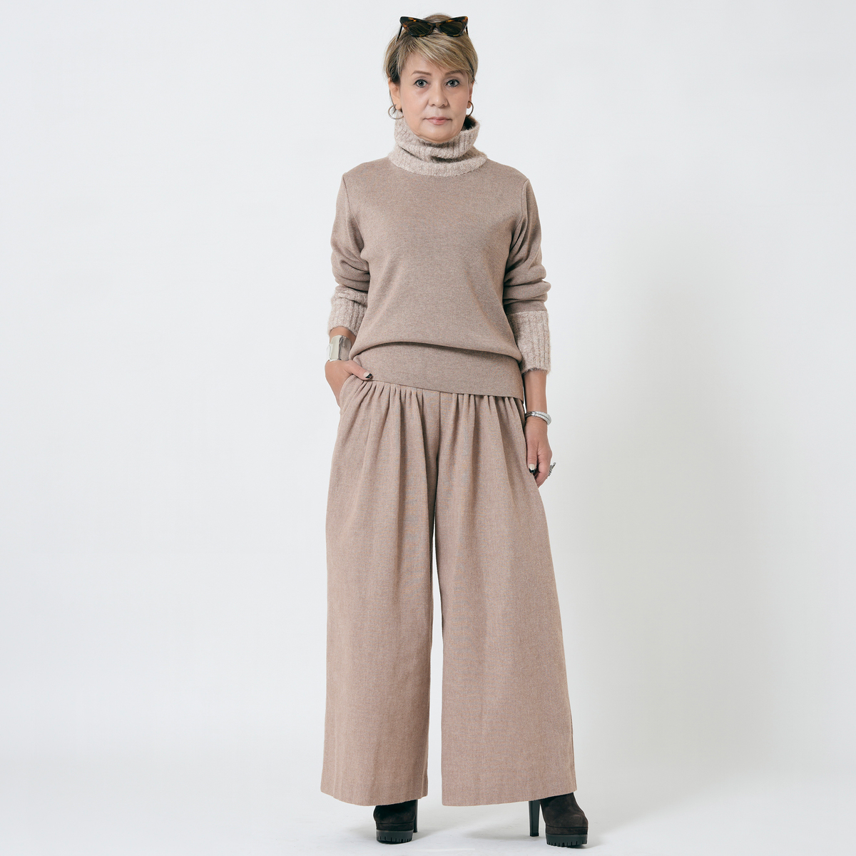 厚手なのに着膨れしない、暖かいニット!マサゴさんの妥協のないトータルコーディネート、これからも、楽しみです!!