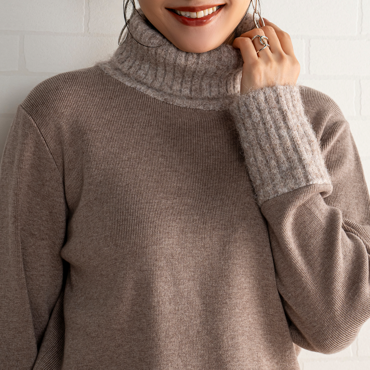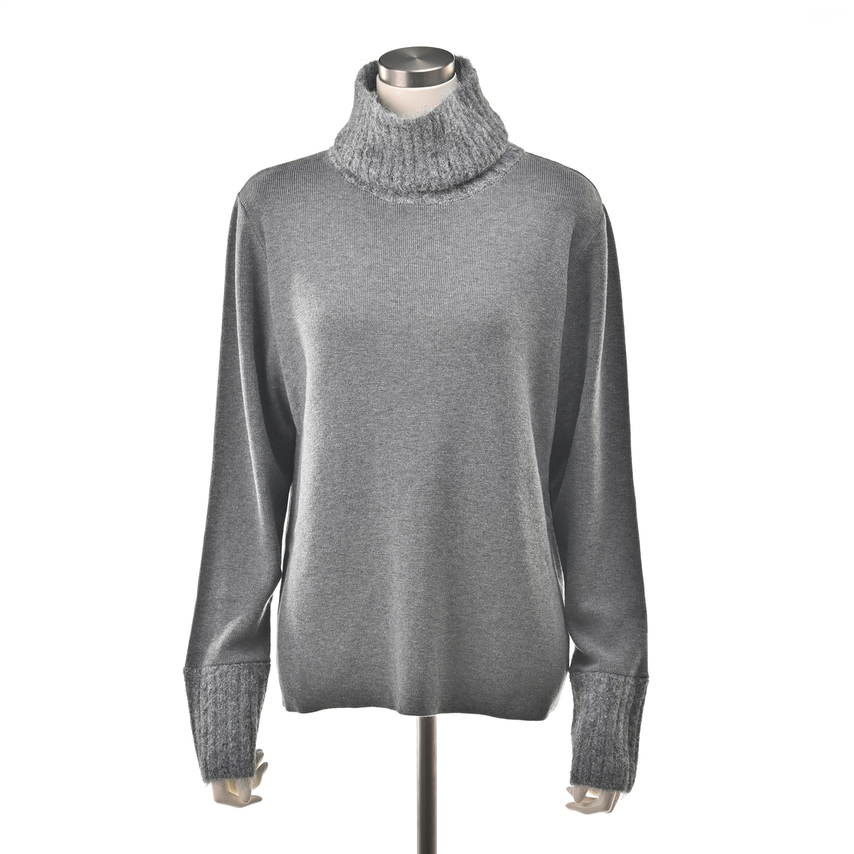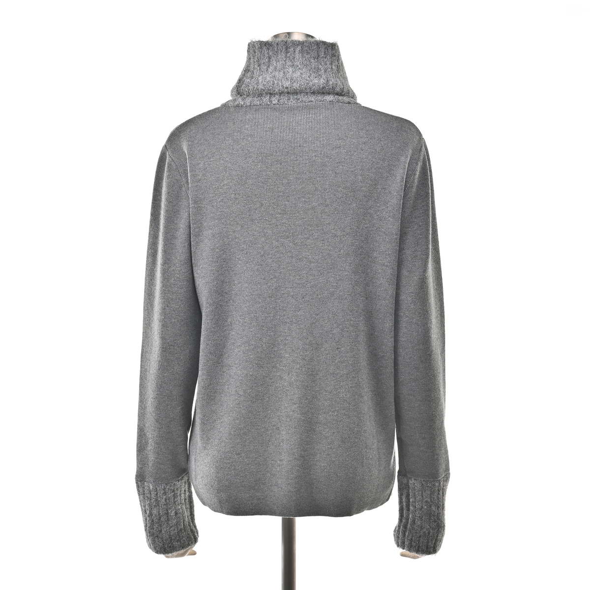 首と手首のエアリーな糸でふわっとあみたててあるのに、身ごろはスッキリしていて、ニットにありがちな着膨れ感がありません。よく考えられているデザインと素材で洗練されています。お気に入りです。