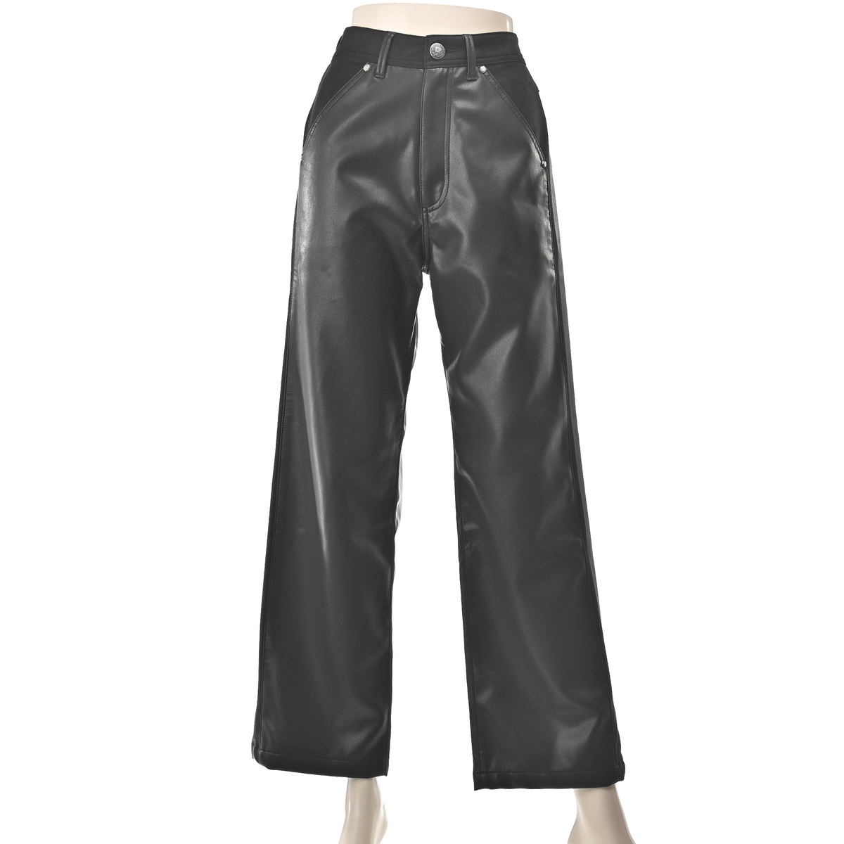 No. 748836 PCD フェイクレザーのモダンセミワイドパンツ