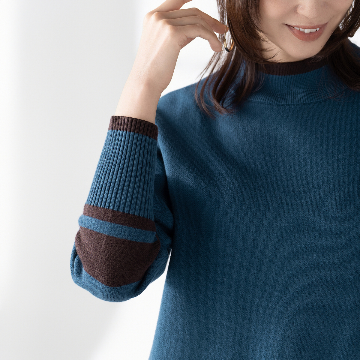 ブルー系を購入。チクチクしないスッキリしたデザインのニットです。お友達にも褒められました。ところが1回の洗濯後、乾いてみるとシワの様な染むらが見える。裾のリブが波々にウェーブが!ガッカリです。