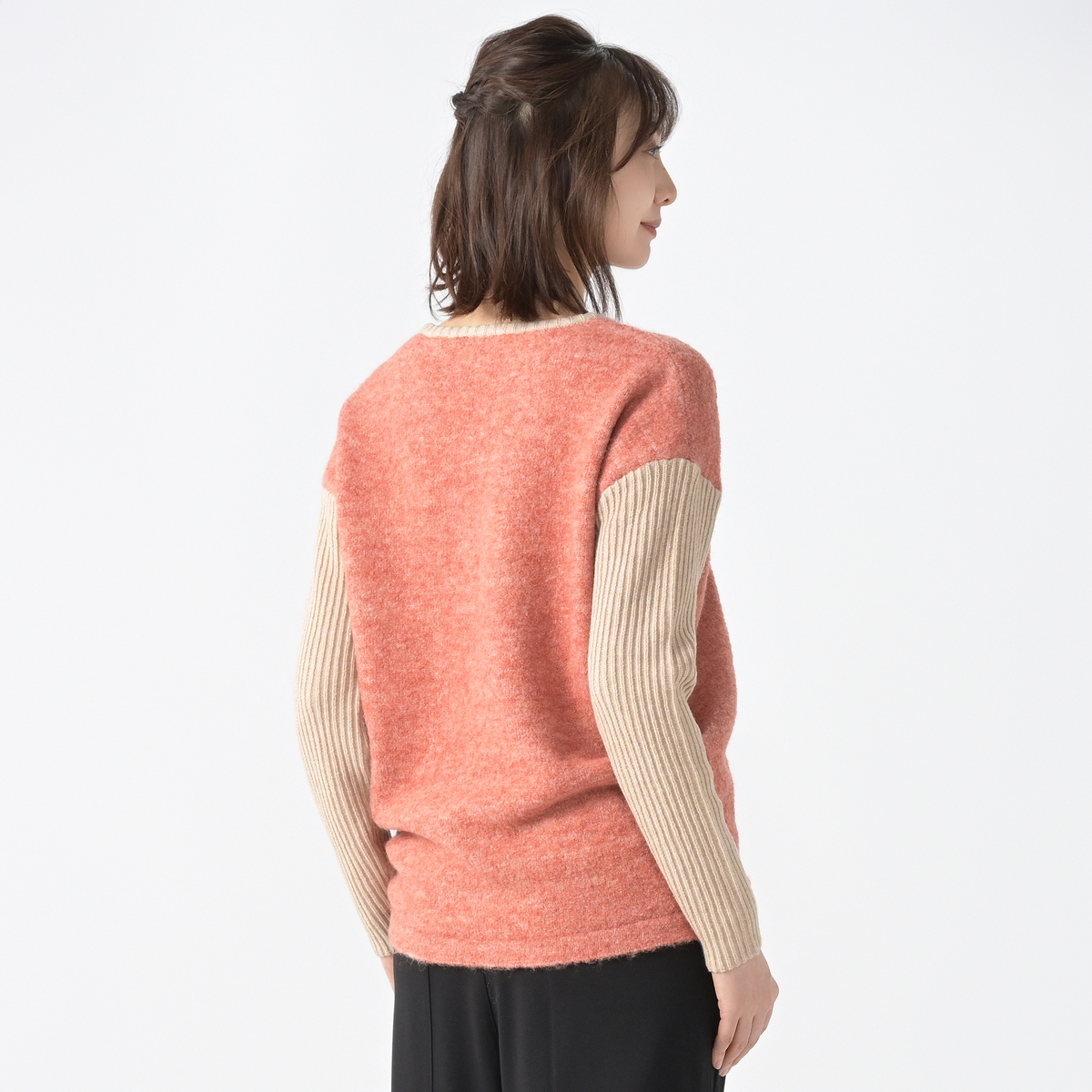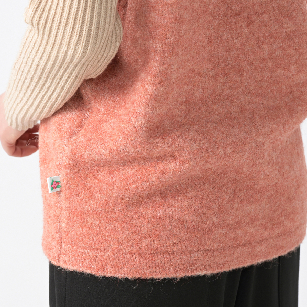 ブークレもかわいい、袖のリブもピタピタにならずとてもかわいいのですが、お腹部分がピタっとして、嫌かなぁと思いました。首も開きすぎて寒い。 カワイさんのニットは本当に暖かくていいのですが。