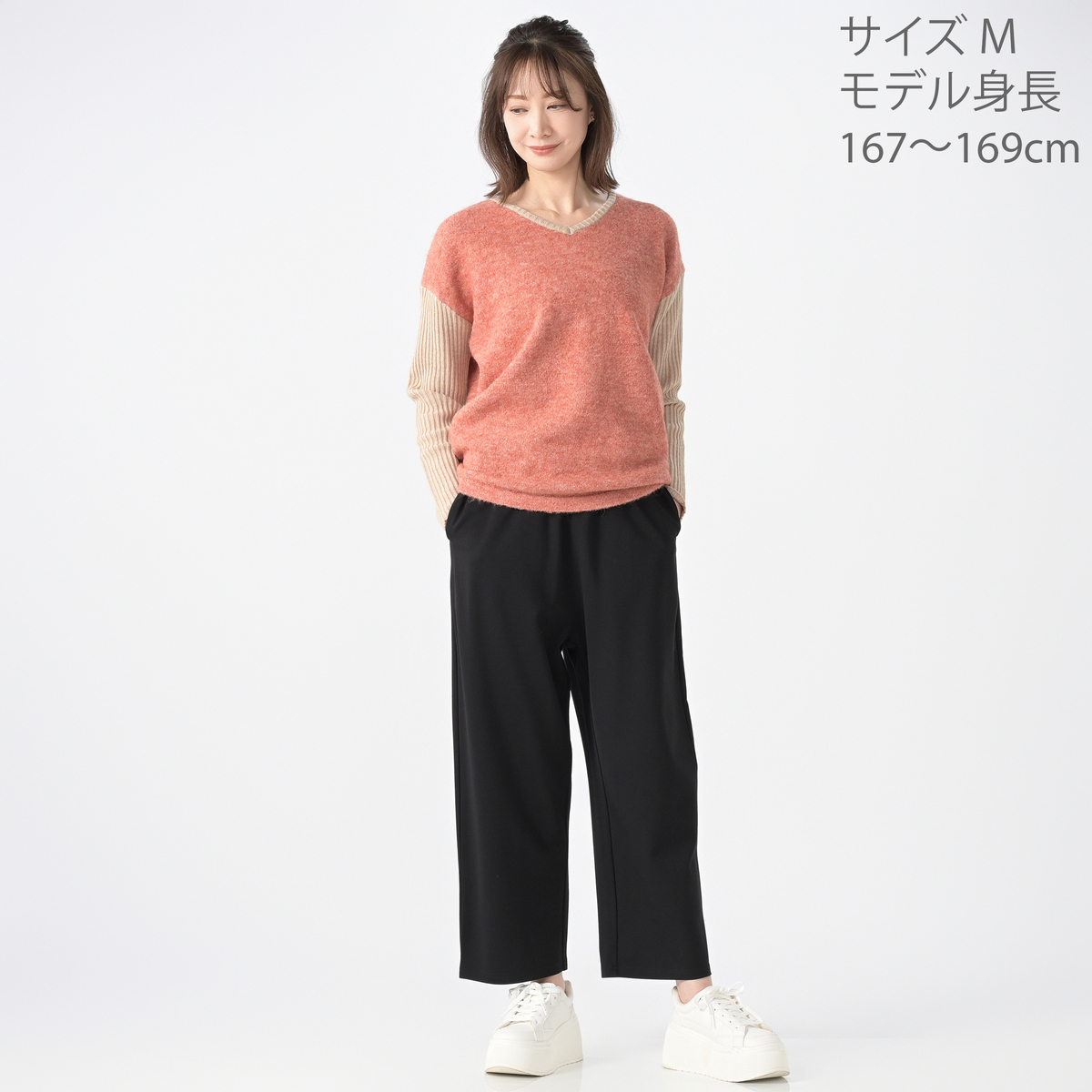 [商品寸法(ヌード)cm] サイズ バスト 着丈 M : 110(81〜89) 59.5 L : 116(88〜96) 60.5 LL : 122(95〜103) 61.5 3L : 130(102〜110) 62.5 サイズ 裄丈 M : 73.5 L : 75 LL : 76.5 3L : 78 [素材] ポリエステル 38%、アクリル 34%、ナイロン 17%、レーヨン 5%、毛 5%、ポリウレタン 1% [お手入れ] 手洗い可 [注意事項] ※商品寸法の誤差は多少発生します。ご了承下さい ※洗濯後はすぐに脱水し、形を整えて干して下さい。長時間、水につけたままにしないで下さい ※デリケートな素材を使用していますので、爪やアクセサリーなどの引っ掛かりによりキズがつきやすくなっております。縫目や生地を強く引っ張らないよう注意して下さい ※素材の特性上、着用や洗濯・クリーニング時の摩擦により毛羽立ち、毛玉が発生します。その際はお早めに毛玉取り器等で手入れをして下さい 【中国製】