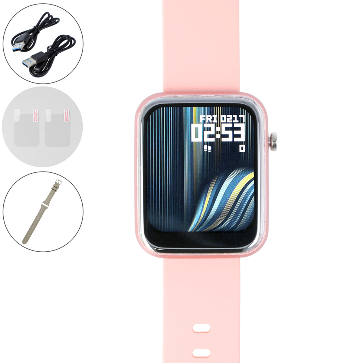 運動カウントや心拍測定、血中酸素測定(*1)、ストップウォッチなど、さまざまな機能を利用できるエアリアのスマートウォッチ。約1.69インチの大画面で文字が見やすく、操作しやすいのが特長。重さ約32gと軽い装着感で気軽に使えるモデルです(*2)