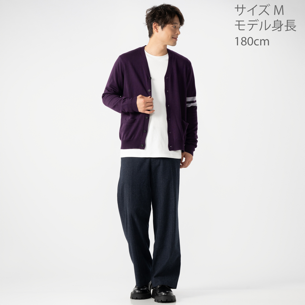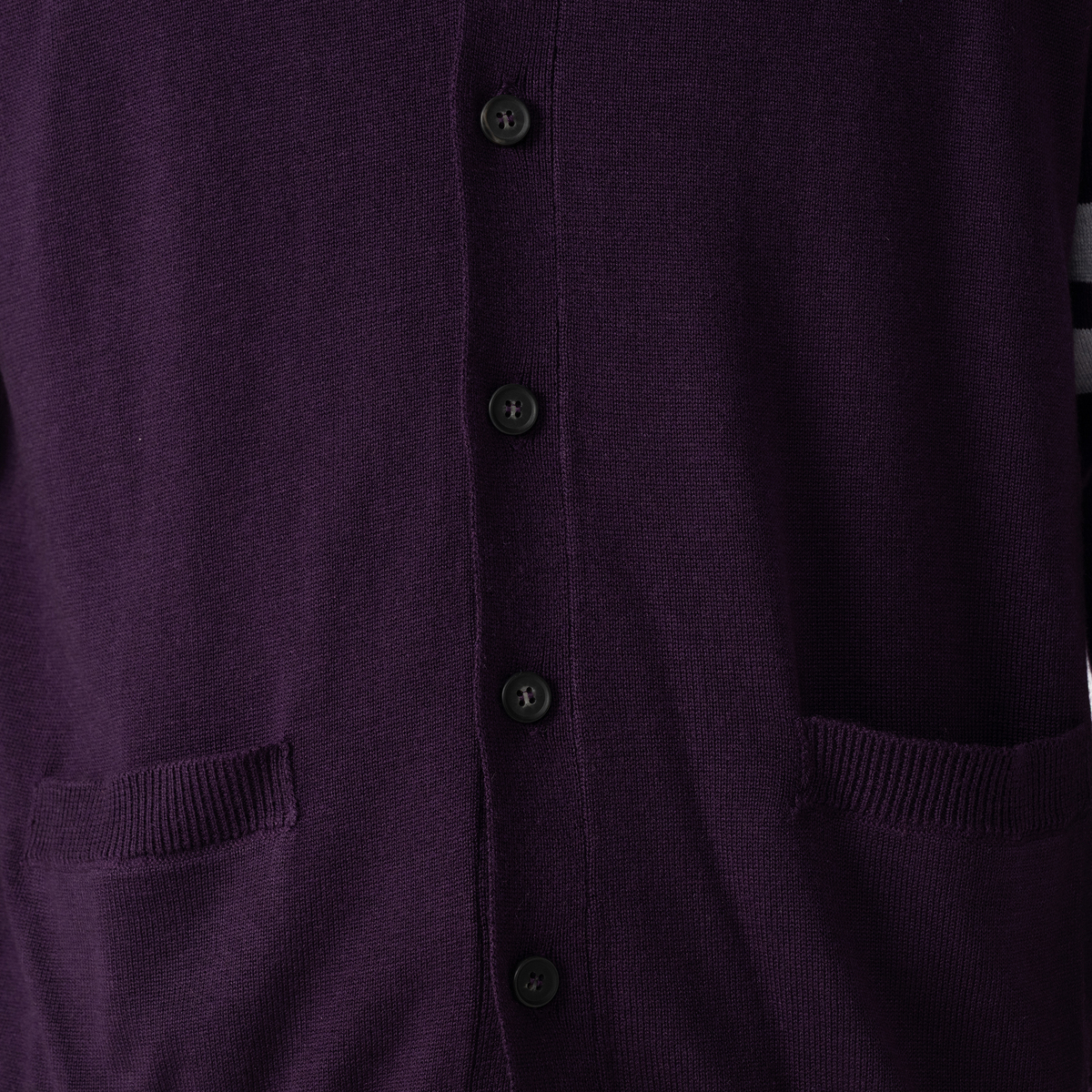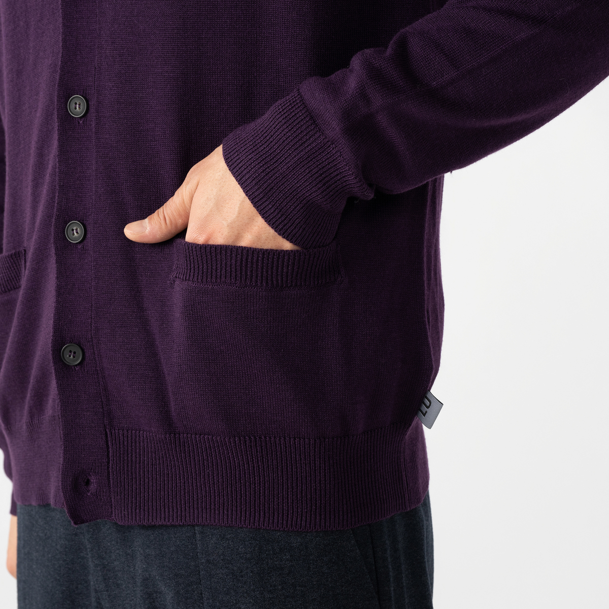黒を購入。40代が着用です。ボタンが少し上の方にまであり、それが良い感じです。キチンと感があるカーディガンだと思います。色を迷いましたが、袖のラインがあまり目立たないグレーが気に入り黒にしたところカジュアルさが抑えられている様に見え正解でした。袖も脇下部分がダボッとしていないのに詰くなく着られます。こちらのメーカーさんは初購入ですが今後も期待大です。