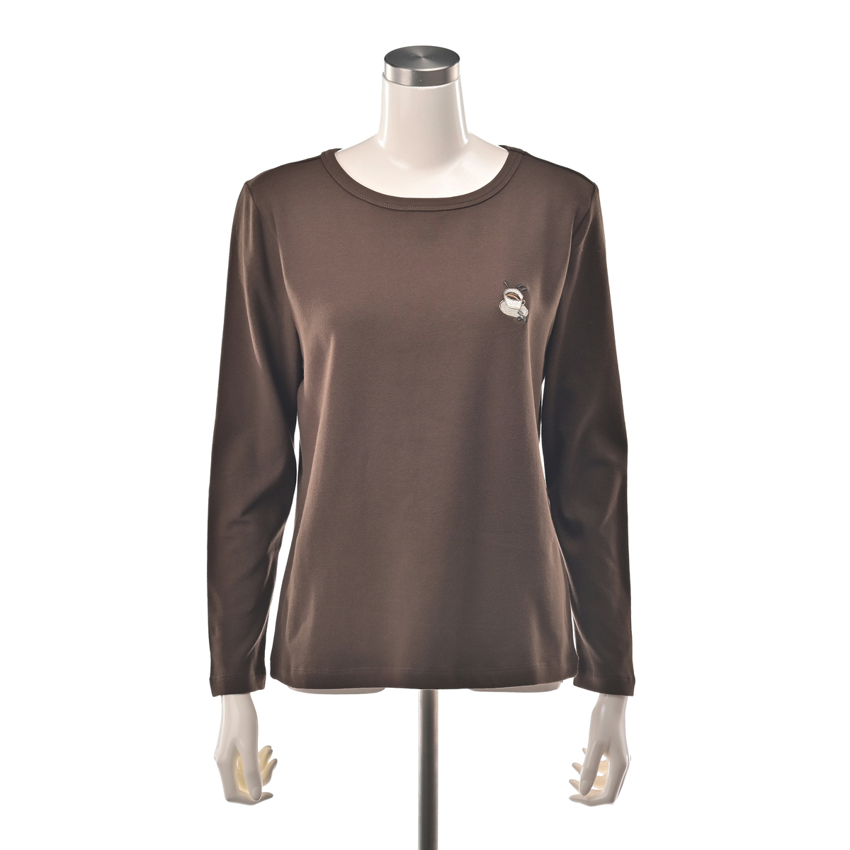 No. 748871 エニワイズやわらか裏微起毛の刺繍入りロングTシャツ