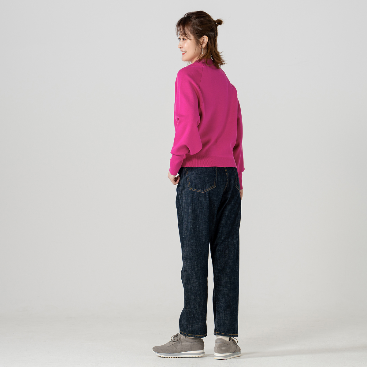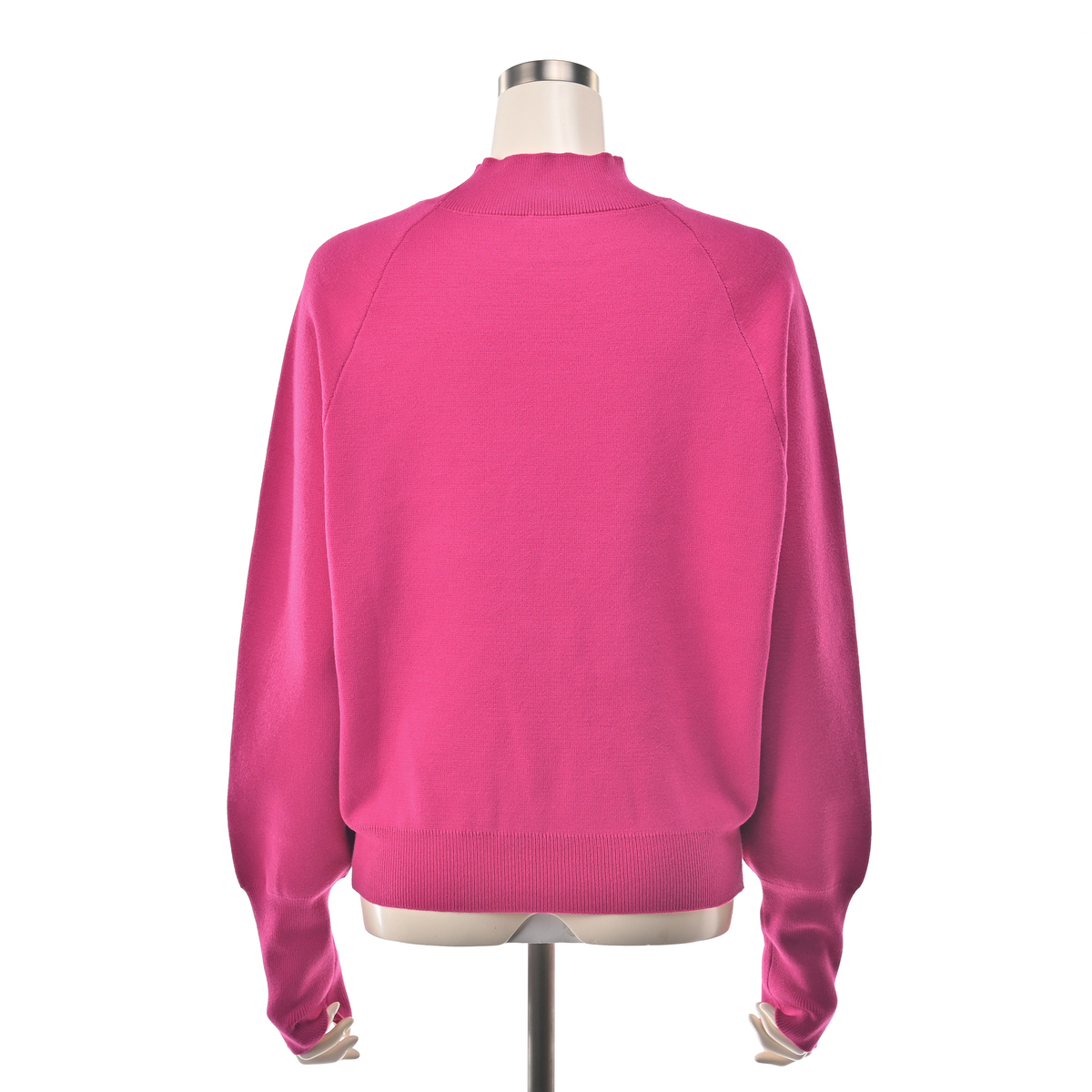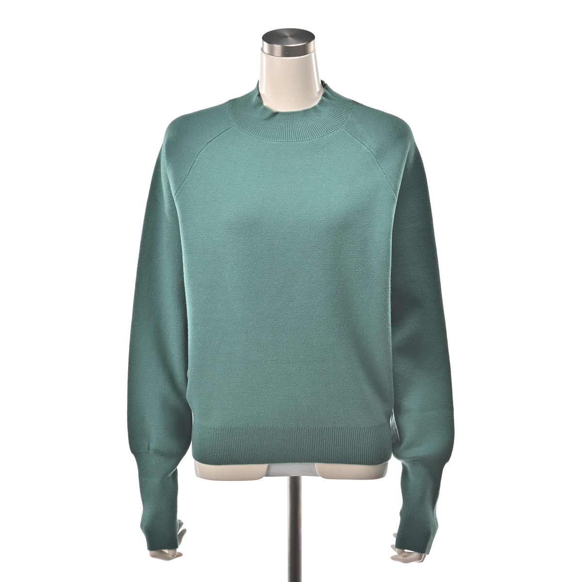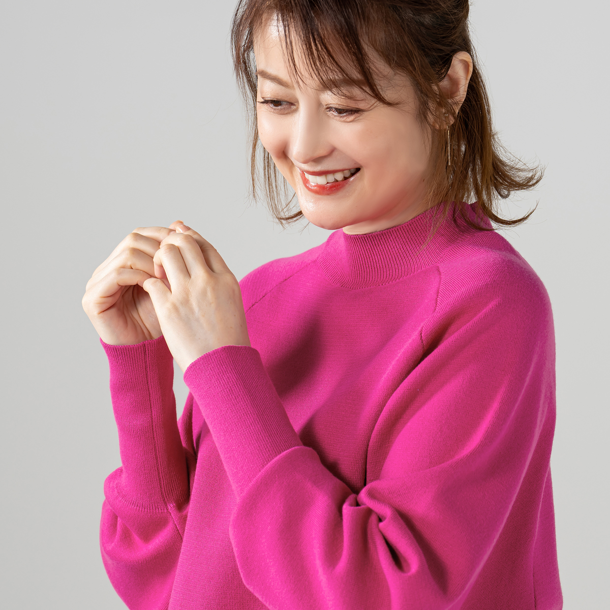 シンプルなボトルネックのニットプルオーバー。着回しやすいすっきりとしたデザインで、ご家庭で洗濯機洗い(洗濯ネット使用)できる扱いやすさも魅力のひとつです