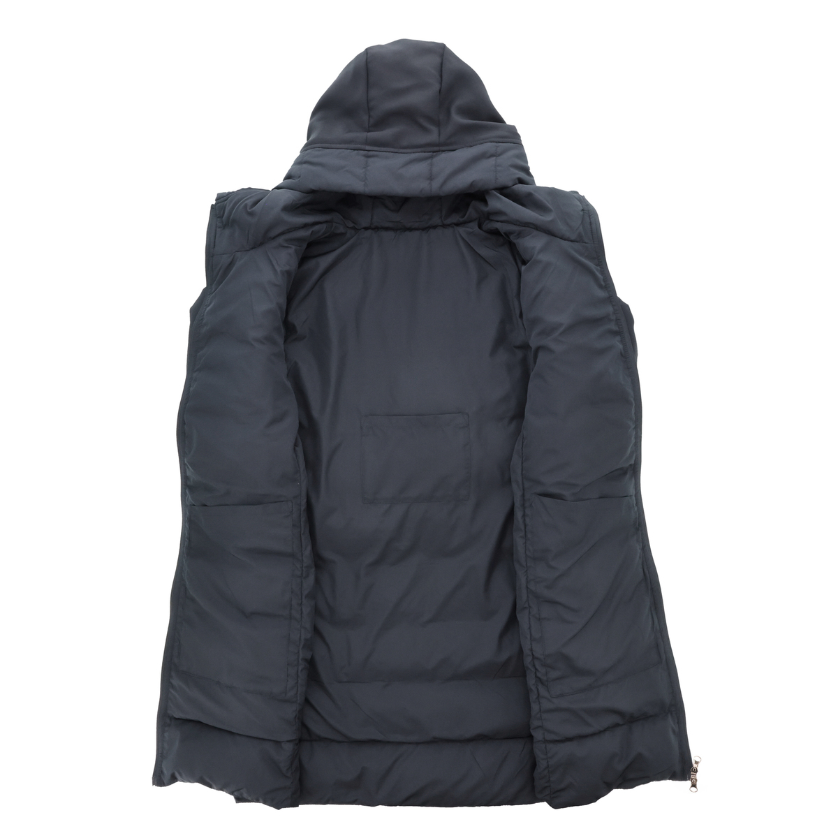 ネイビーをいただきました。上半分はダウンに見えないので、スッキリとした感じでステキです。ただ、ファスナーの一番上が硬いので、顎あたりにあたると痛いのがちょっと残念です。