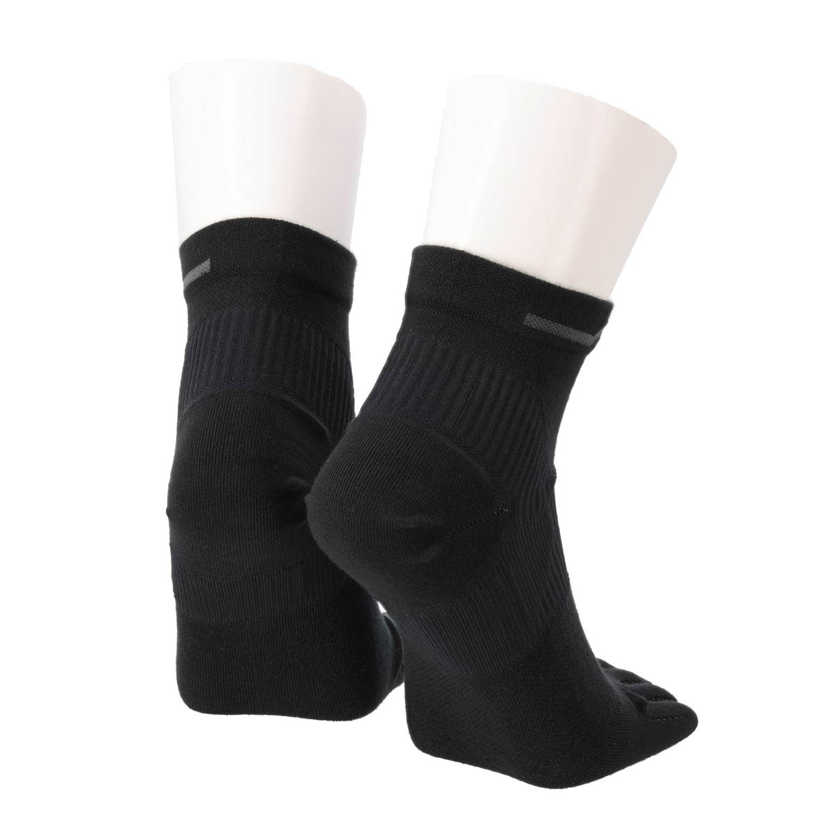 ソックスによる立方骨を意識したサポートで、おうち時間も歩くたびにアシトレ。地面を掴みやすい5本指タイプです。かかとホールドし、立方骨と踵骨前部をしっかりサポートします