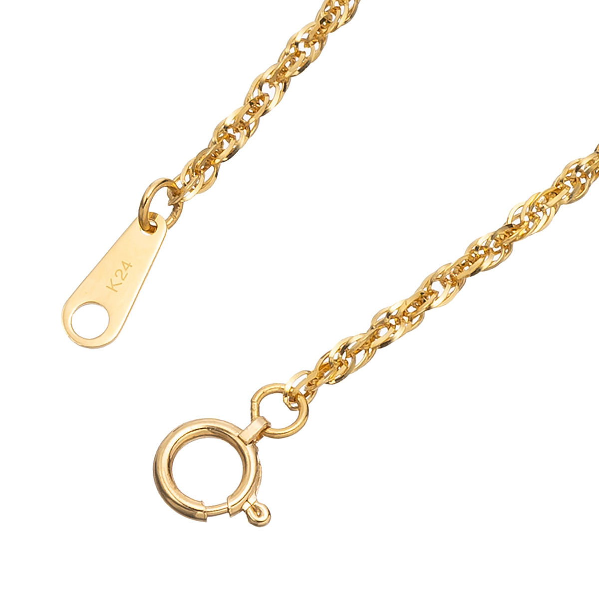 [地金]24Kゴールド 総重量(約) 7.7g 長さ(約) 80.0cm 幅(約) 1.8mm チェーンの形状 デザイン 留具の形状 引き輪 アジャスターの有無 無 留め具の受け側 最大幅×高さ 3.5×3.3mm ■受注発注商品のためデザイン・価値に影響のない範囲で仕様が変わる場合がございます ■素材の大きさ・形・色合い、製品のサイズは1点1点多少異なります 【本体・プレート:中国製、引き輪:日本製】