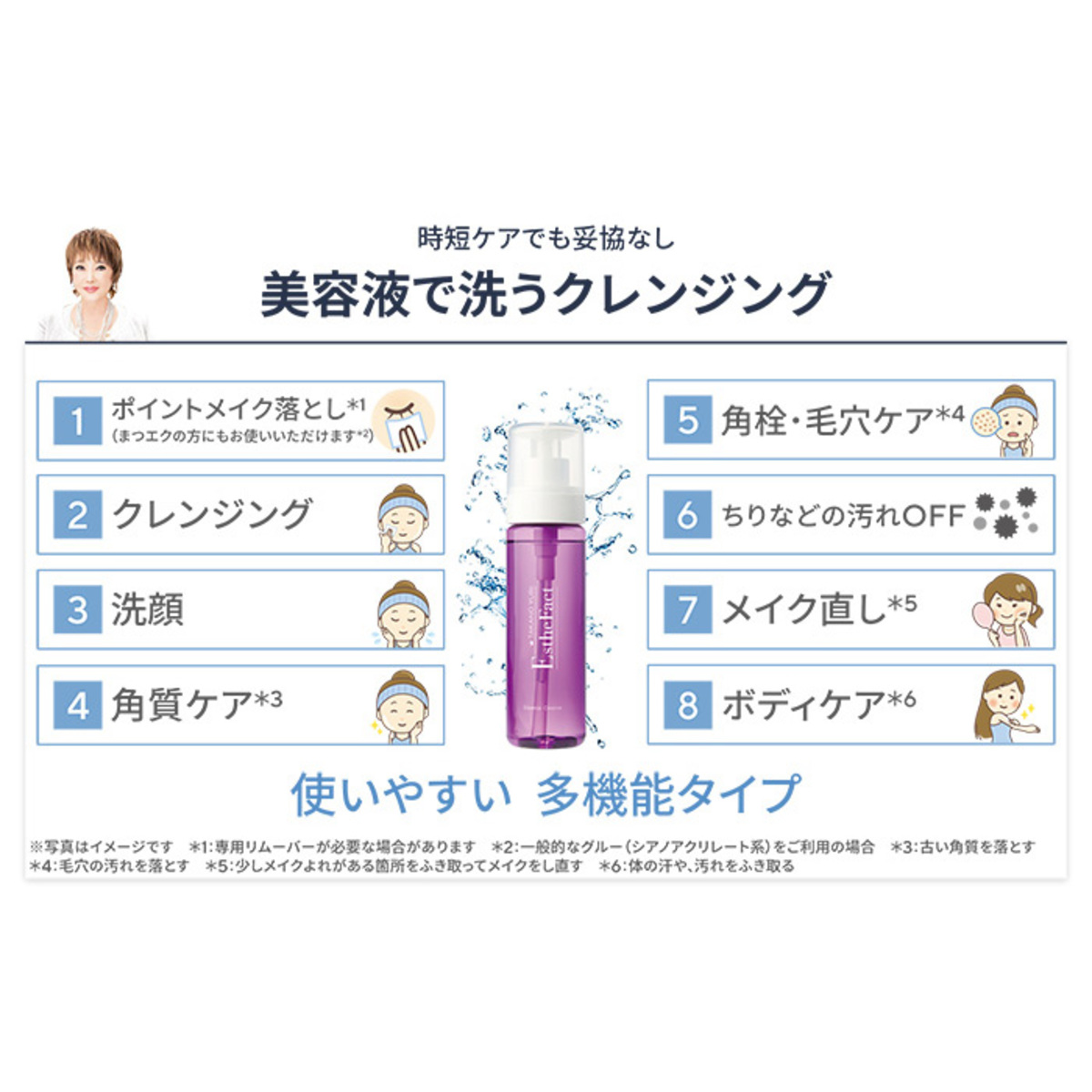 ポイントメイク落としとして、まつエクをしている方にも使用可能(*8)。水ベースでまるで化粧水のような使い心地です。肌にやさしくしっかりオフ。低刺激で敏感肌の方にもお使いいただけます(*9)