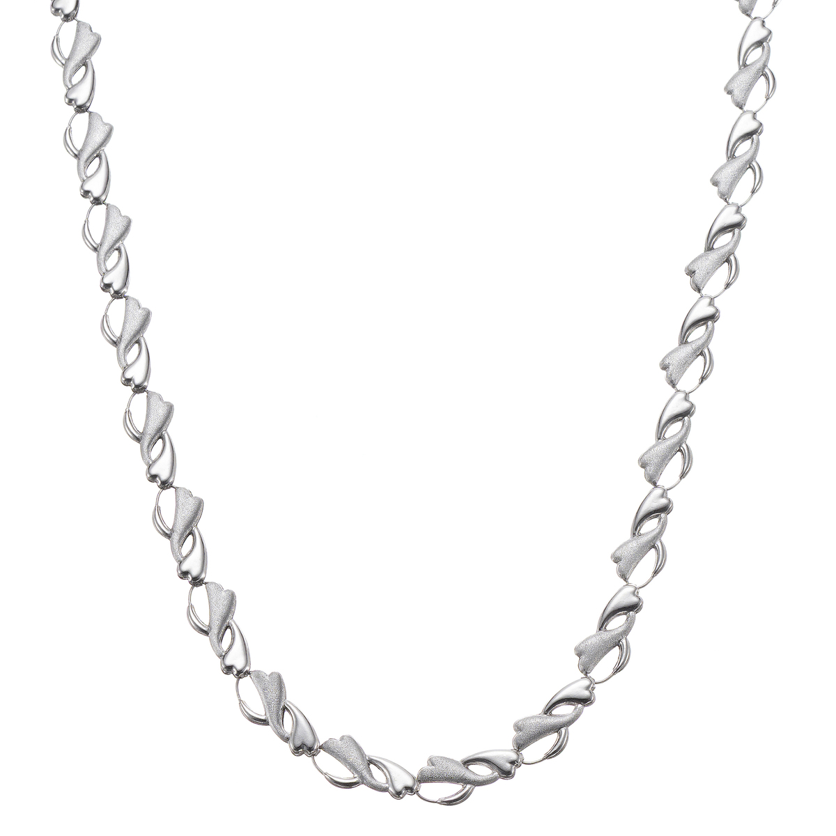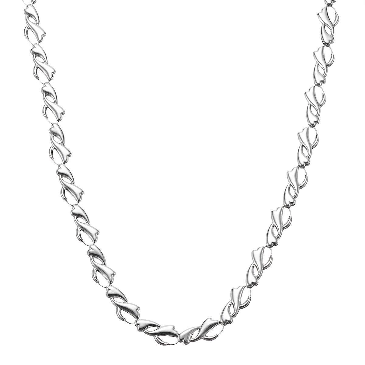 優美な流線型が美しいプレスパーツを組合せた、リバーシブルネックレス。優れたデザイン性と純プラチナの強く上品な輝きが、胸元を美しく彩ります