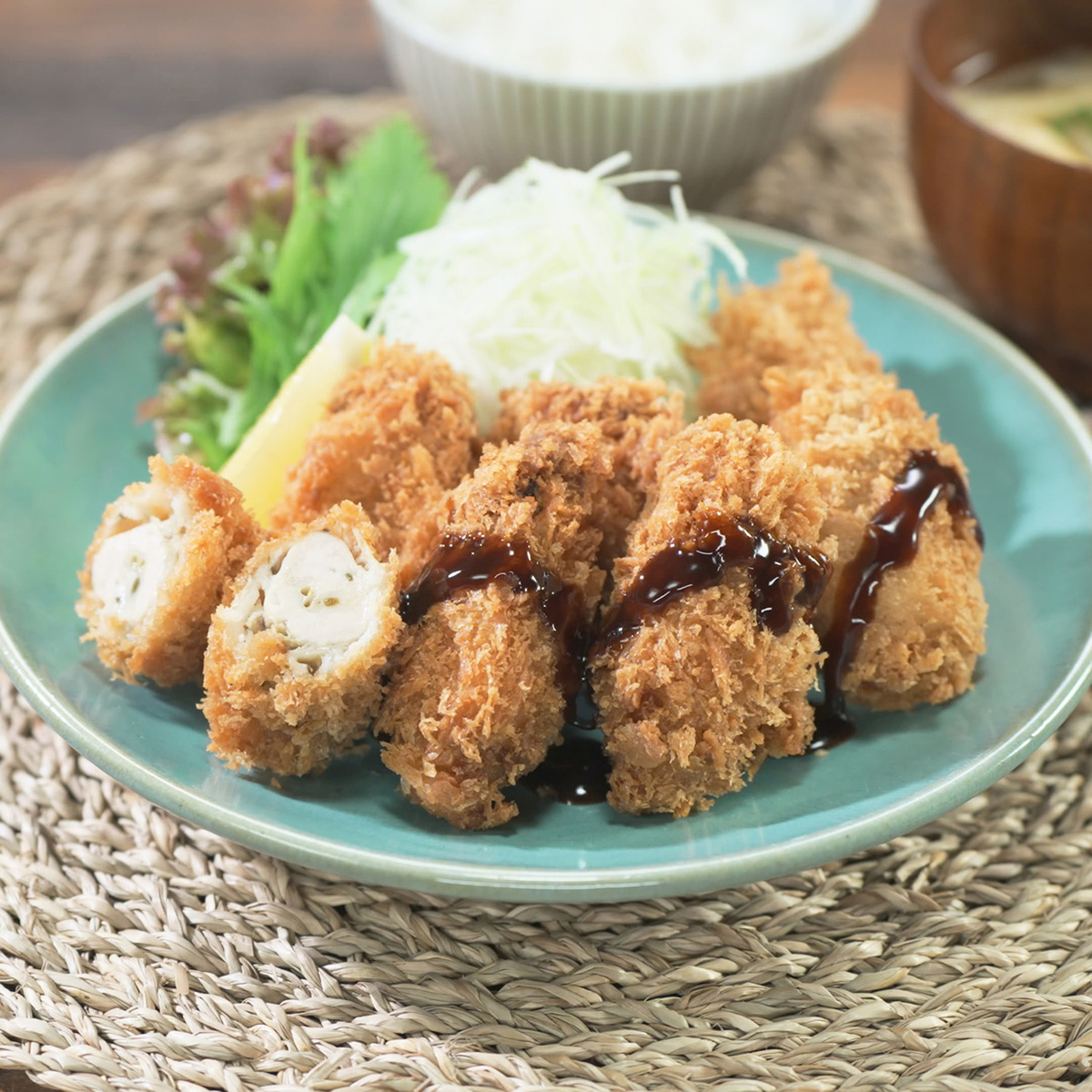 パン粉は剣立ち・油切れの良いタイプと、風味・食感の良いタイプをミックスし、見た目がよくソフトでさくっとした食感に。冷凍のまま油で5〜6分間揚げるだけの簡単調理。あともう一品おかずが欲しいときなどにも便利です
