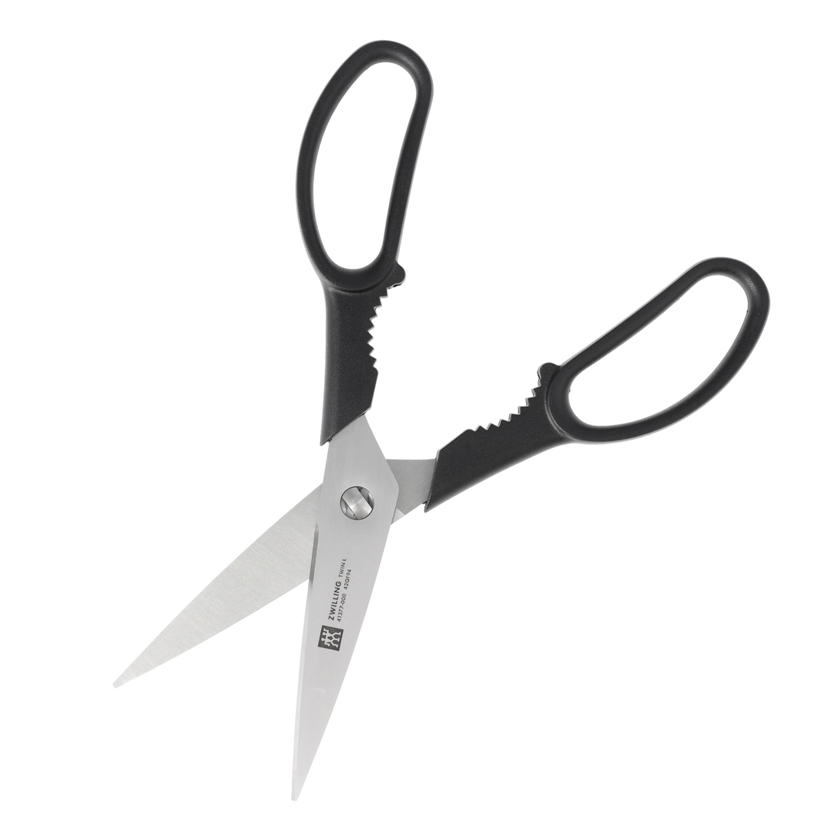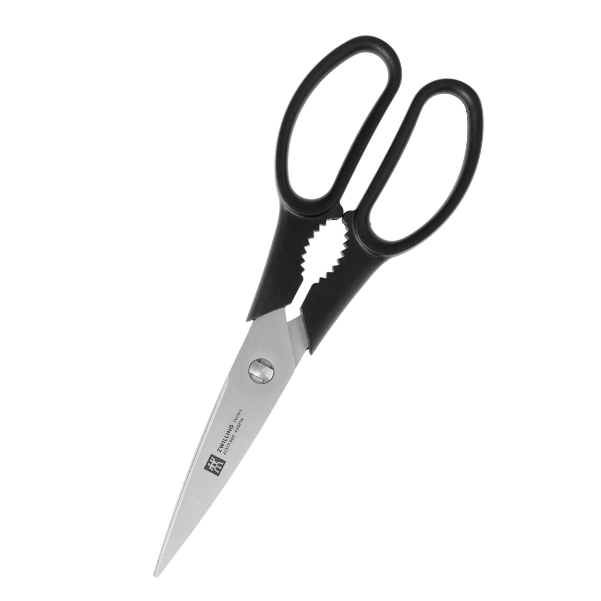 食材のカットや包装紙、紙パックの裁断、瓶やペットボトルの蓋開けにも使える料理バサミ。固い食材の裁断やホビー、工作にも活躍します