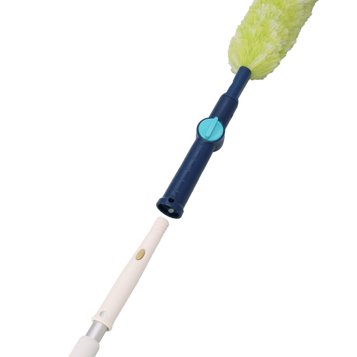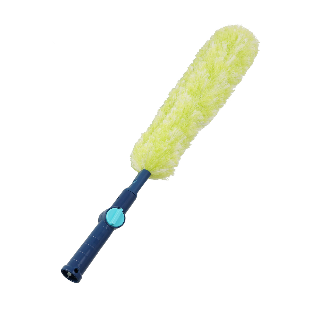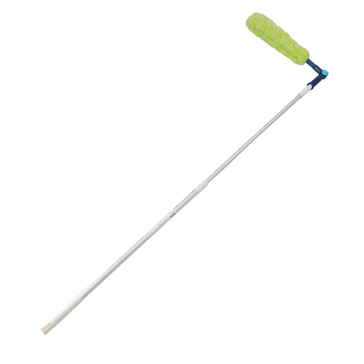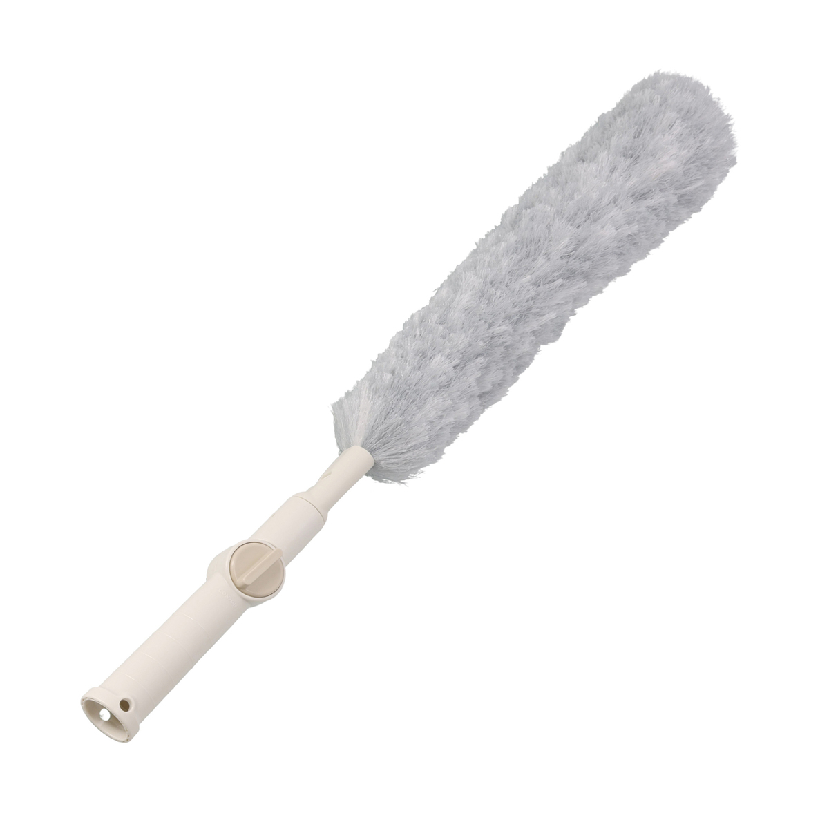 導電繊維の働きで静電気を除去。ホコリを取りやすくするとともに、ホコリの再付着を抑えます。ヘッドが180°動き、ハンドルは約97.5cm〜161cmまで伸縮可能なスリムタイプ。棚上などの見えない箇所にも届きます