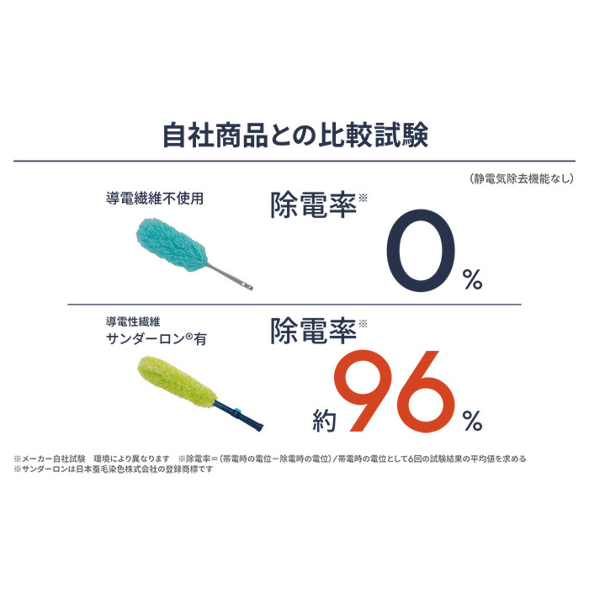 導電性繊維サンダーロン(R)を使用*。サンダーロン(R)が静電気を除去し、網目繊維でホコリを絡めとります。除電をしながら清掃するのでホコリをスムーズに落とせ、静電気によりホコリの付着も軽減できます