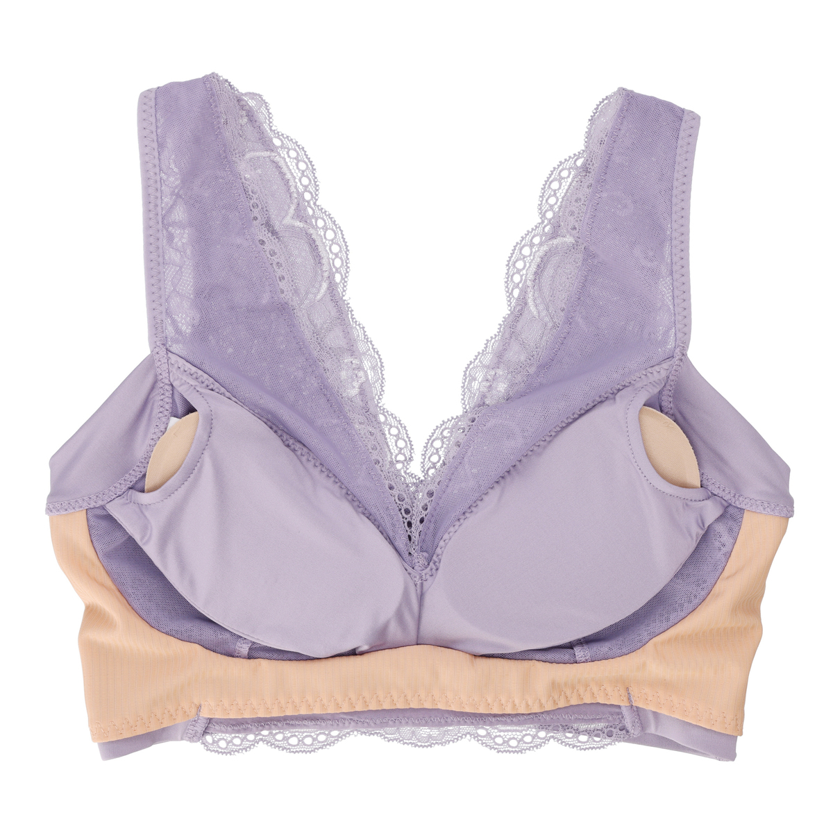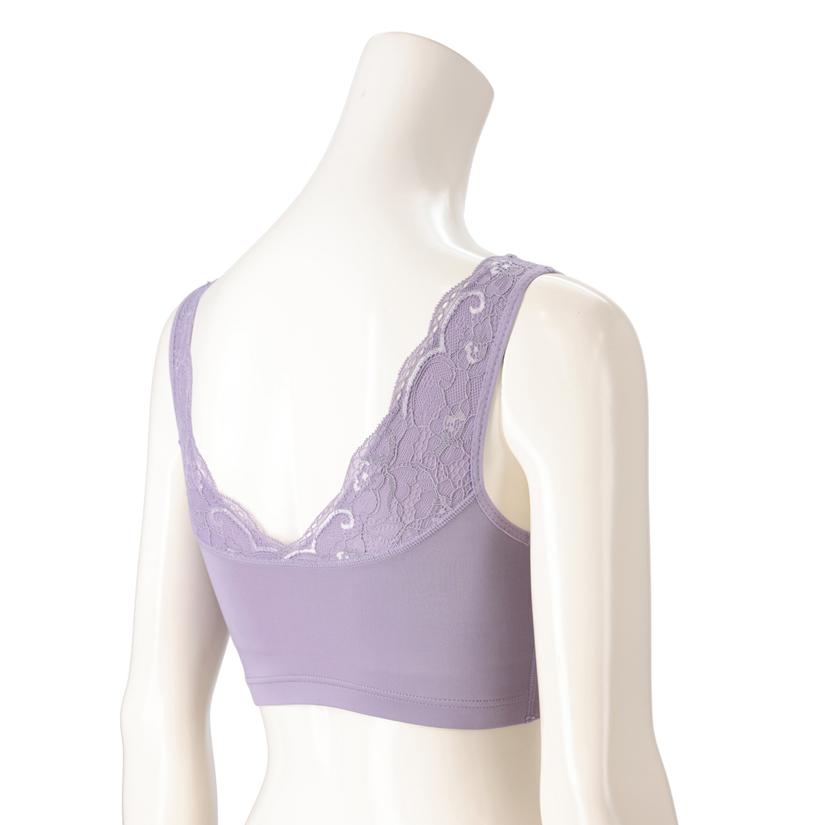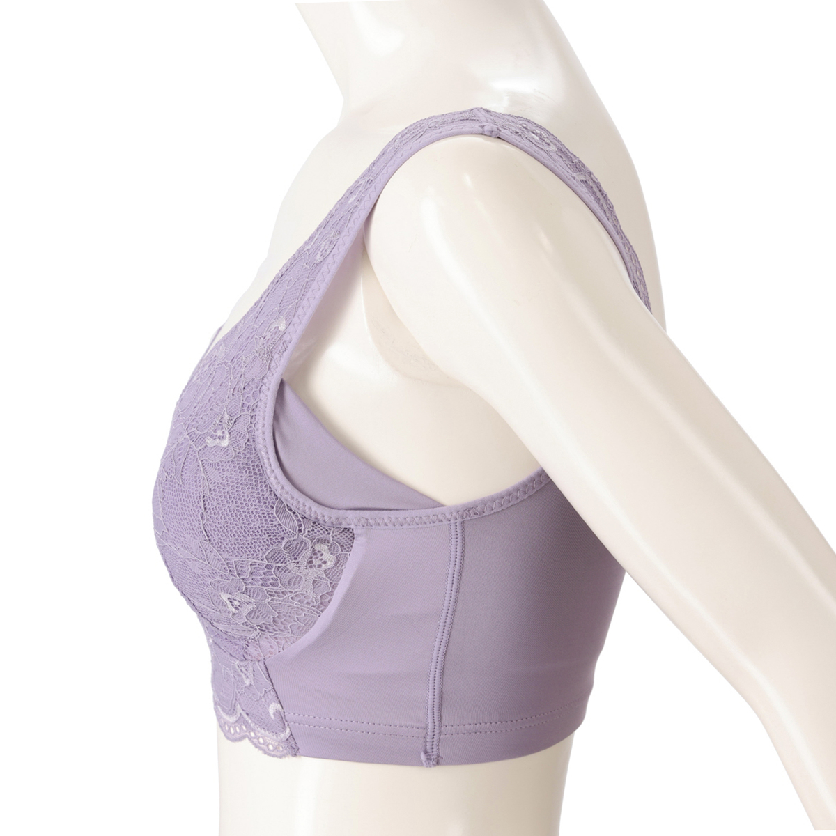 伸縮性のある薄手のパワーネットとストレッチレースで軽く包み込み、バストの食い込みや隙間などの不快感を軽減。オメガラインに沿って施した滑り止めシートで、胸のお肉を寄せ集めて逃さずキープします