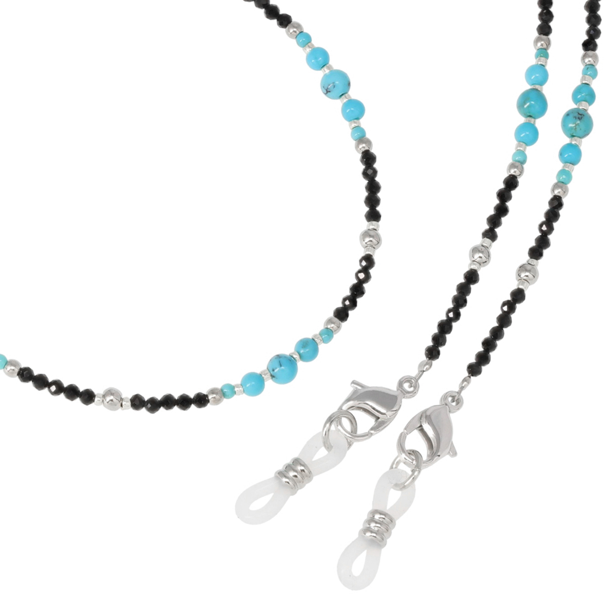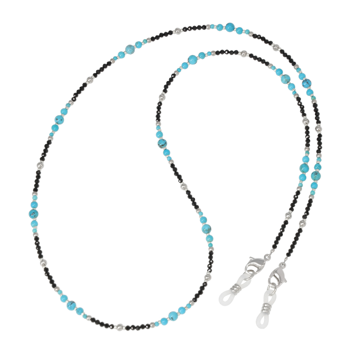 爽やかなターコイズブルーが目を惹く、天然石を贅沢に使ったメガネチェーン。軽やかな印象の中に、上品で洗練されたアクセントをプラスします。天然石ならではの個性が、さまざまなスタイルに自然にマッチします